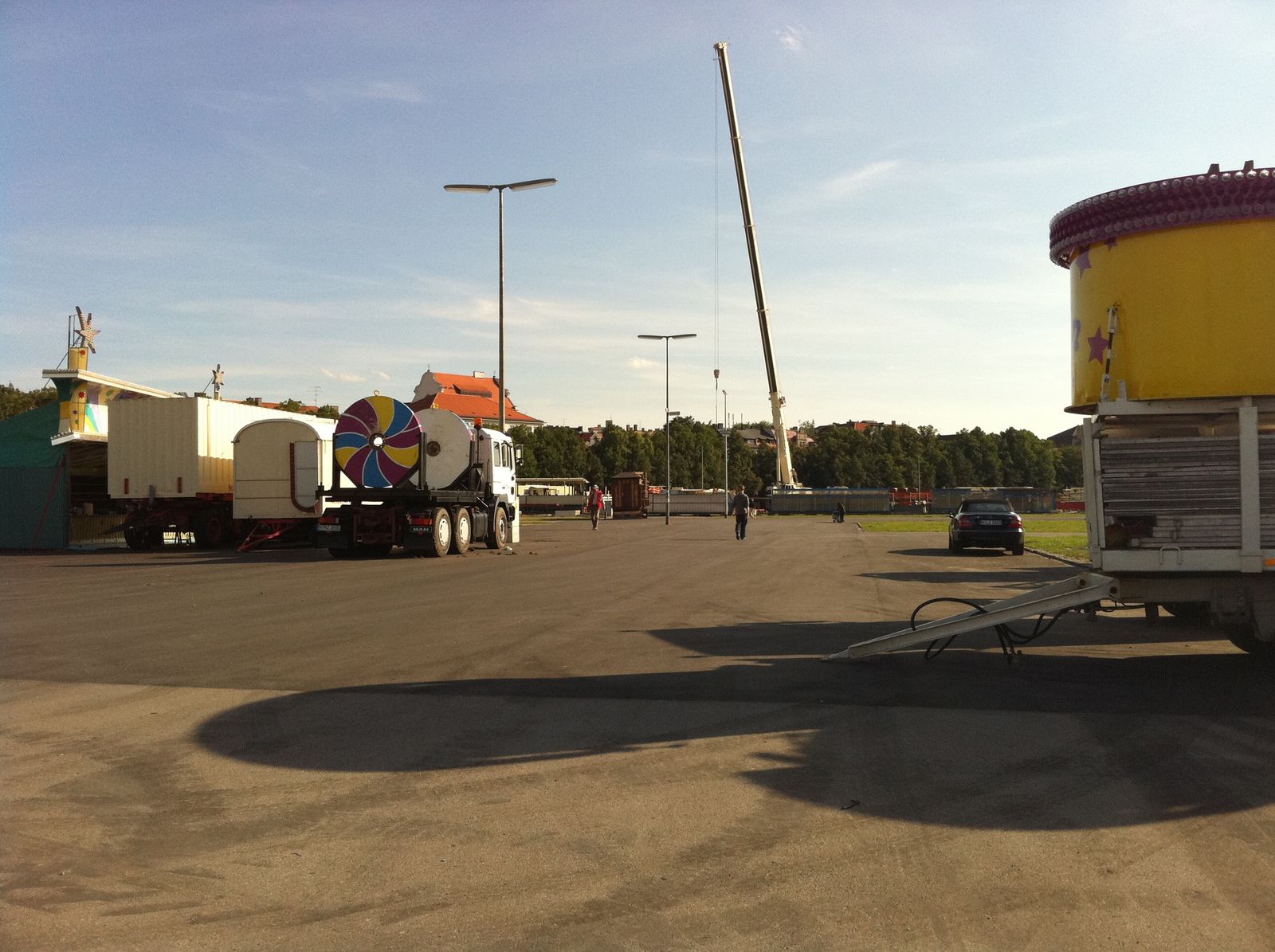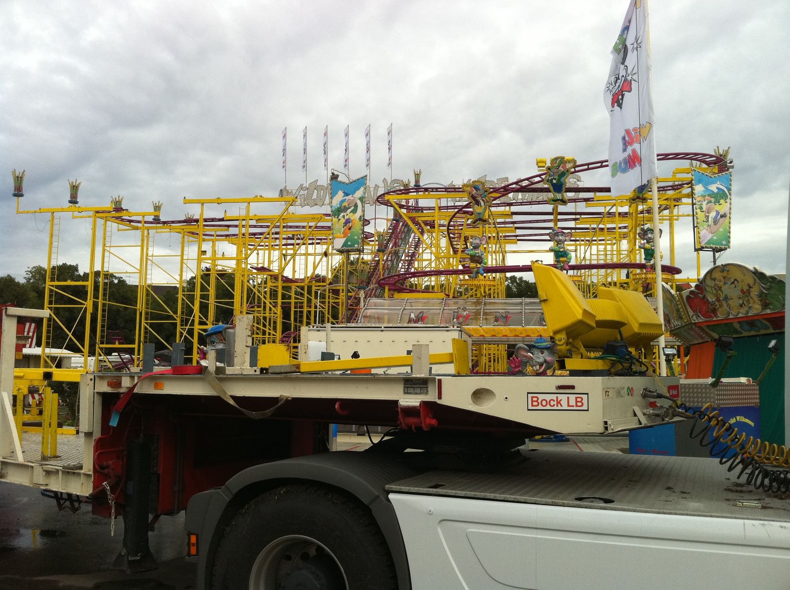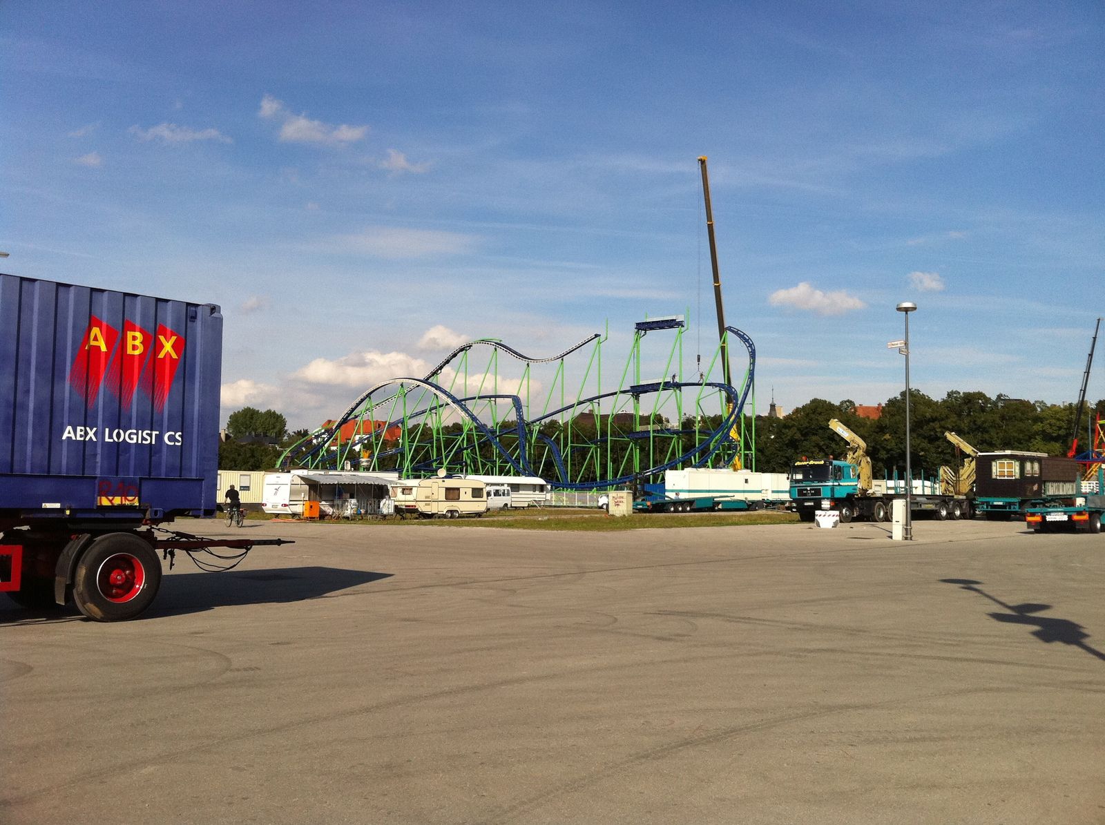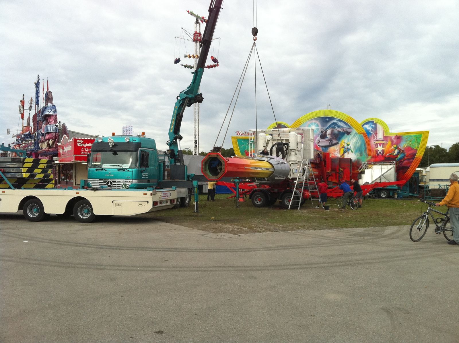 Wow, die wahrscheinlich einzige Kirmes, die mit Turmdrehkränen aufgebaut wird...