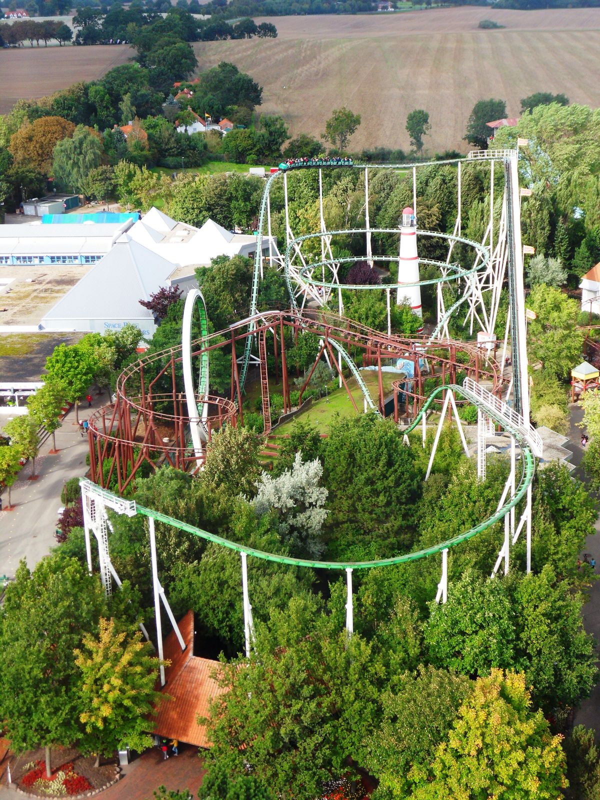 Helix. Insgesamt erleben wir etwa 5 Mal ein Rendezvous, sowohl in der Kinder- als auch der Loopingachterbahn.