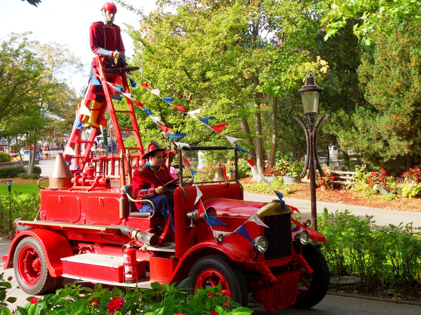 Der Feuerwehrmann auf der Drehleiter kann Wasser spritzen!