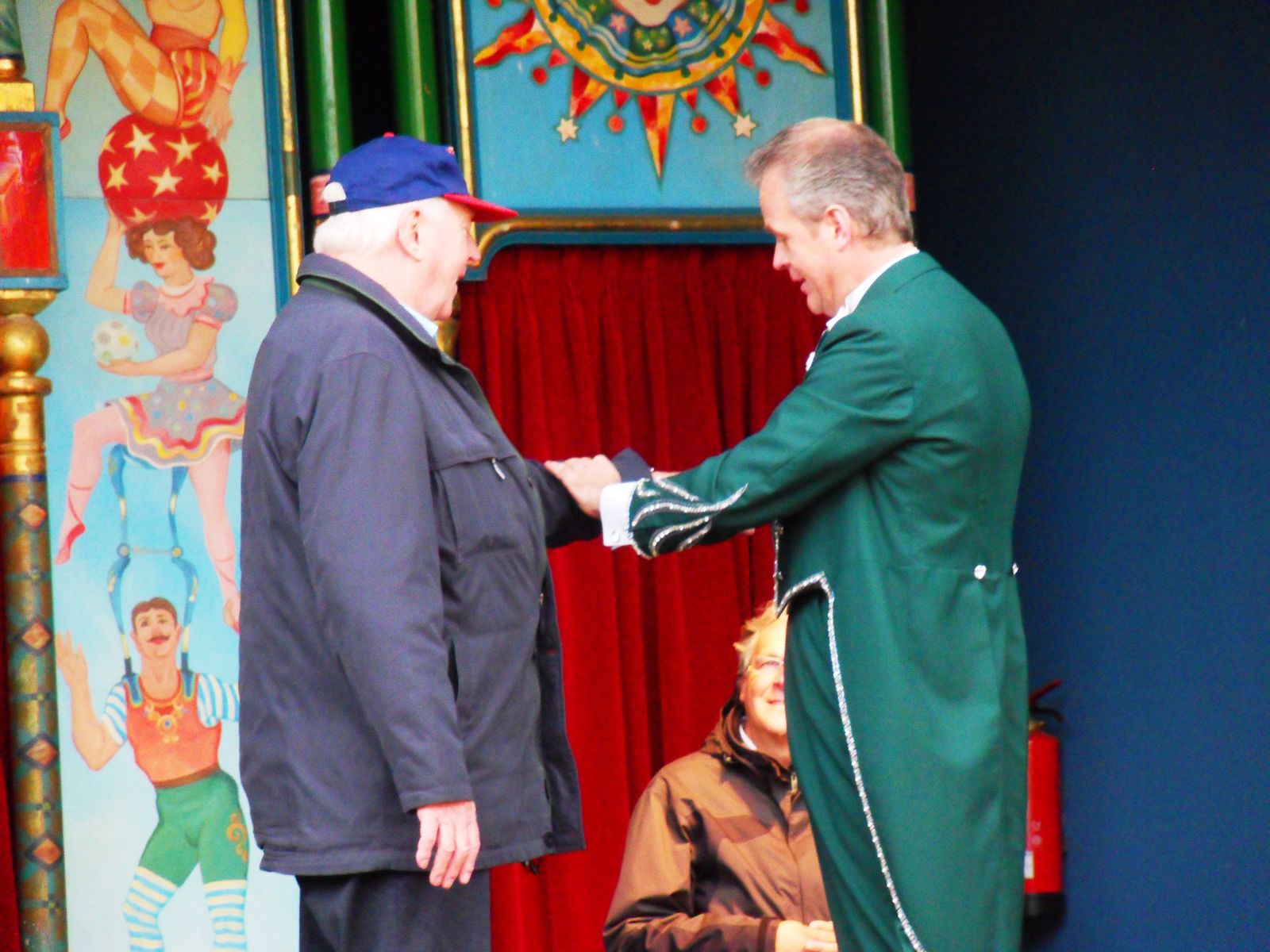 Geblendet von der Sonne draußen, haben wir noch eine Halbe Stunde Zeit im Park. Durch die Westernstadt betreten wir den Alten Jahrmarkt, wo gerade die Taschendiebshow läuft. Wir gucken etwa zehn Minuten zu (Kennys Nonstop-Reden ist ermüdend!) und gehen durch den Spiegeltunnel Richtung Nessie.