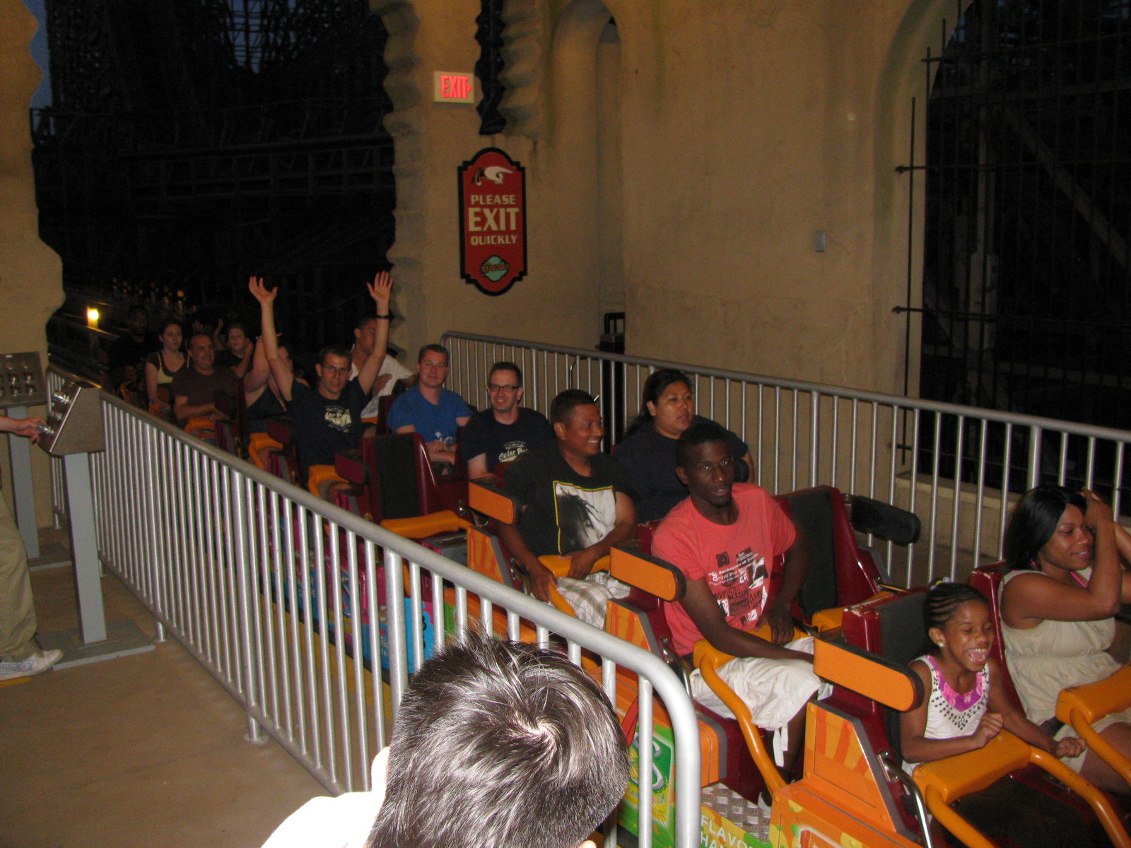 Die Abfertigung war auch richtig klasse: Den genauen Wortlaut kenne ich nicht mehr aber so ähnlich war die Durchsage: "If nobody is in your line you can stay in the car or jump to a free seat!" Man musste so zu sagen nicht immer rumlaufen. S