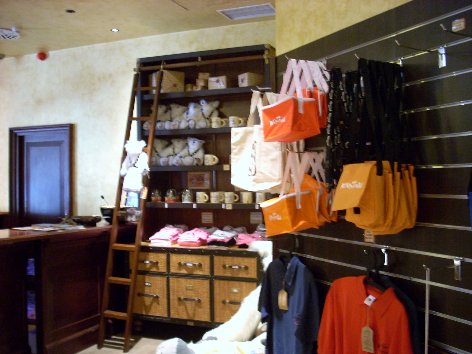 Kleiner Shop und im Außenbereich Bar und Terrasse mit Burgern und Bier