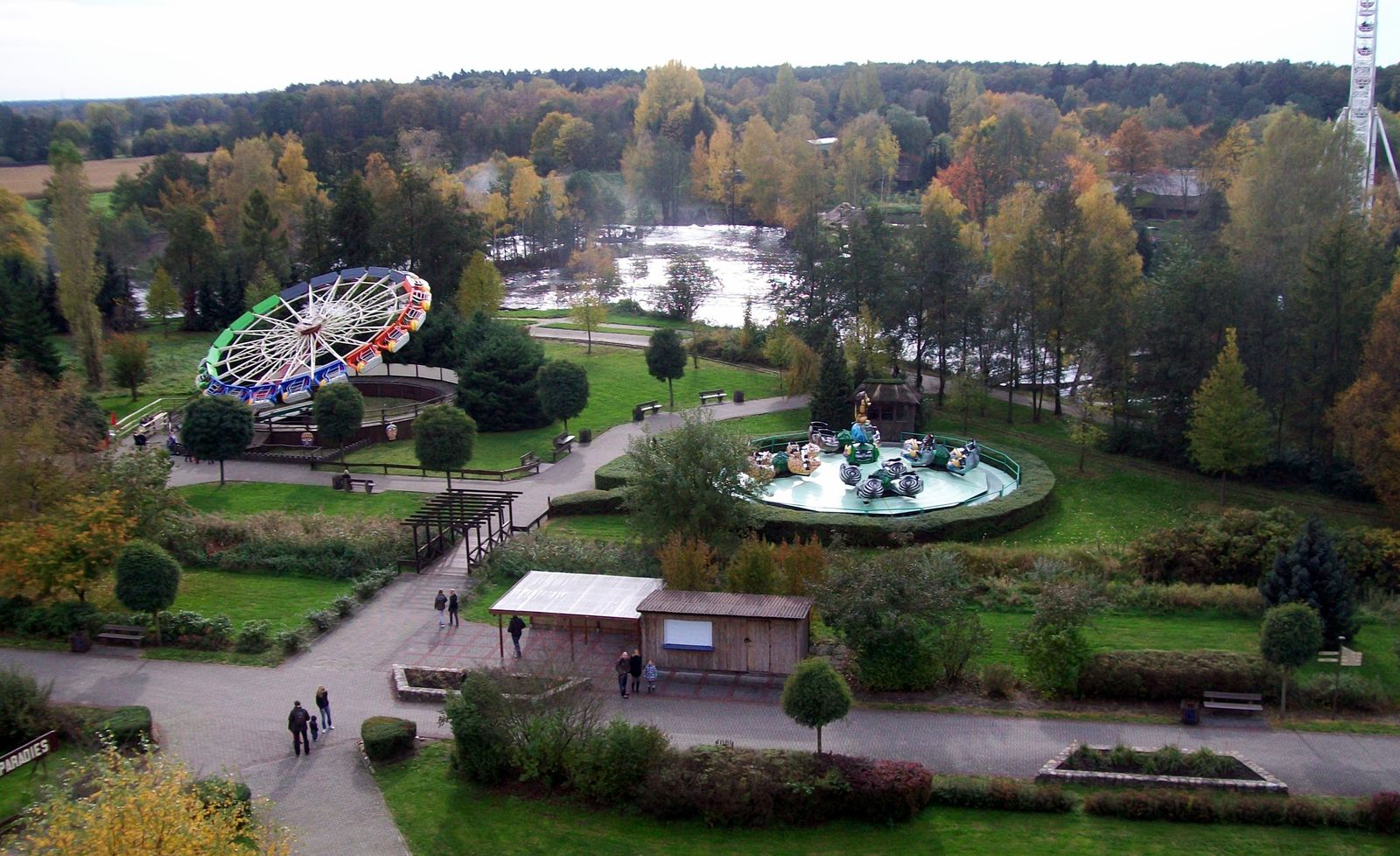 Im Freizeitland trifft man auf viele Fahrgeschäfte, u.a. auch einen Top Spin, die wilde Maus, Breakdancer u.v.m.