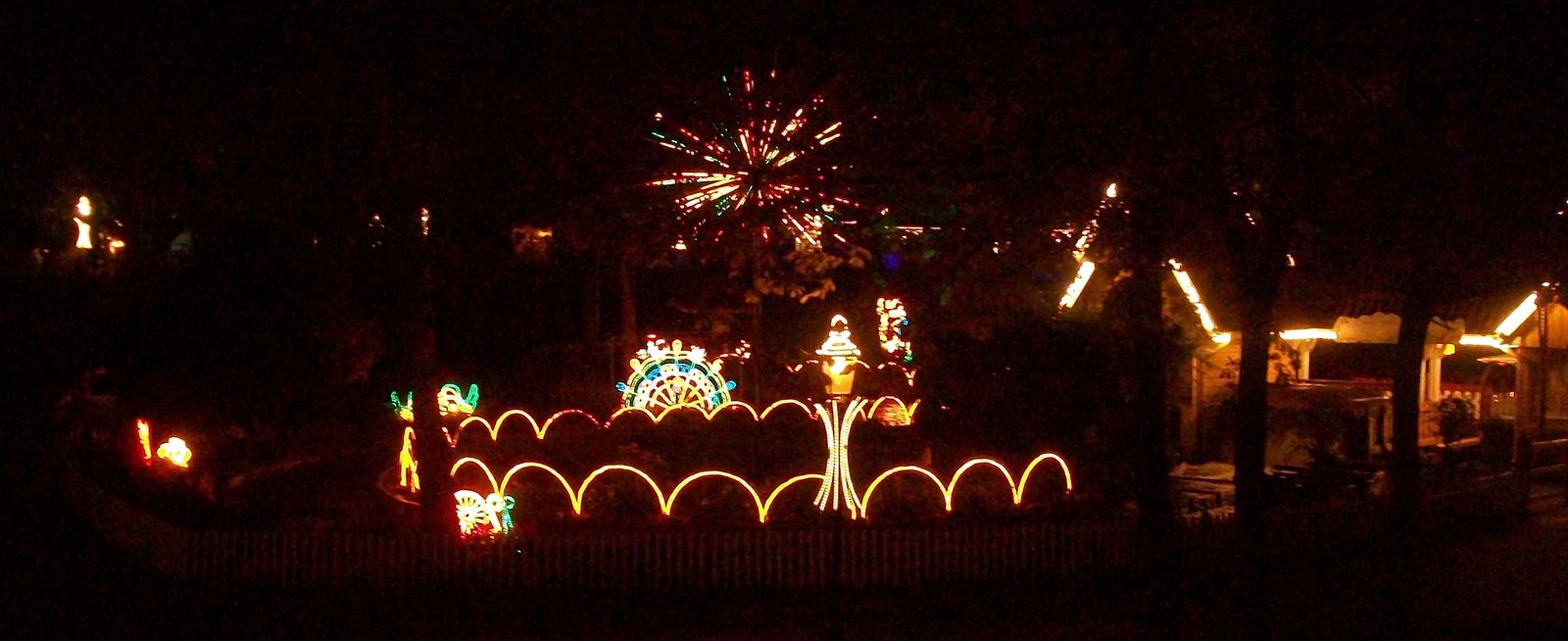 Wahnsinn was der Park hier zu bieten hat. Kaum ist es dunkel scheint es trotzdem taghell zu sein. Jede einzelne Laterne beleuchtet, fast jeder Baum wurde Zweig für Zweig beleuchtet und von allen Seiten weiße Strahler die in den Himmel ragen WAHNSINN.