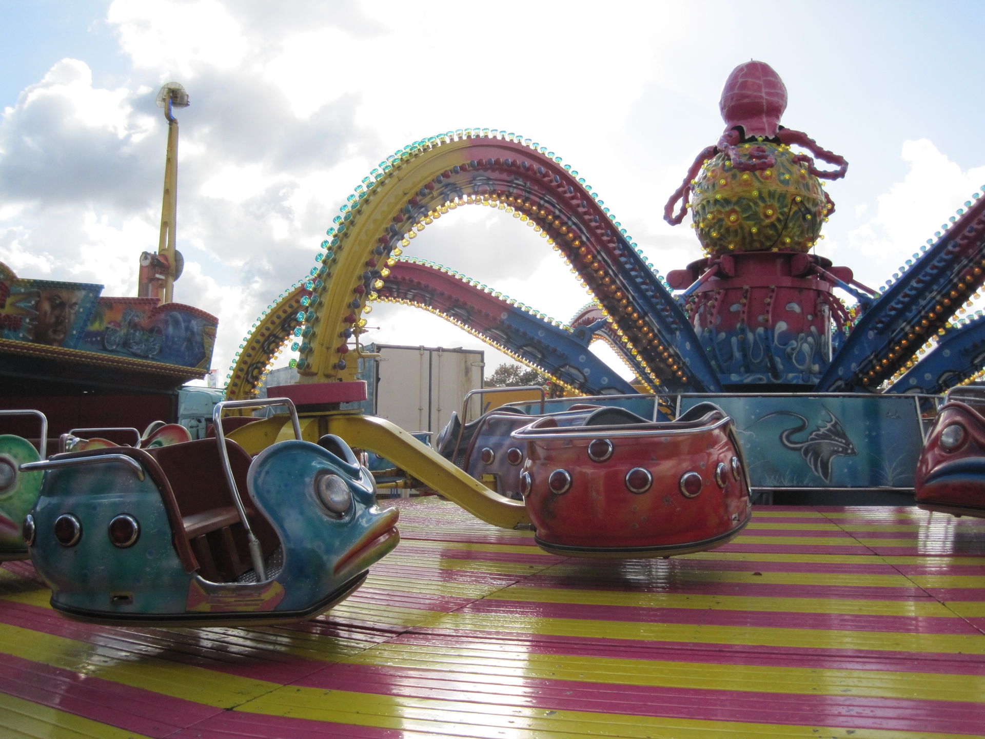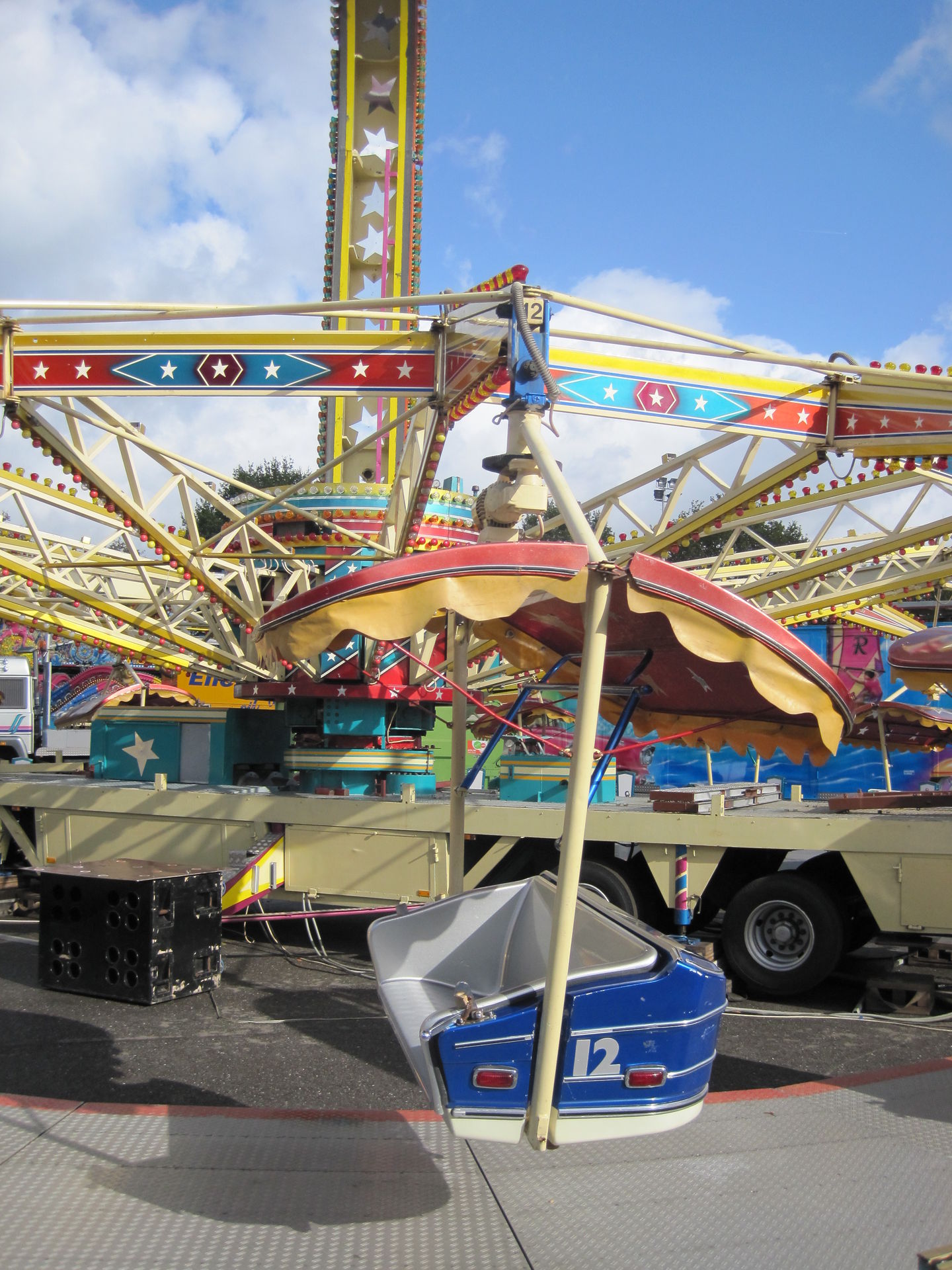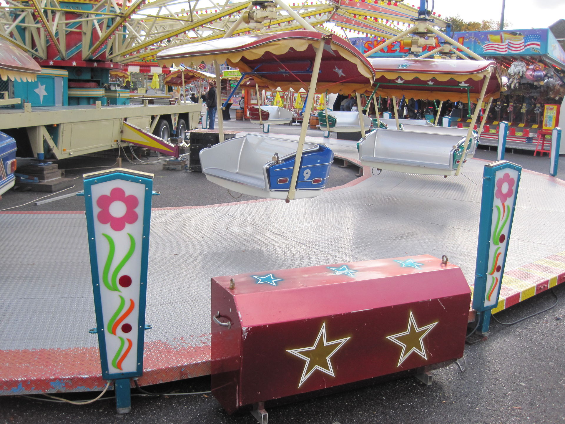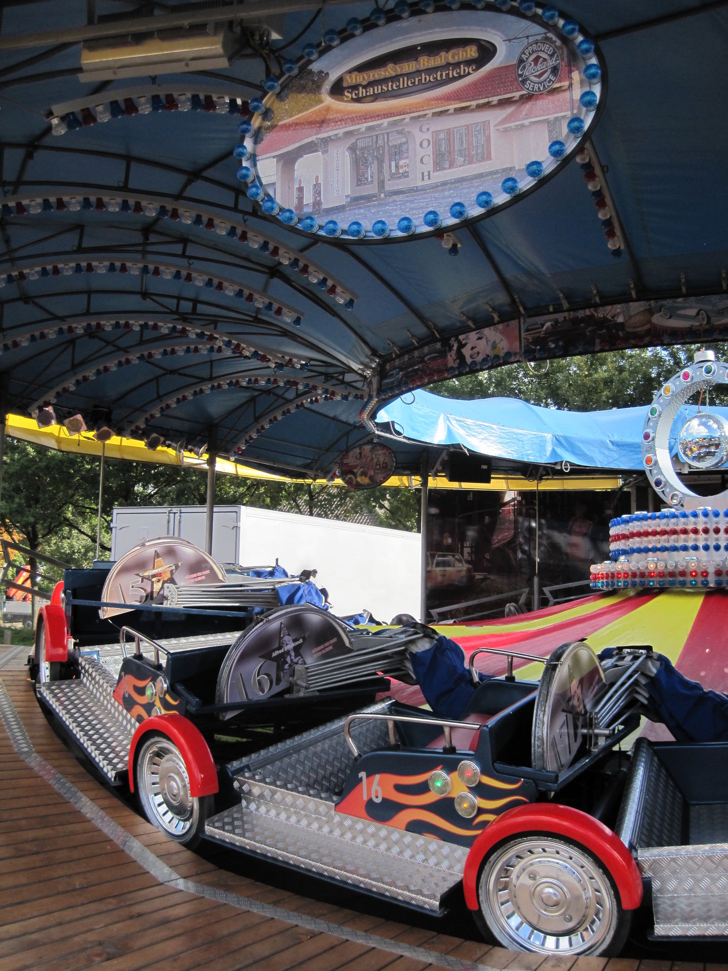 Für 2 Euro gab es eine kurze aber abwechselungsreiche Fahrt. Es ist schon eine Ewigkeit her, dass ich bei so einem Fahrgeschäft drehende Gondeln vorgefunden habe. Die Exemplare, die in meiner Gegend ab und zu zu finden sind, besitzen keine aktive Gondeldrehung. Und mit ist das Karussell echt klasse.