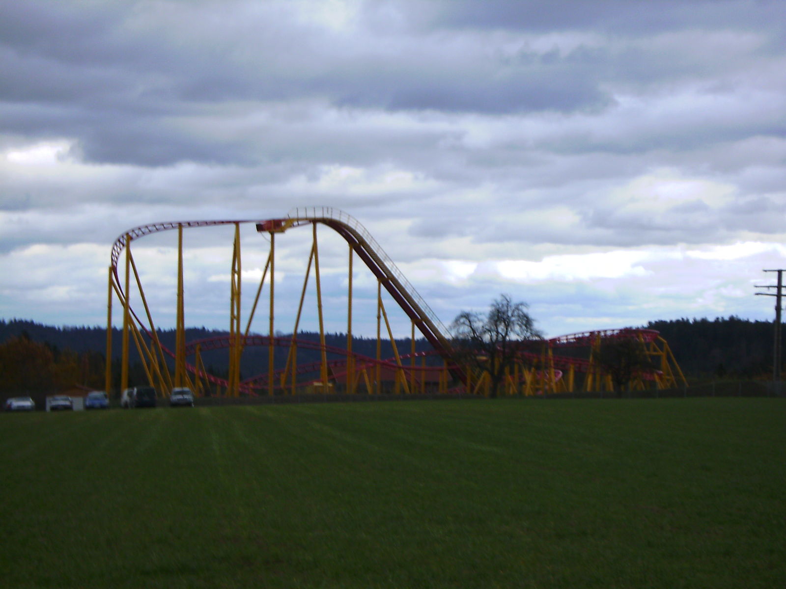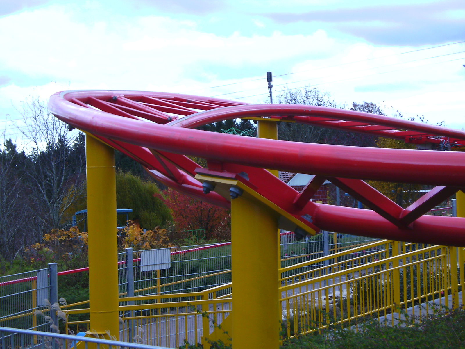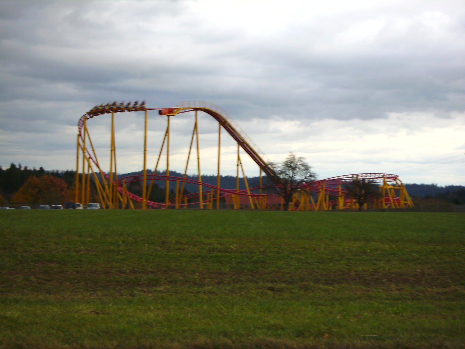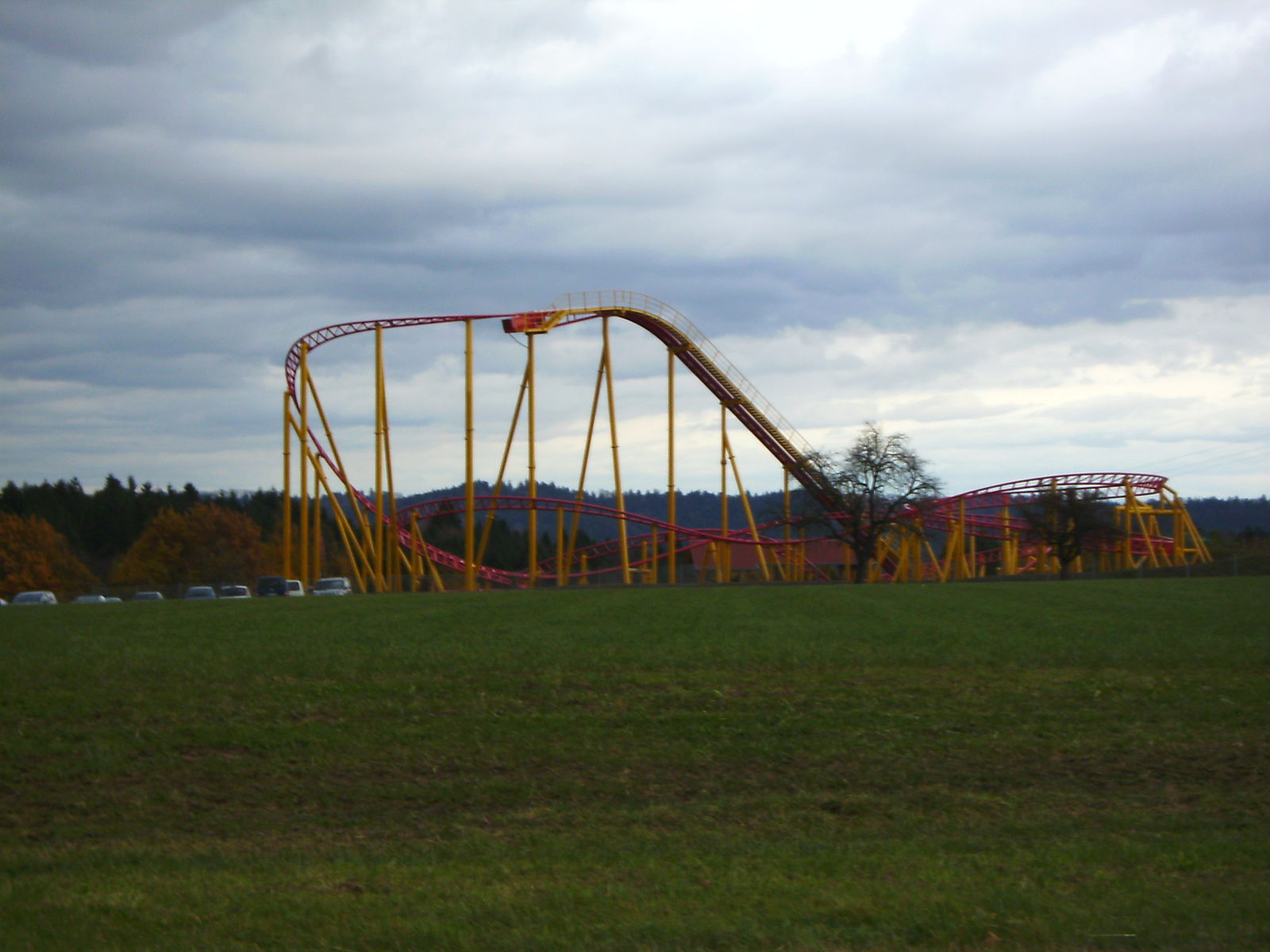 Ich war vorher noch nie auch nur in der Nähe des Parks und hatte daher auch keine Ahnung was mich erwartet. Um eines vorwegzunehmen, der Park machte auf mich einen extrem heruntergekommenen Eindruck. Einzig "ForceOne" sieht gut aus, wobei hier die Farbwahl des Züges eher ein Griff ins Klo war... (bläulich-gelbe Wagen, auf der an I305 erinnernden rot/gelben Schienenbepinselung???