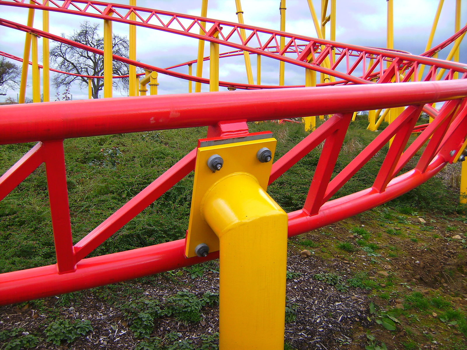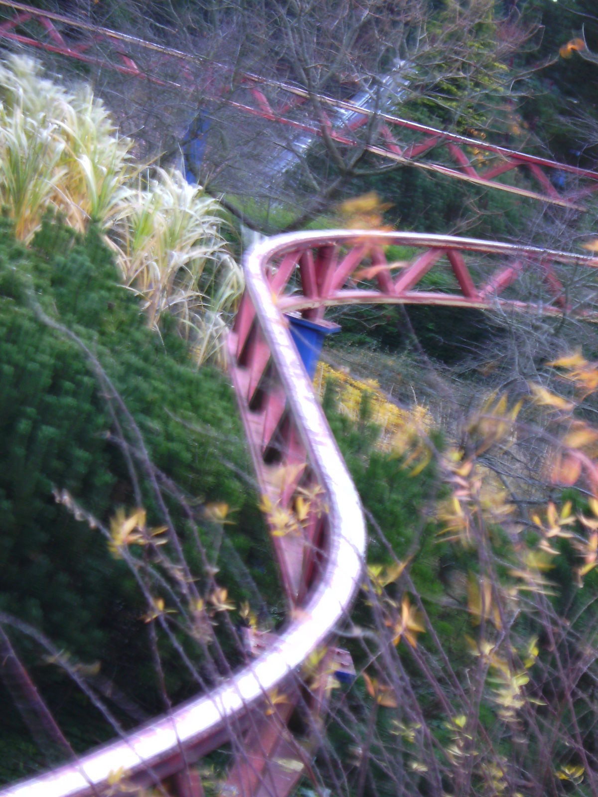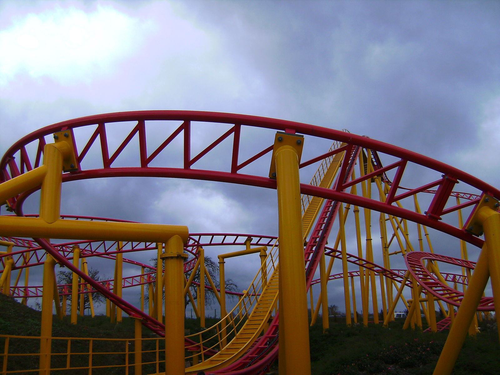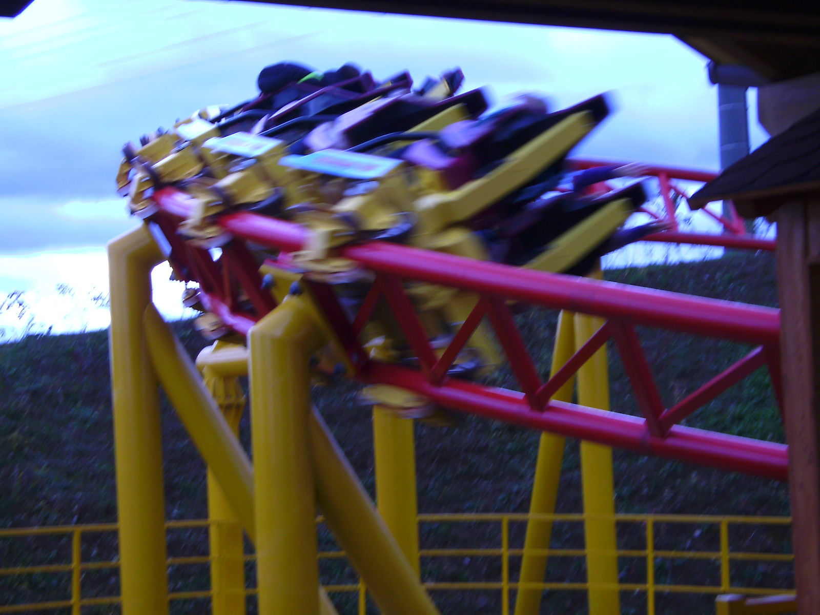 Ich war vorher noch nie auch nur in der Nähe des Parks und hatte daher auch keine Ahnung was mich erwartet. Um eines vorwegzunehmen, der Park machte auf mich einen extrem heruntergekommenen Eindruck. Einzig "ForceOne" sieht gut aus, wobei hier die Farbwahl des Züges eher ein Griff ins Klo war... (bläulich-gelbe Wagen, auf der an I305 erinnernden rot/gelben Schienenbepinselung???