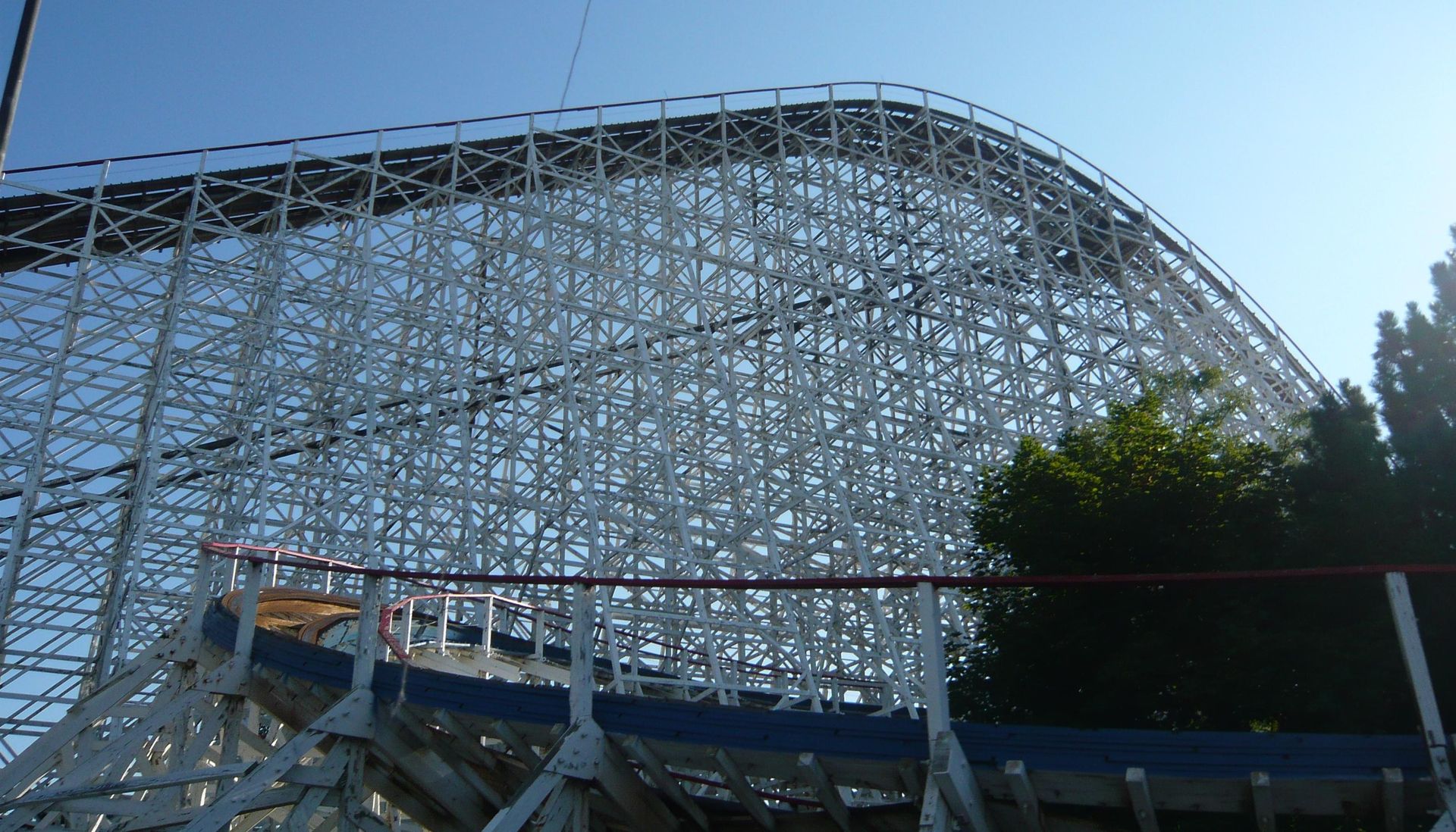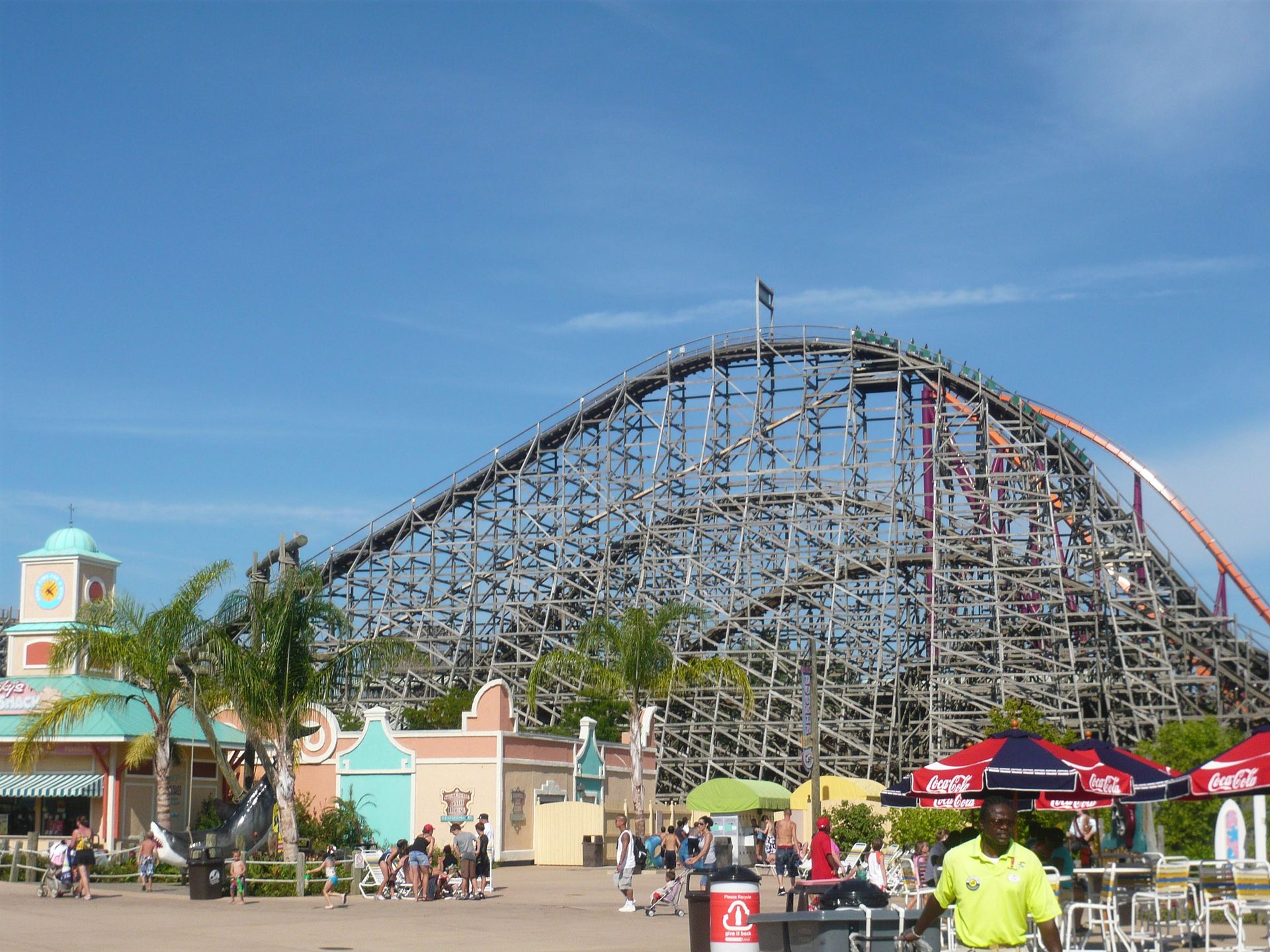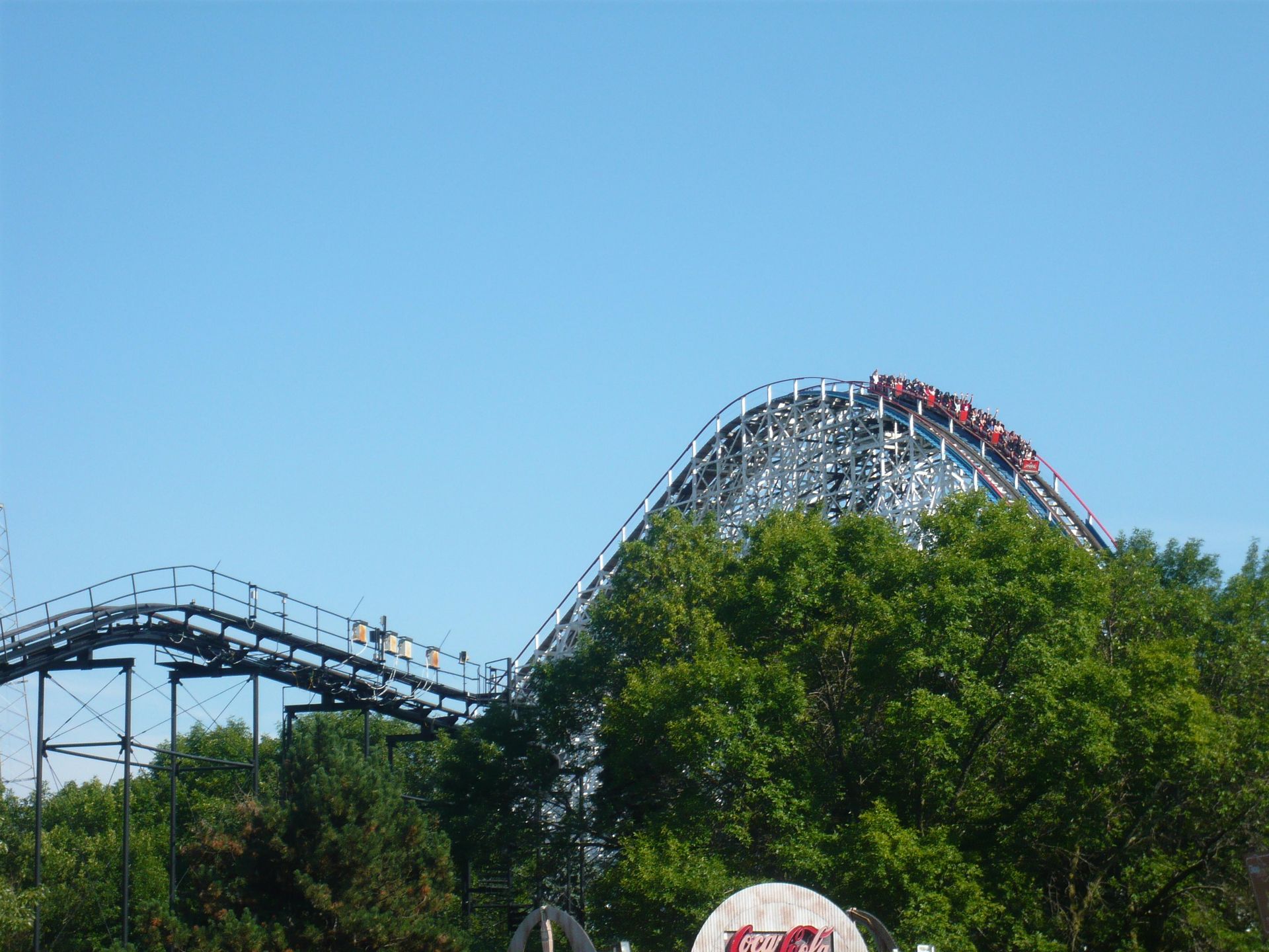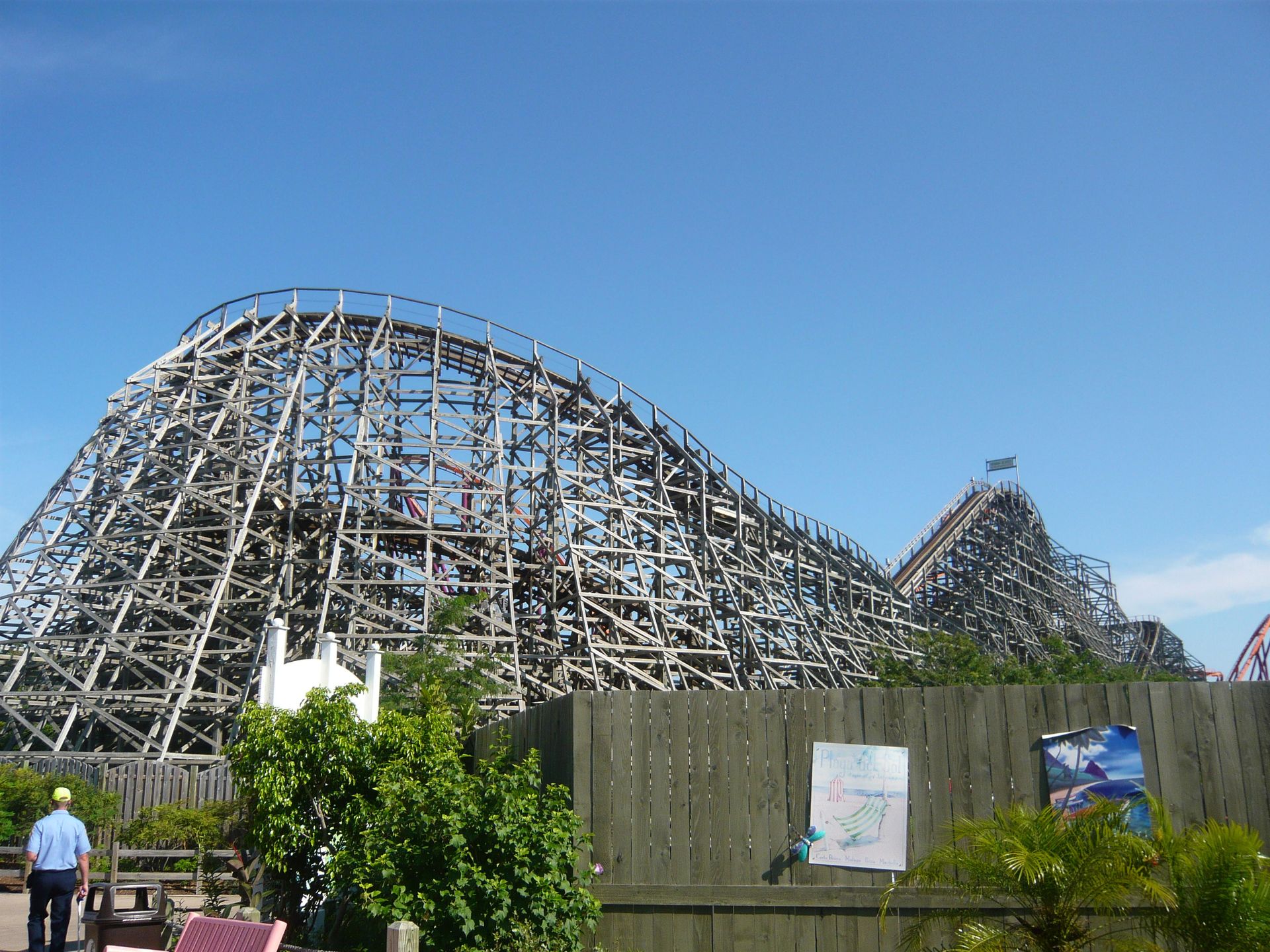 Dank Walk-on konnte ich auch auf diesem Schmuckstück einige Fahrten absolvieren, bevor die grossen Menschenmassen kamen. Ein absoluter Prachtwoodie! Dieser riesige verknäuelte Schienenberg flösst schon beim Anblick Respekt ein. Das Layout ist eine gespiegelte Version der Coney Island Cyclone und weiss definitiv zu überzeugen! Wunderbare Sturzfahrten, tolle