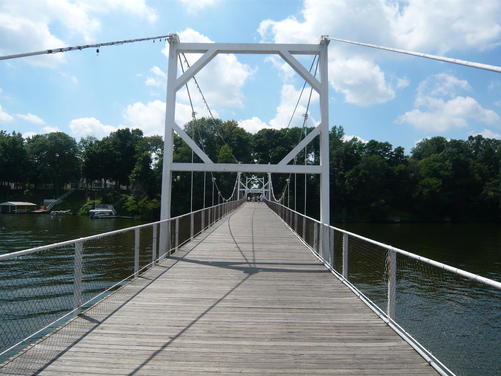 Die letzten Meter zwischen Parkplatz und dem eigentlichen Gelände muss man auf dieser Hängebrücke zurücklegen.