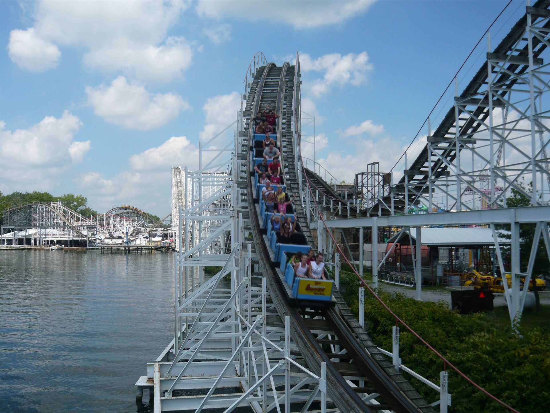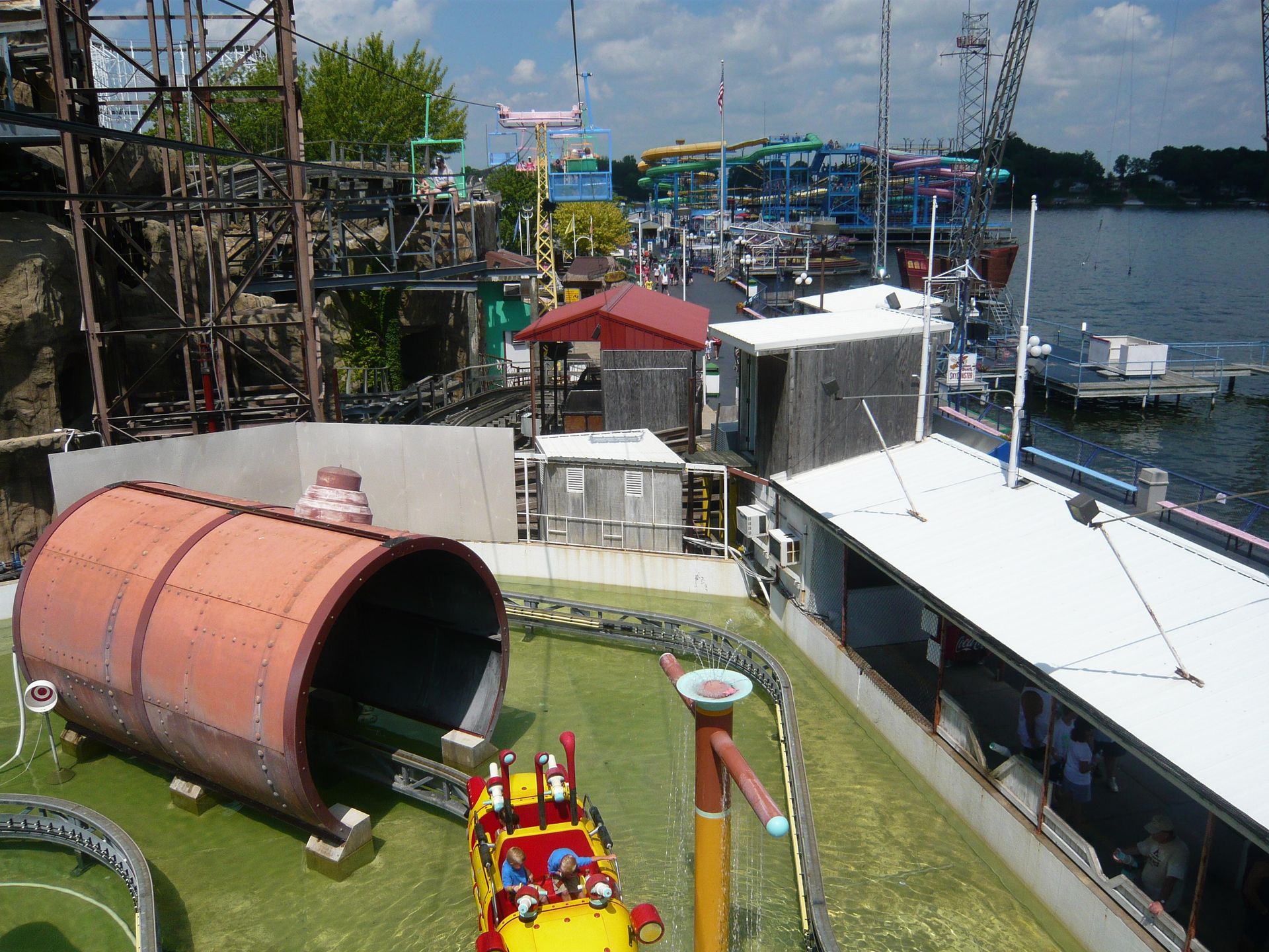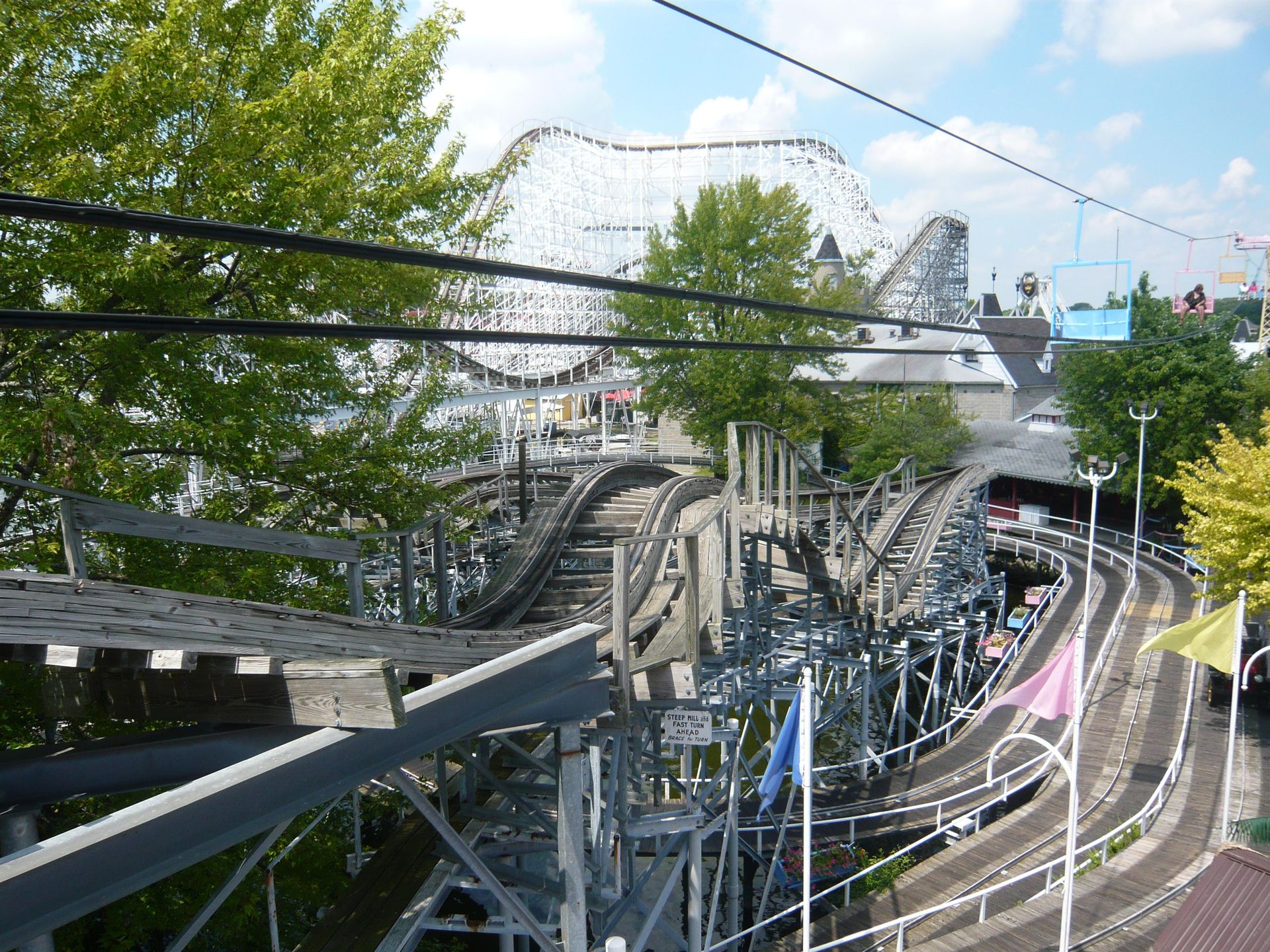 Viel mehr gewurmt hätte es mich aber, wenn ich die grösseren Coaster nicht hätte fahren können. Wir betraten nun also den hinteren Teil der Landzunge, wo die beiden gut sichtbaren Woodies ihre hochgelegenen Stationen hatten. Als erstes war Hoosier Hurricane an der Reihe.
