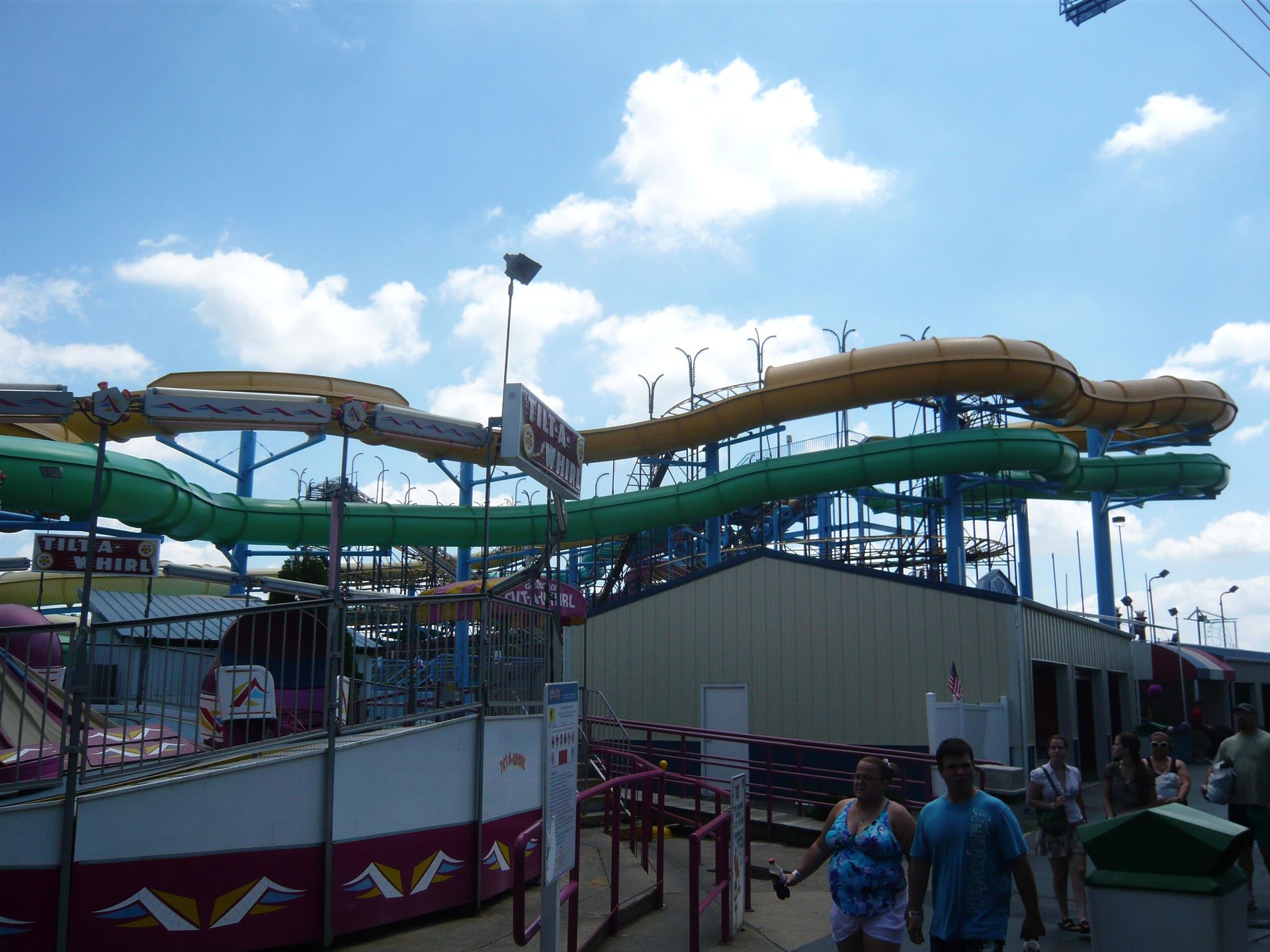 Die zwischen den Wasserrutschen eingequetschte Galaxi, die auf einigen der obigen Bilder auszumachen ist, sah aus wie eine Bahn, die jahrelang auf Schweizer Kirmesplätzen getourt war. Deshalb liessen wir die aus.