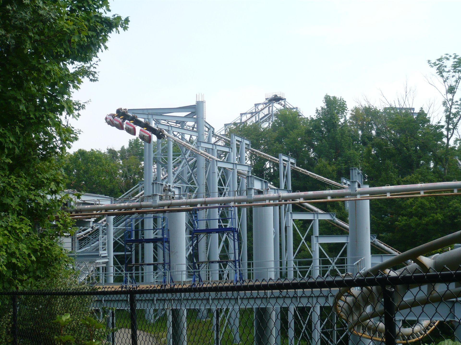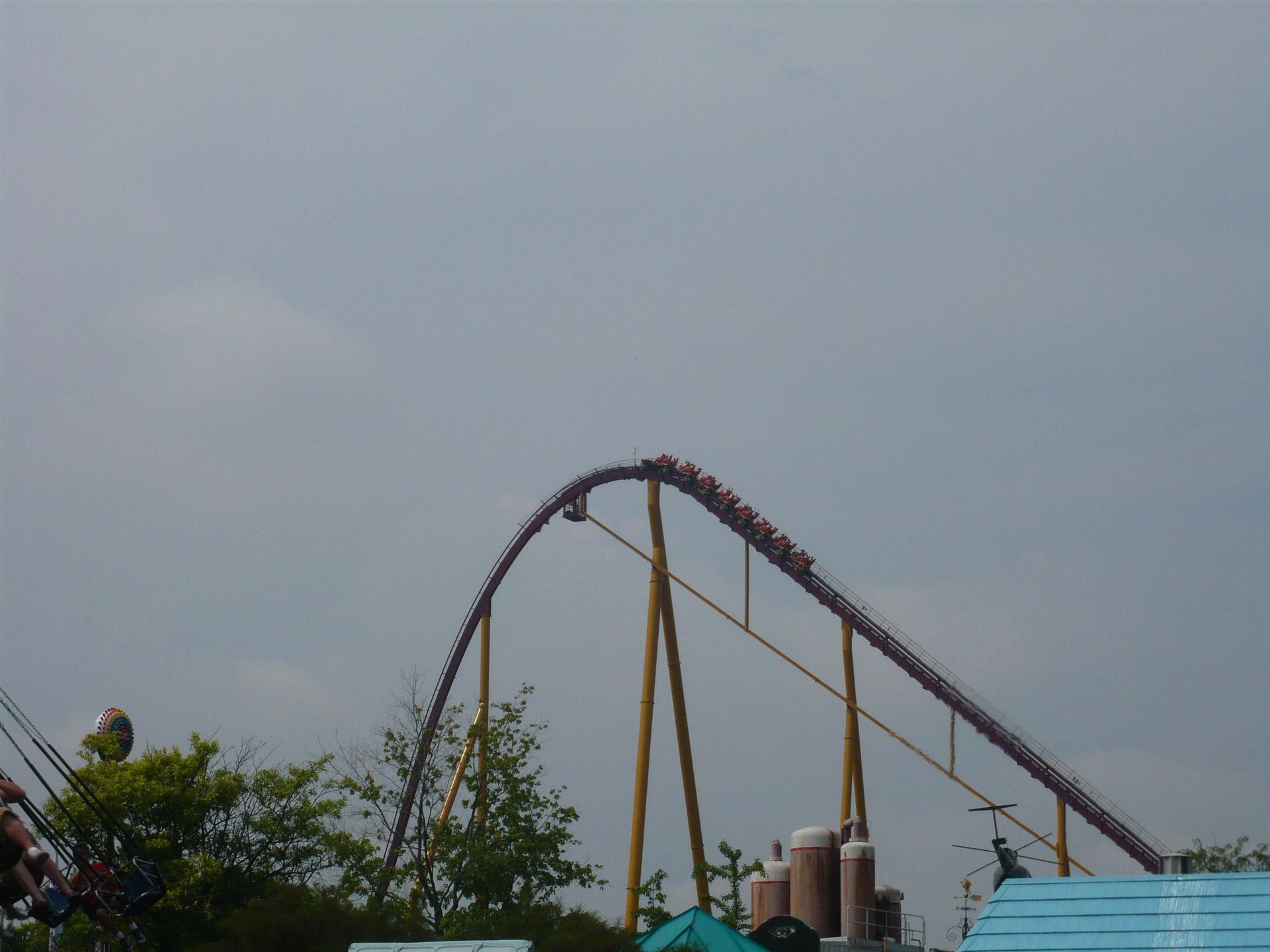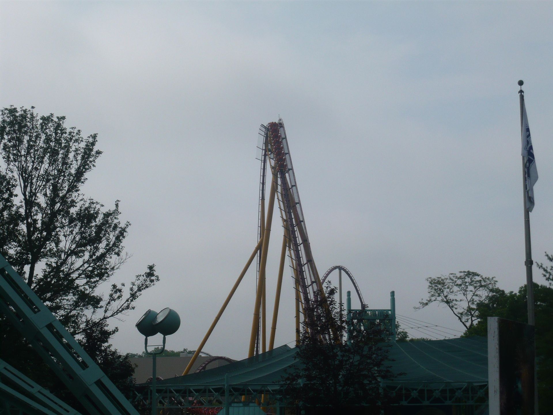 Von weitem haben wir gesehen, dass Invertigo bei einer Testfahrt die Strecke nicht geschafft hat, also haben wir erst einmal ein paar Wiederholungsfahrten auf dem Racer und Vortex gemacht, danach eine Fahrt mit der Parkeisenbahn unternommen und schliesslich sind wir noch auf den Eiffelturm rauf, um Fotos zu machen.