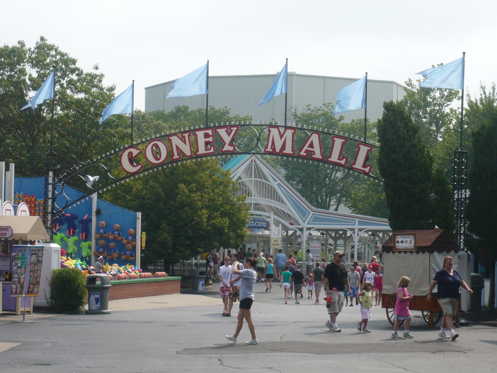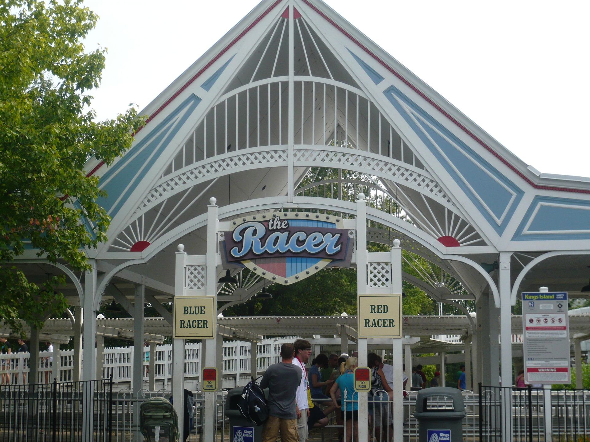 Nach einer absolut gemütlichen Übernachtung und einem herzhaften Frühstück im Holiday Inn Express in La Grange, KY - etwas ausserhalb von Louisville und sehr zu empfehlen - machten wir uns also auf nach Mason nahe Cincinnati, wo wir gegen 11.00 Uhr auf den bereits gut gefüllten Parkplatz von Kings Island einbogen. Am Eingang dann die erste Überraschung: Cedar Fair-Saisonpässe, die in anderen Parks ausgestellt wurden, kann man nicht einfach am Drehkreuz vorzeigen. Man muss sich im Guest Relations Office gratis ein sogenanntes "Sister Park Courtesy Ticket" holen, mit dem man dann die Ticketkontrolle passieren kann. Im Vergleich zu Six Flags ein wenig kompliziert, aber nun sollten wir für die anderen CF-Parks Bescheid wissen.
