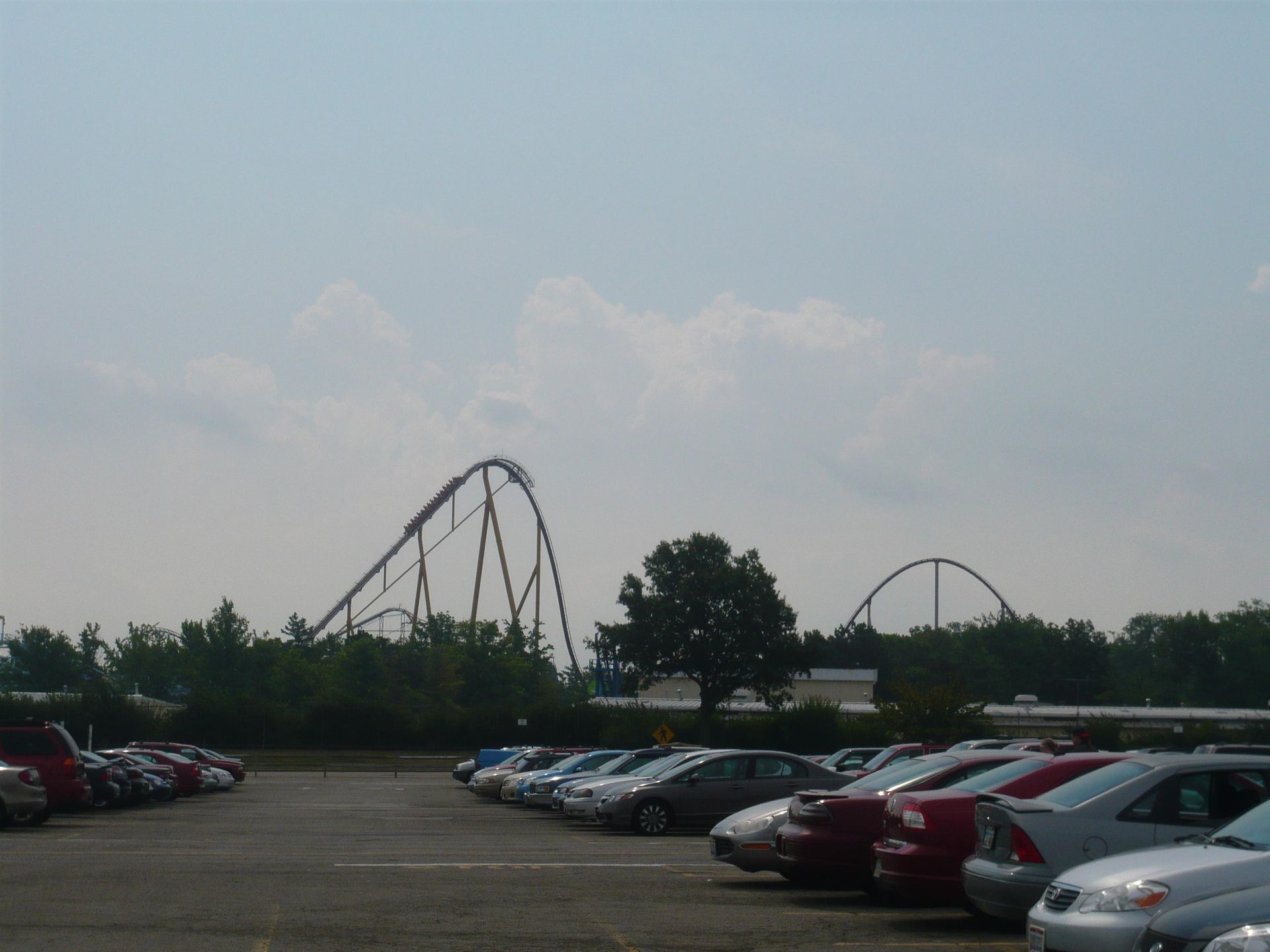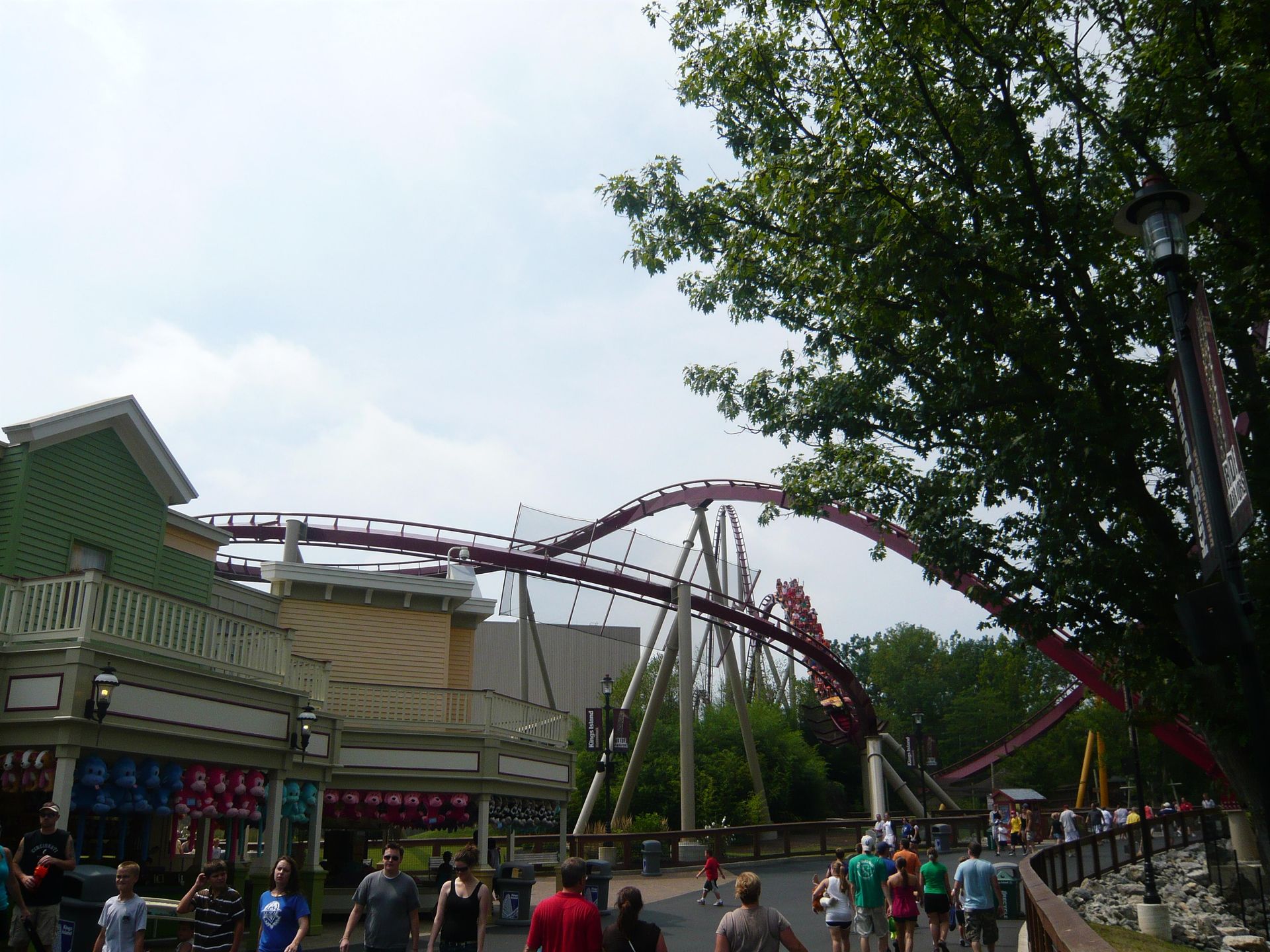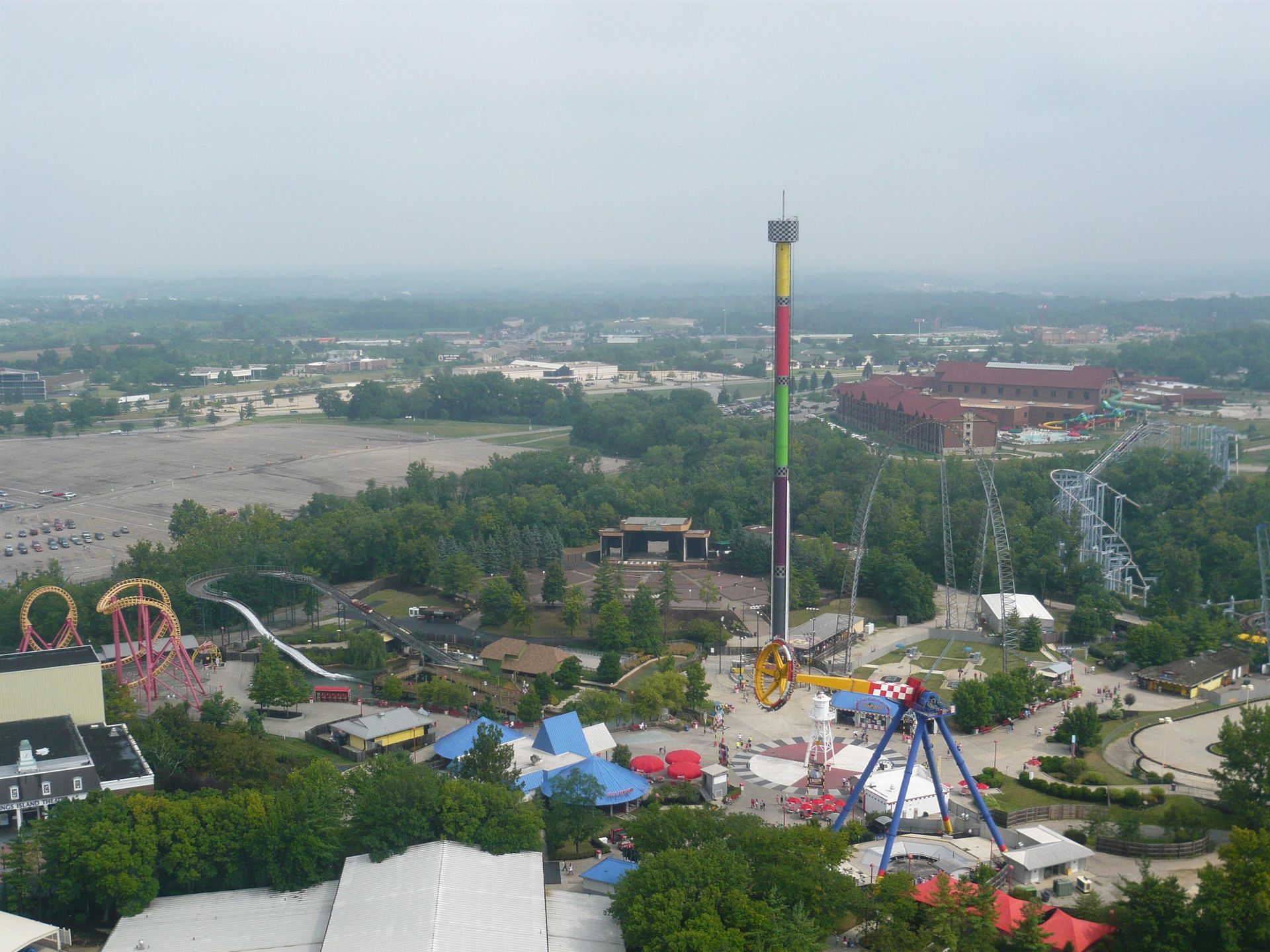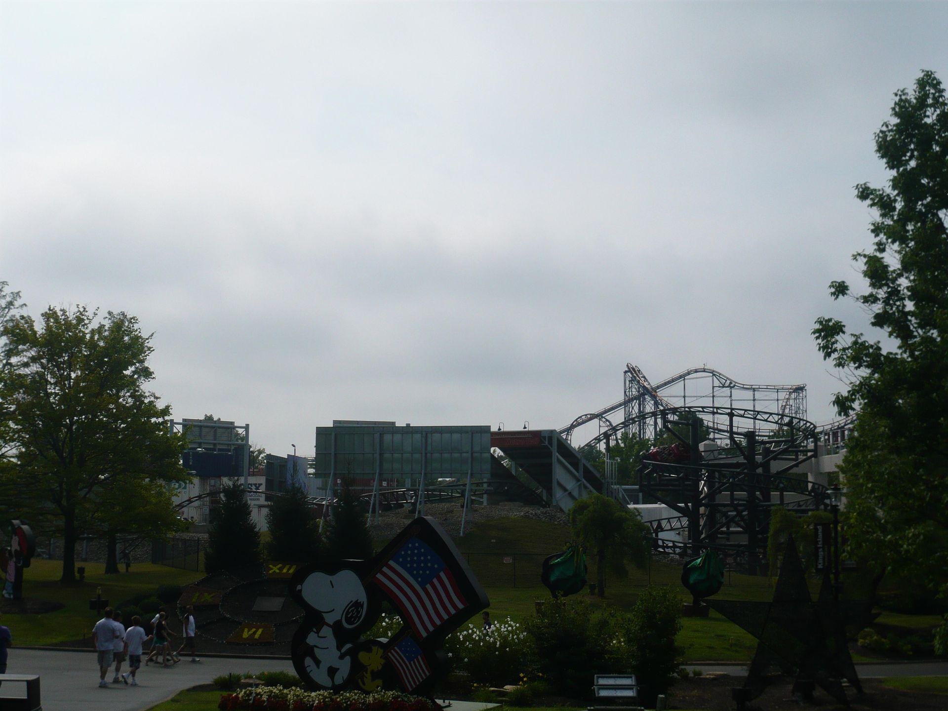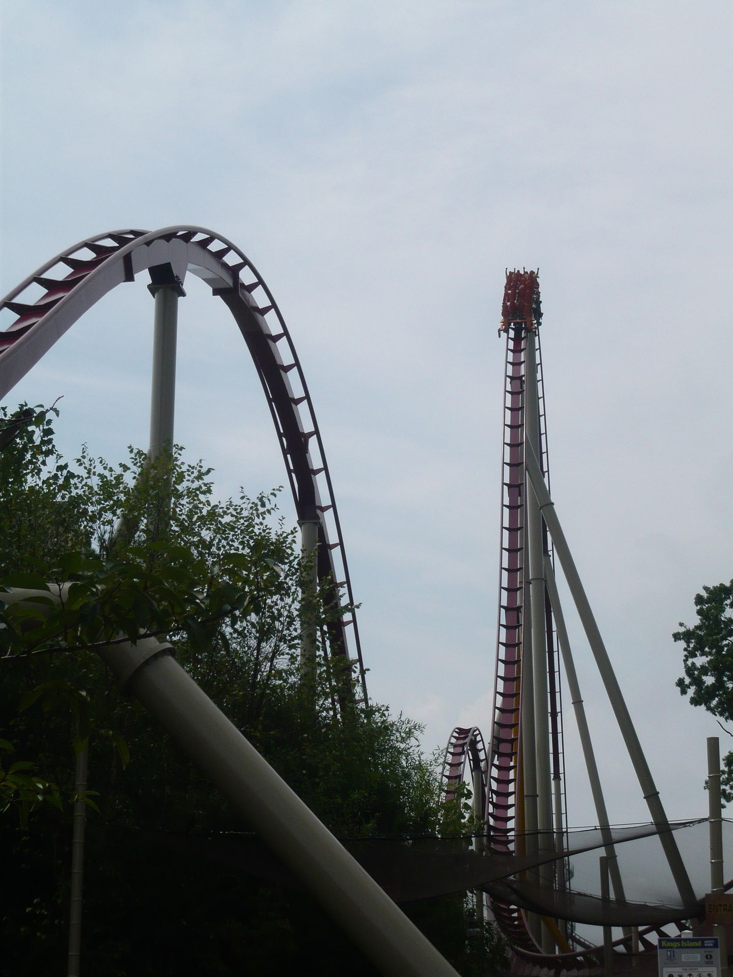 Dabei passiert man fast zwangsläufig Cincinnati und damit auch den nächsten Park auf unserer Tour: Kings Island. Leider ist dieser Besuch ausgerechnet auf ein Wochenende gefallen. Da ich schon des öfteren von grossen Menschenmassen in diesem Park gelesen hatte, war die Vorfreude also etwas getrübt. Dank unseren Cedar Fair Platinum-Pässen und der Tatsache, dass wir gut im ungefähren Zeitplan lagen, beschlossen wir, uns den ganzen Samstag und einen Teil des Sonntags Zeit zu nehmen - gerade so, dass wir alles für uns Interessante wenigstens einmal fahren konnten.