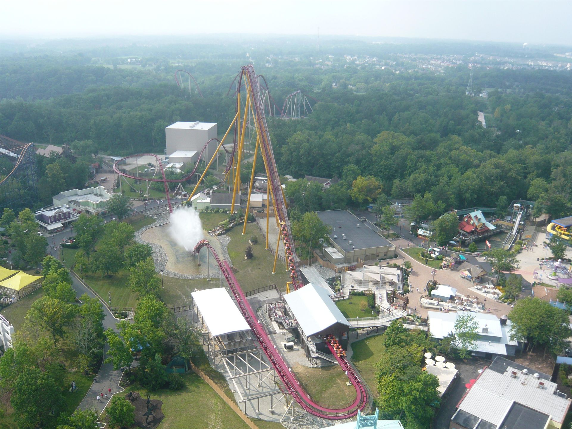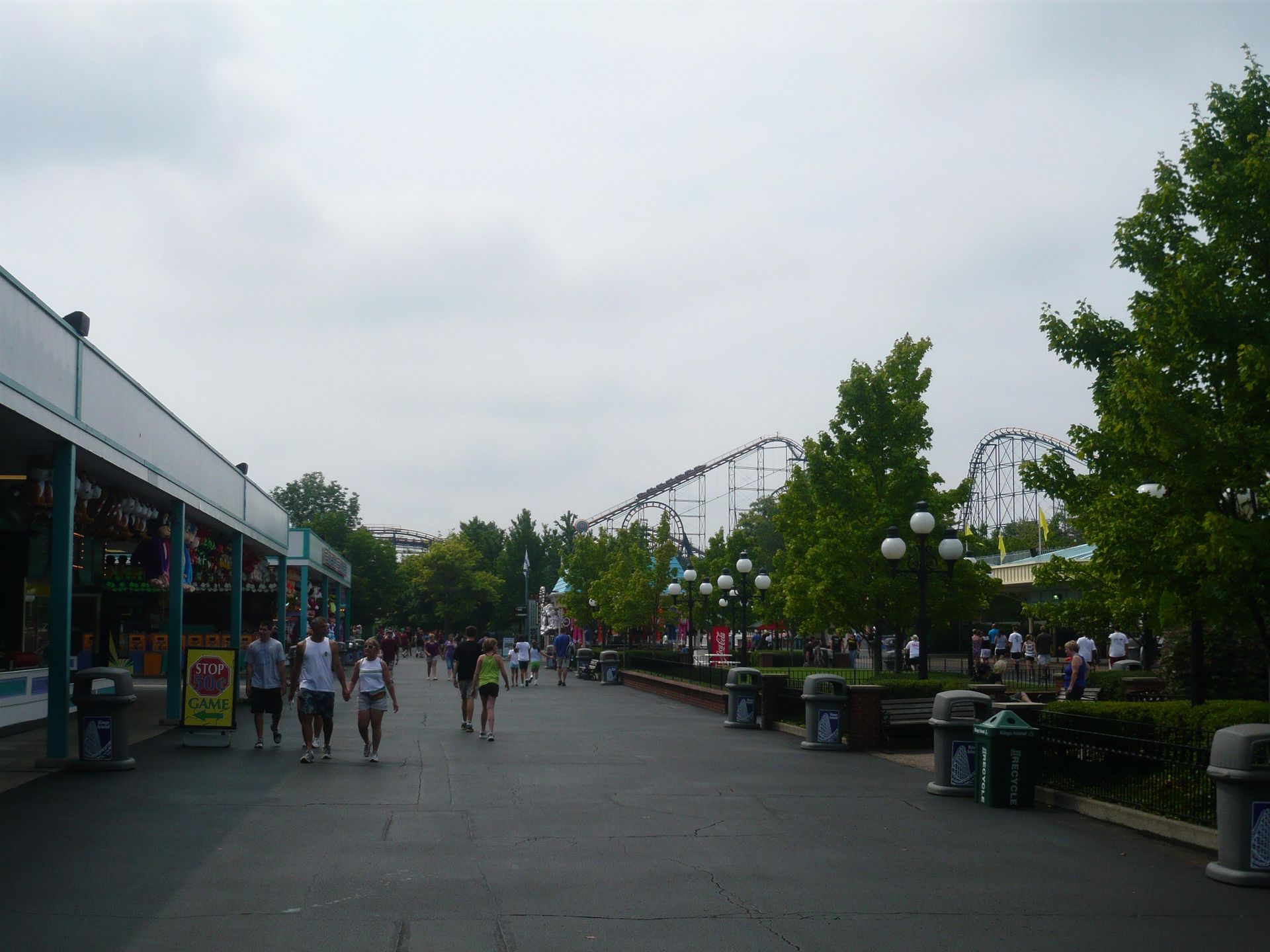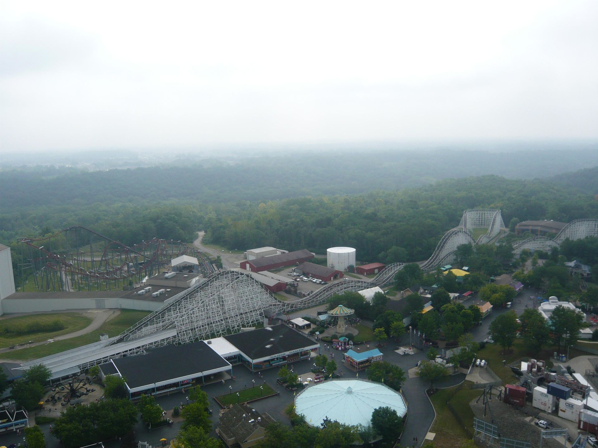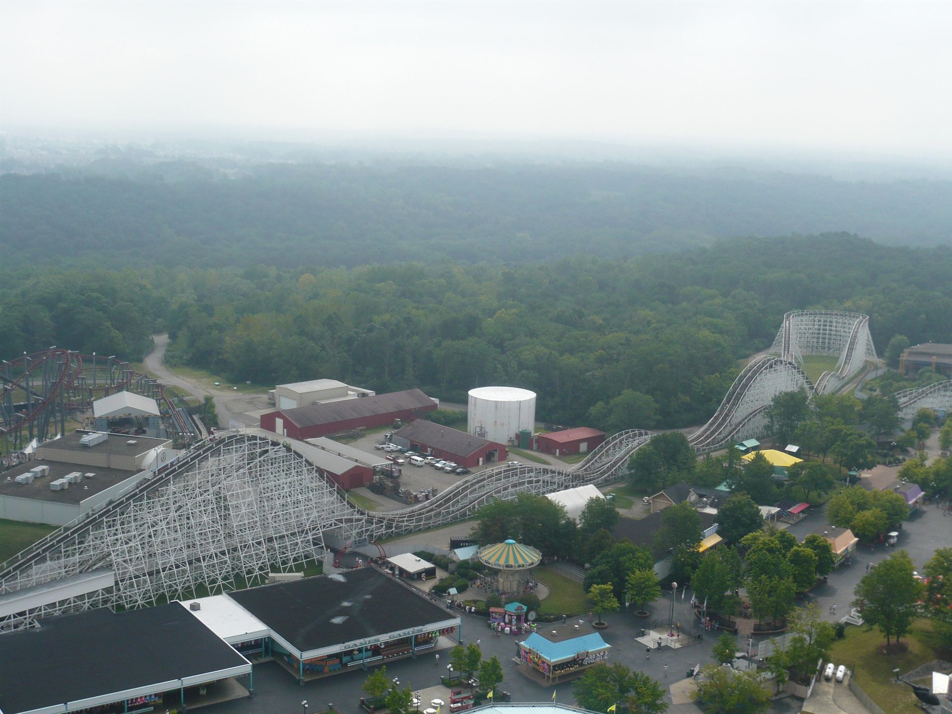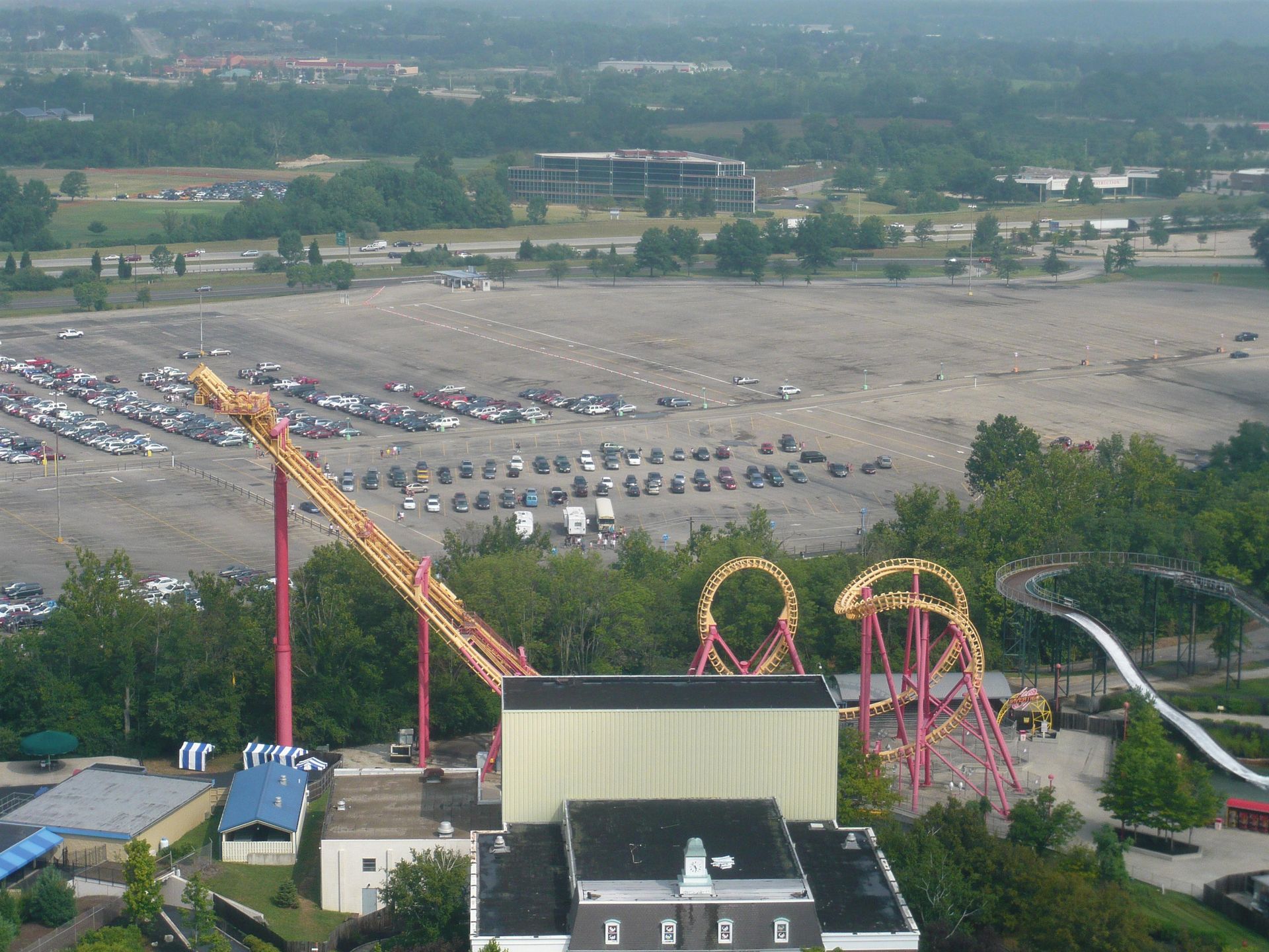 Dabei passiert man fast zwangsläufig Cincinnati und damit auch den nächsten Park auf unserer Tour: Kings Island. Leider ist dieser Besuch ausgerechnet auf ein Wochenende gefallen. Da ich schon des öfteren von grossen Menschenmassen in diesem Park gelesen hatte, war die Vorfreude also etwas getrübt. Dank unseren Cedar Fair Platinum-Pässen und der Tatsache, dass wir gut im ungefähren Zeitplan lagen, beschlossen wir, uns den ganzen Samstag und einen Teil des Sonntags Zeit zu nehmen - gerade so, dass wir alles für uns Interessante wenigstens einmal fahren konnten.
