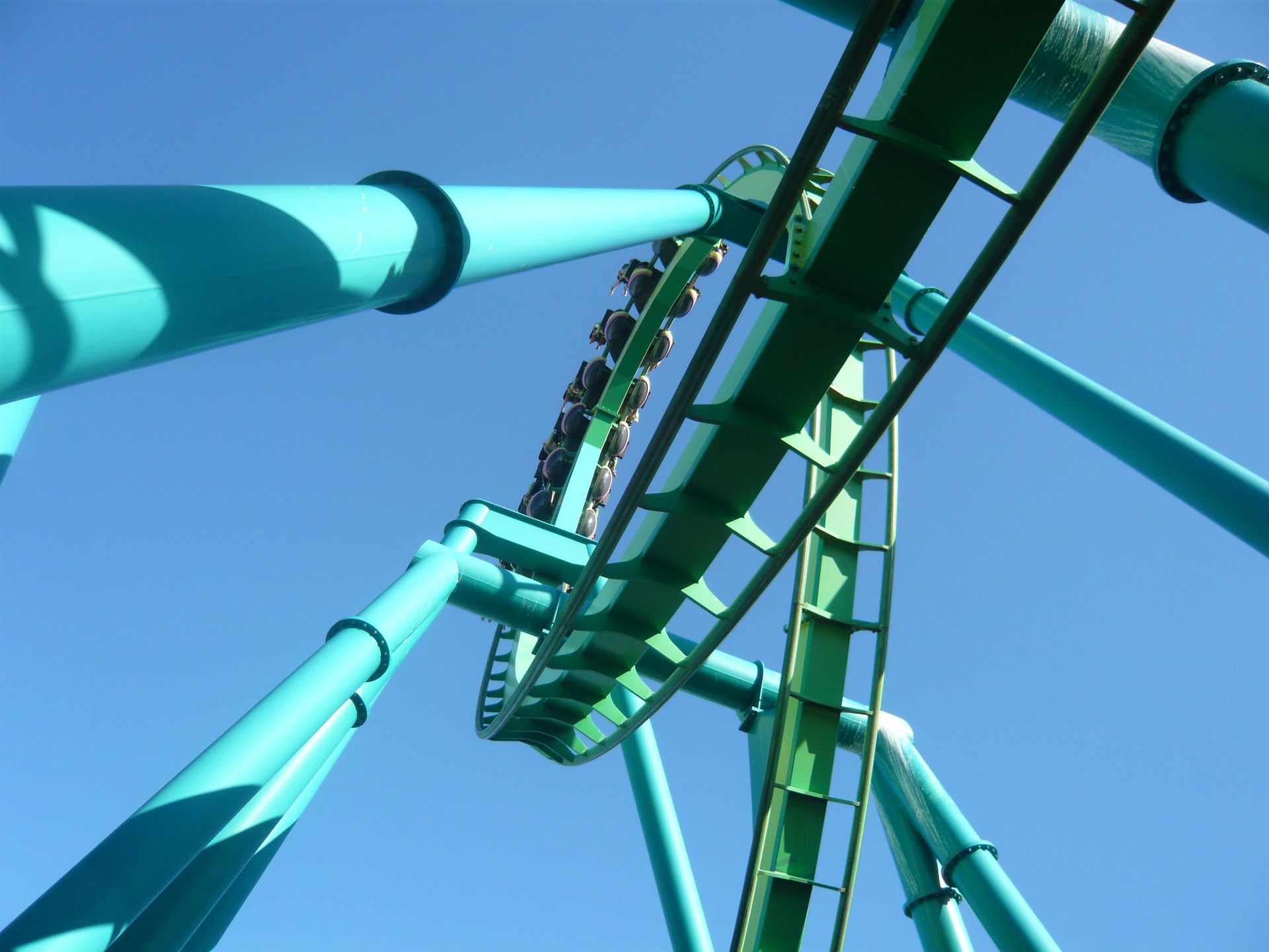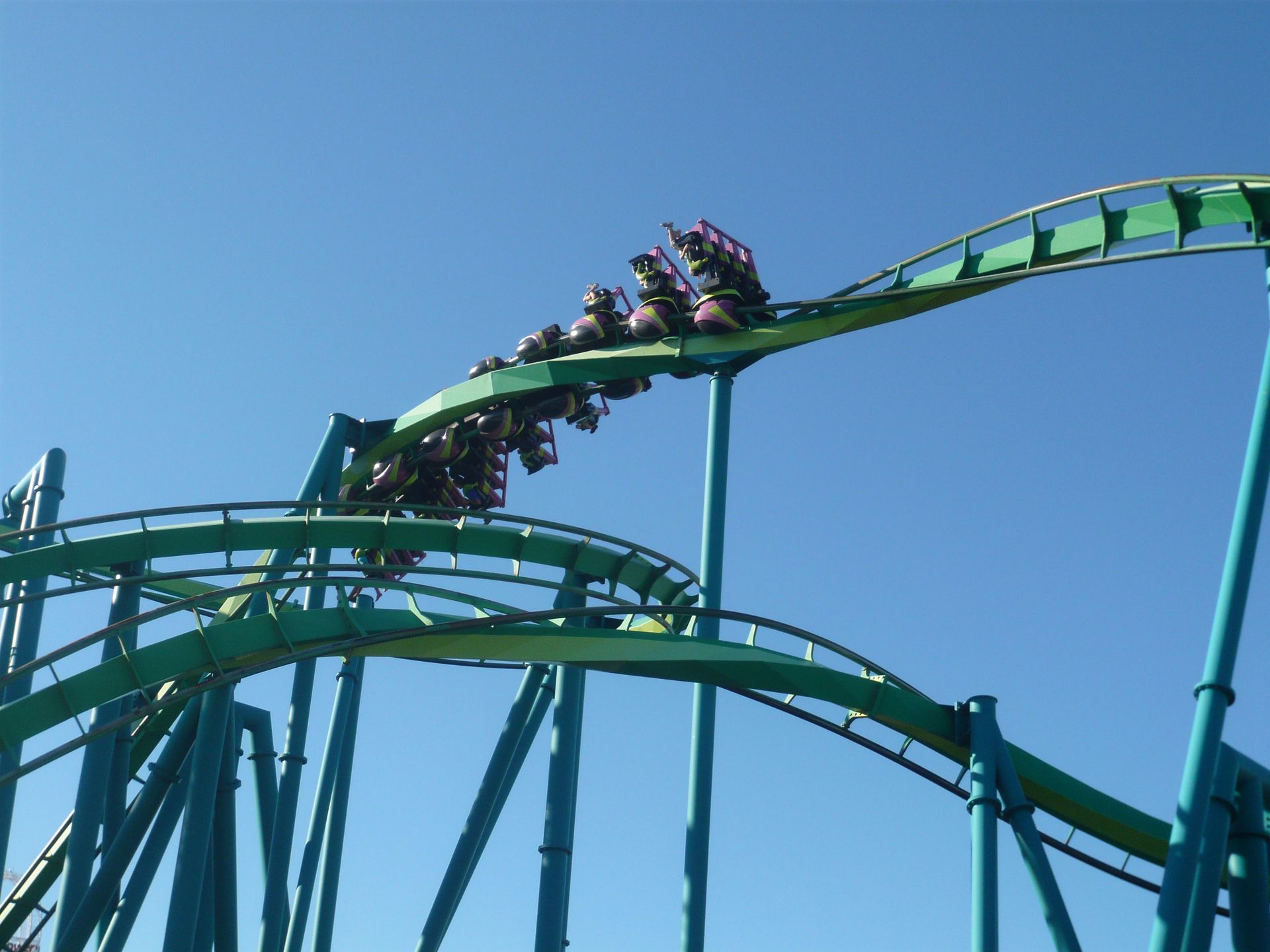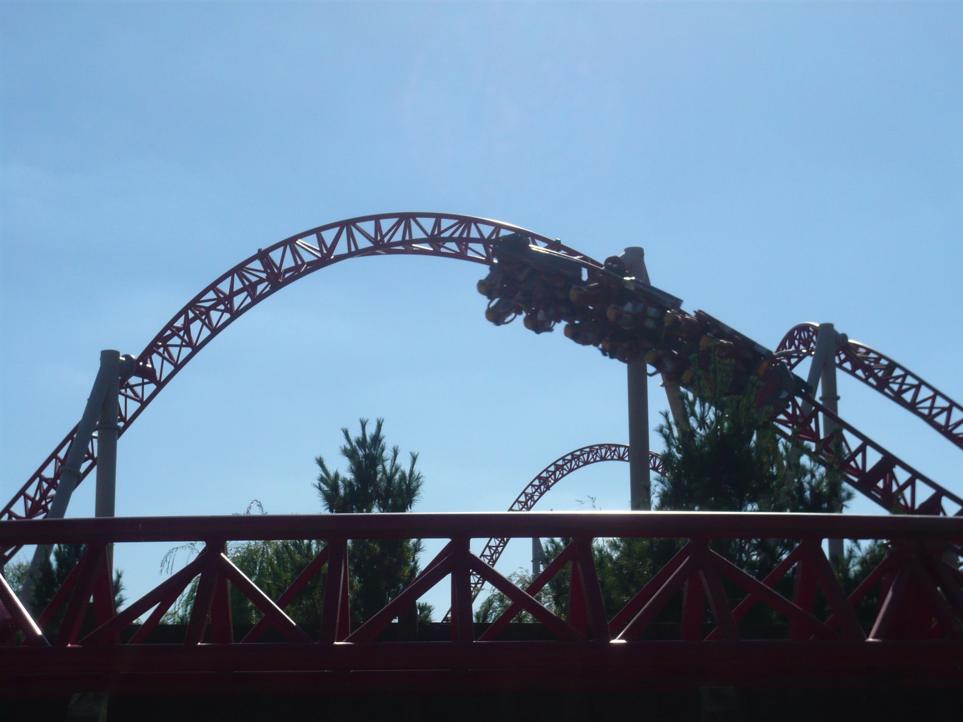 Airtime-Stellen... Die Bahn hat einfach alles! Total verdreht, verrückt, bizarr, lange und ultraintensiv! Wirklich wie ein Ritt auf einem wilden Stier. Genial! Wenn doch hier bloss irgendwie ein grösserer stündlicher Throughput möglich wäre, damit die Wartezeiten nicht so blödsinnig lange sind.