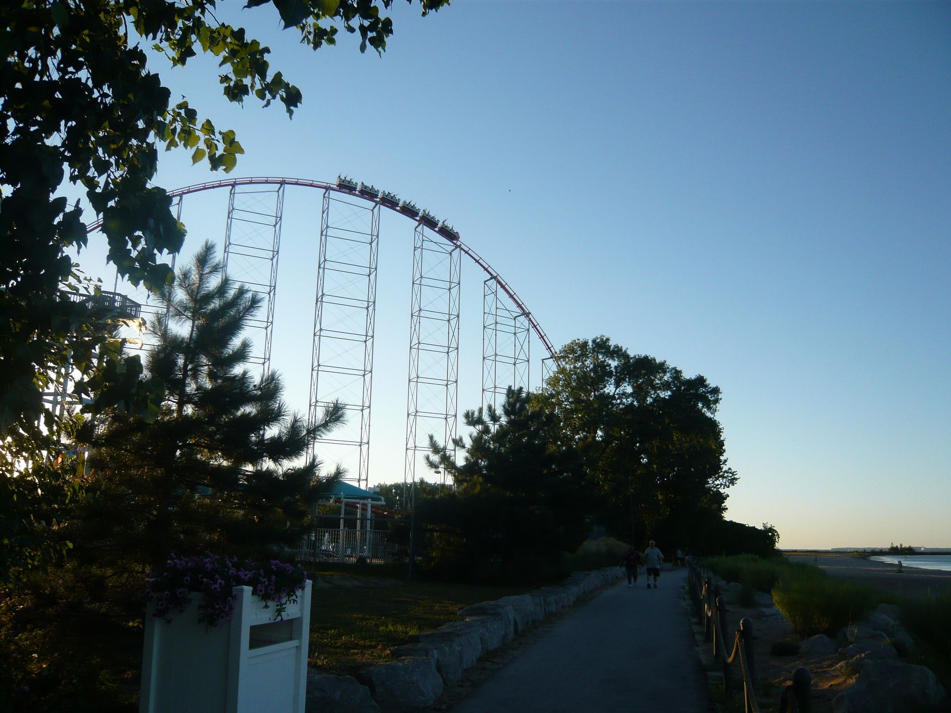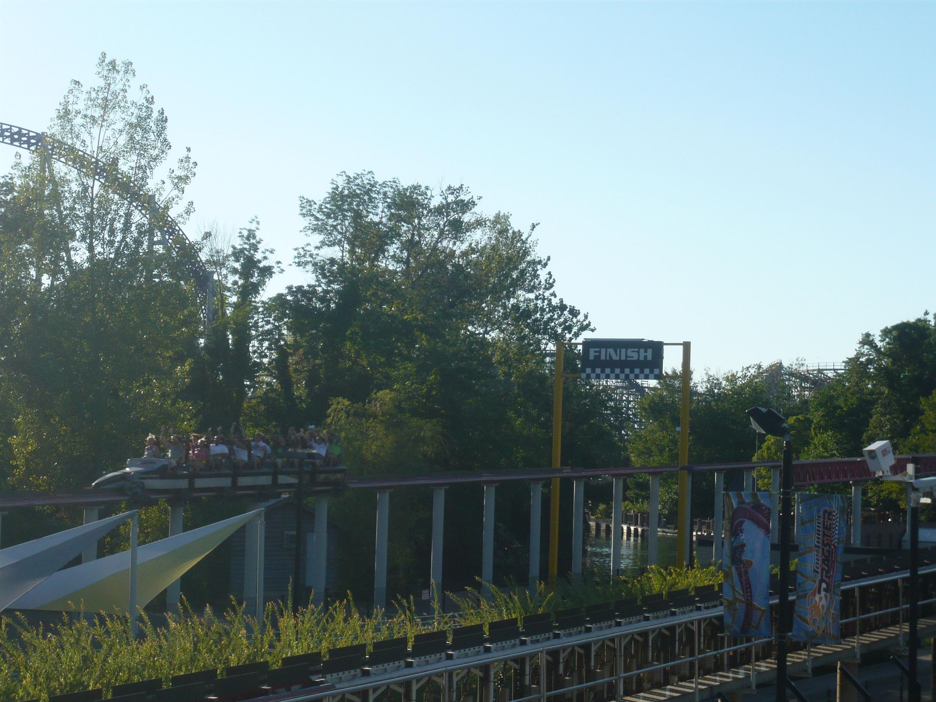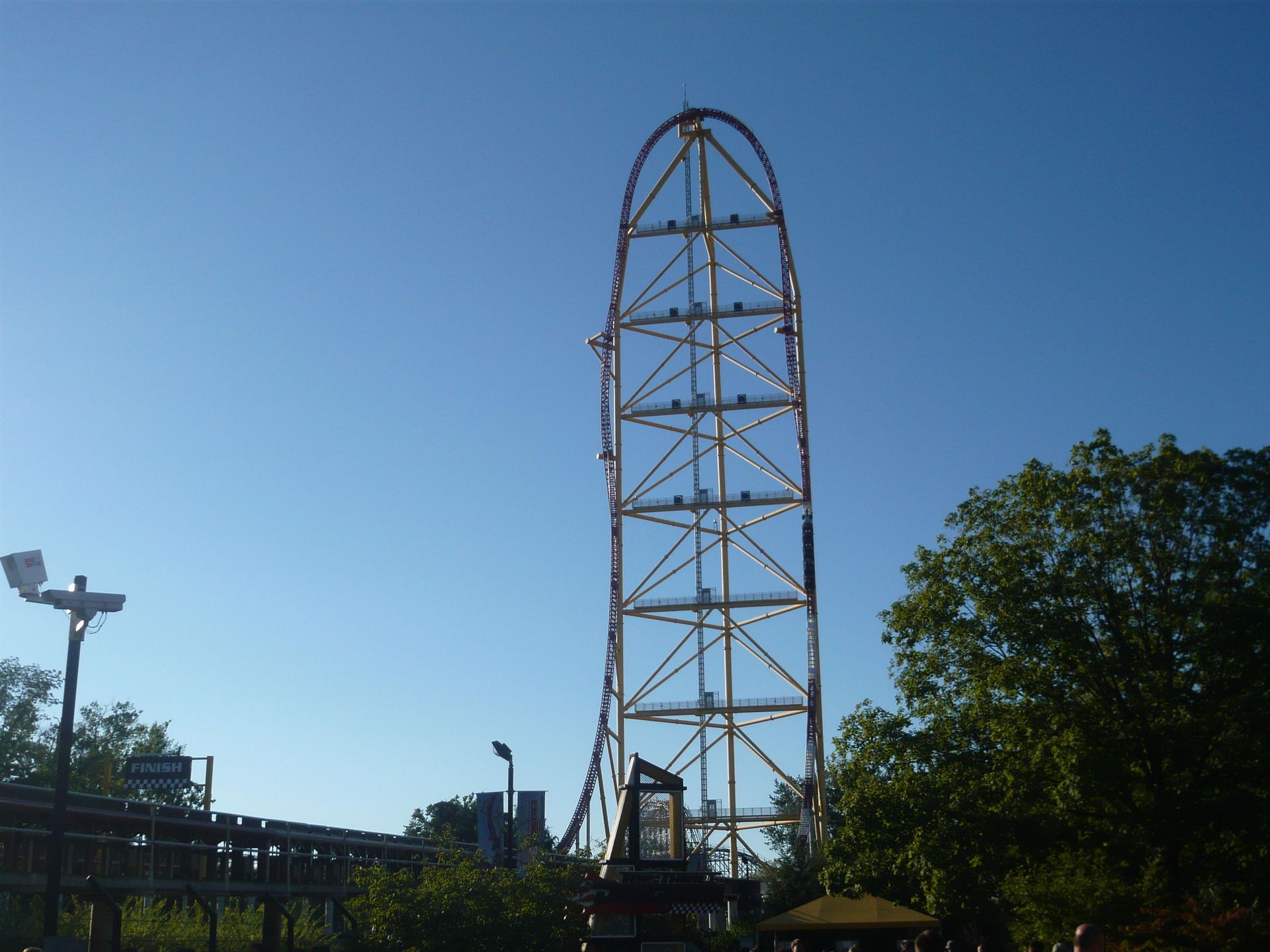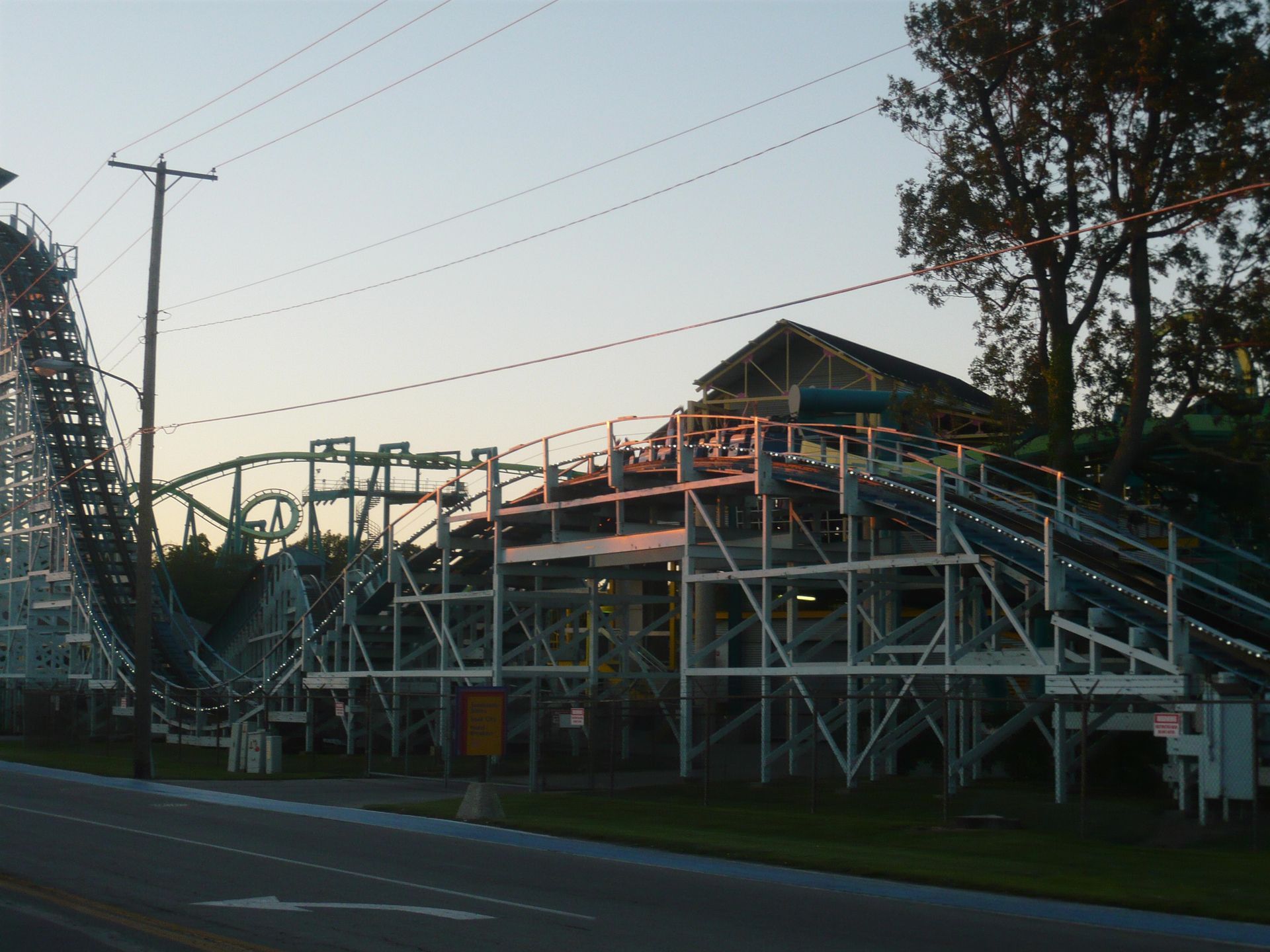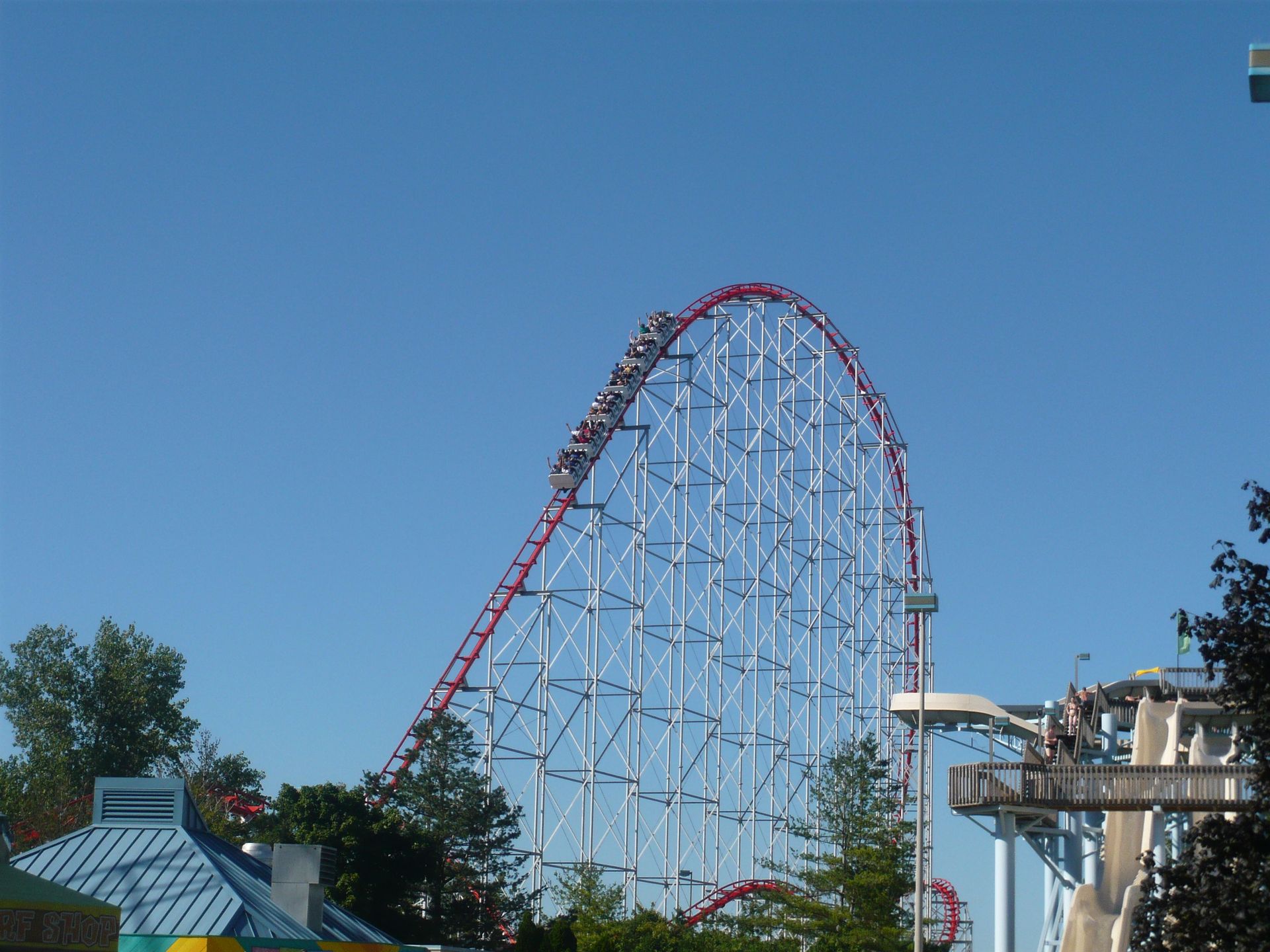 Nach 50 Minuten Wartezeit sollten nun also auch meine beiden Mitstreiter mal in den Genuss dieser wirklich fantastischen Achterbahn kommen und meine Schwärmerei nachvollziehen können. Und sie ist tatsächlich noch genau so schön gefahren wie bei meinem letzten Besuch. Ich liebe die Bahn einfach! Der 91.4 Meter hohe und 80 Grad steile erste Sturz bietet für mich persönlich einen Adrenalinschub, mit dem es keine andere Achterbahn und kein Fahrgeschäft auf diesem Erdenrund aufnehmen kann. Dieses unglaubliche Fallerlebnis aus schwindelerregender Höhe, das durch den gegen die Spitze hin immer schneller werdenden Kabellift jedesmal viel zu rasch eingeleitet wird, ist schlicht der schiere Wahnsinn! Die Aussicht auf den Eriesee von da oben... Das scheinbar endlos lange Vornüberkippen in den 80-Grad-Winkel... Der sich sanft aufbauende, aber starke und lange Druck gegen den minimalen Sicherheitsbügel, während man aus dem Sitz gehoben wird und mit der Kopfstütze im Nacken in die Tiefe saust... Geradezu ausserirdisch und einfach grandios!