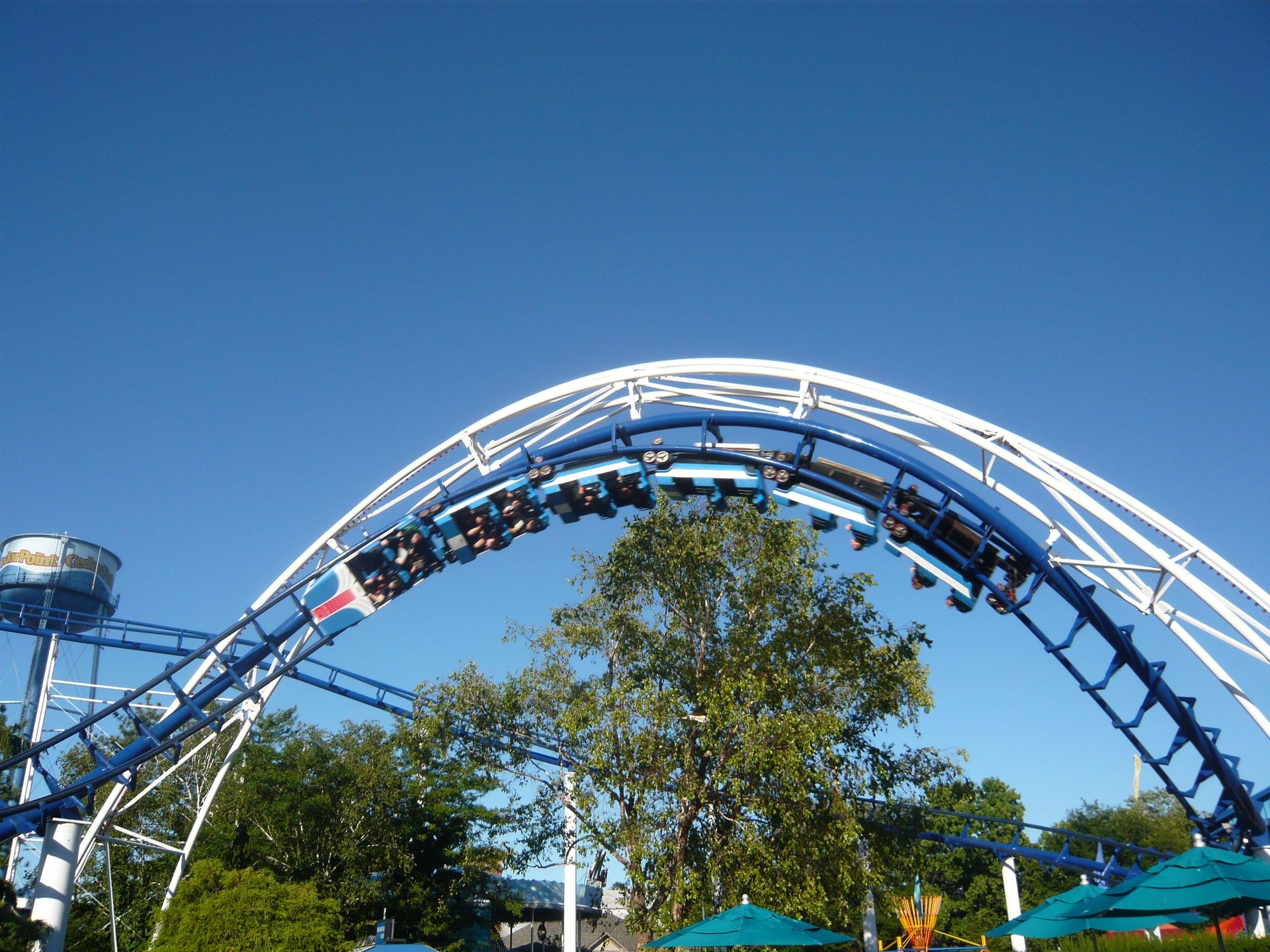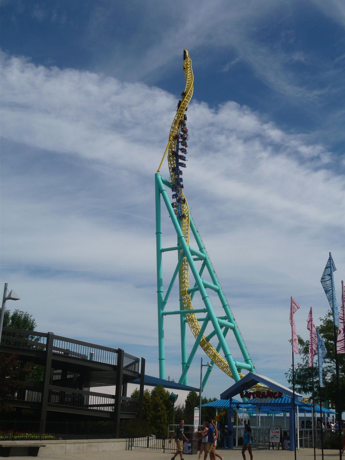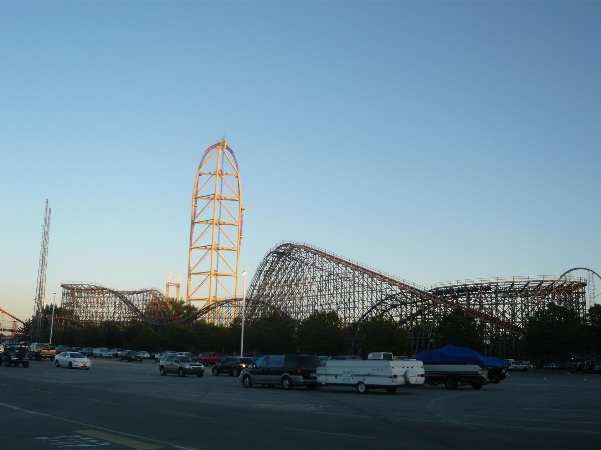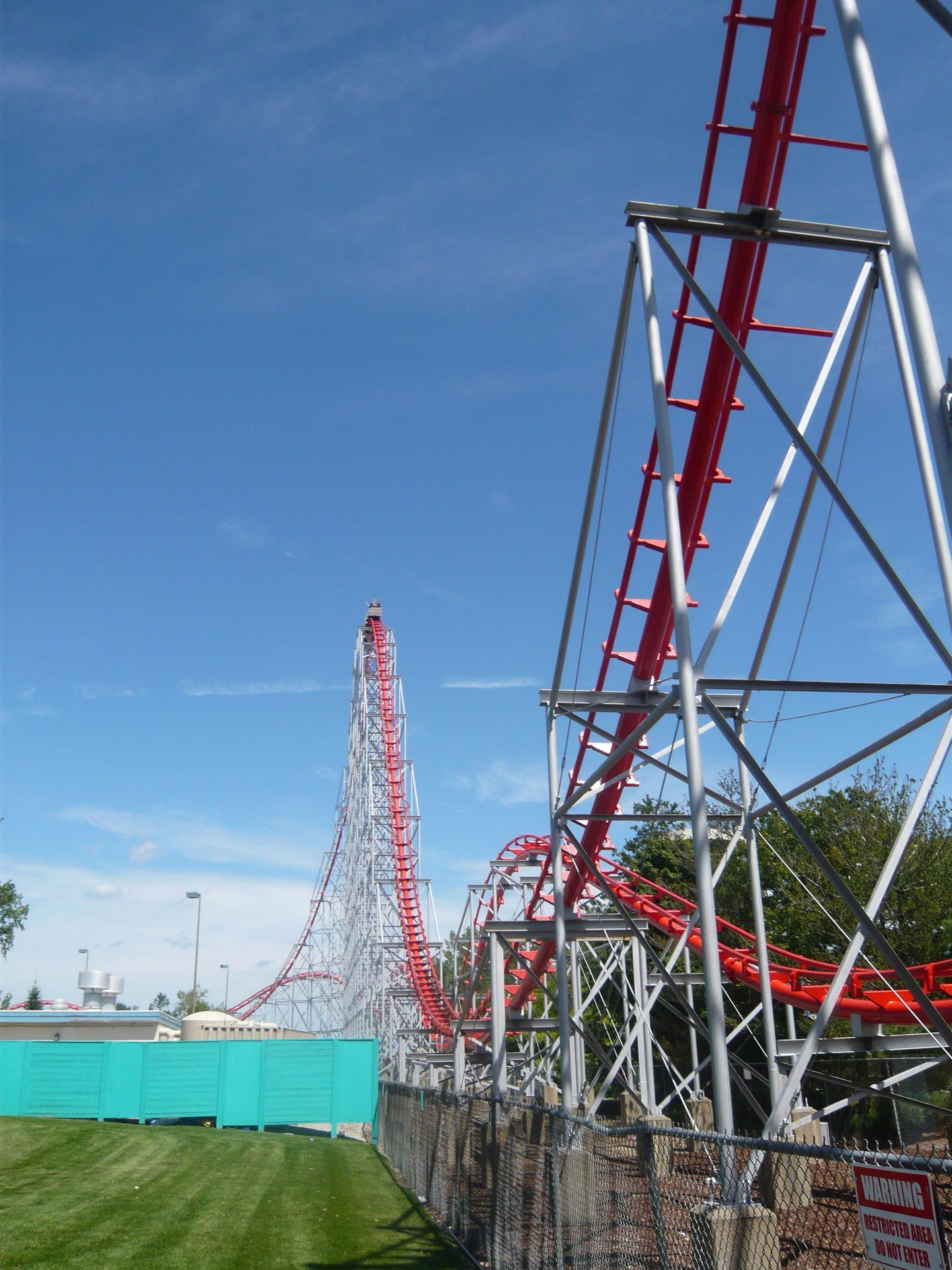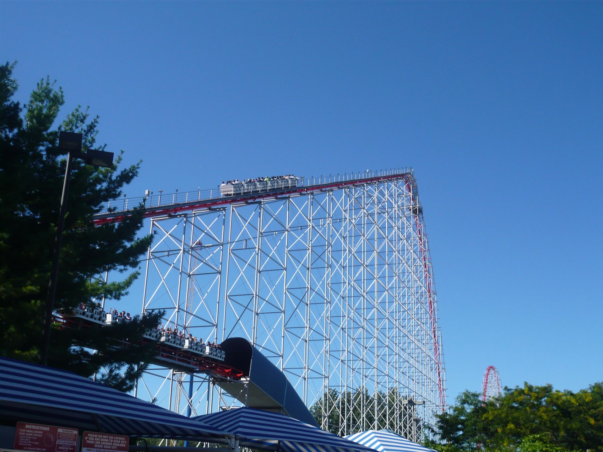 Nach 50 Minuten Wartezeit sollten nun also auch meine beiden Mitstreiter mal in den Genuss dieser wirklich fantastischen Achterbahn kommen und meine Schwärmerei nachvollziehen können. Und sie ist tatsächlich noch genau so schön gefahren wie bei meinem letzten Besuch. Ich liebe die Bahn einfach! Der 91.4 Meter hohe und 80 Grad steile erste Sturz bietet für mich persönlich einen Adrenalinschub, mit dem es keine andere Achterbahn und kein Fahrgeschäft auf diesem Erdenrund aufnehmen kann. Dieses unglaubliche Fallerlebnis aus schwindelerregender Höhe, das durch den gegen die Spitze hin immer schneller werdenden Kabellift jedesmal viel zu rasch eingeleitet wird, ist schlicht der schiere Wahnsinn! Die Aussicht auf den Eriesee von da oben... Das scheinbar endlos lange Vornüberkippen in den 80-Grad-Winkel... Der sich sanft aufbauende, aber starke und lange Druck gegen den minimalen Sicherheitsbügel, während man aus dem Sitz gehoben wird und mit der Kopfstütze im Nacken in die Tiefe saust... Geradezu ausserirdisch und einfach grandios!