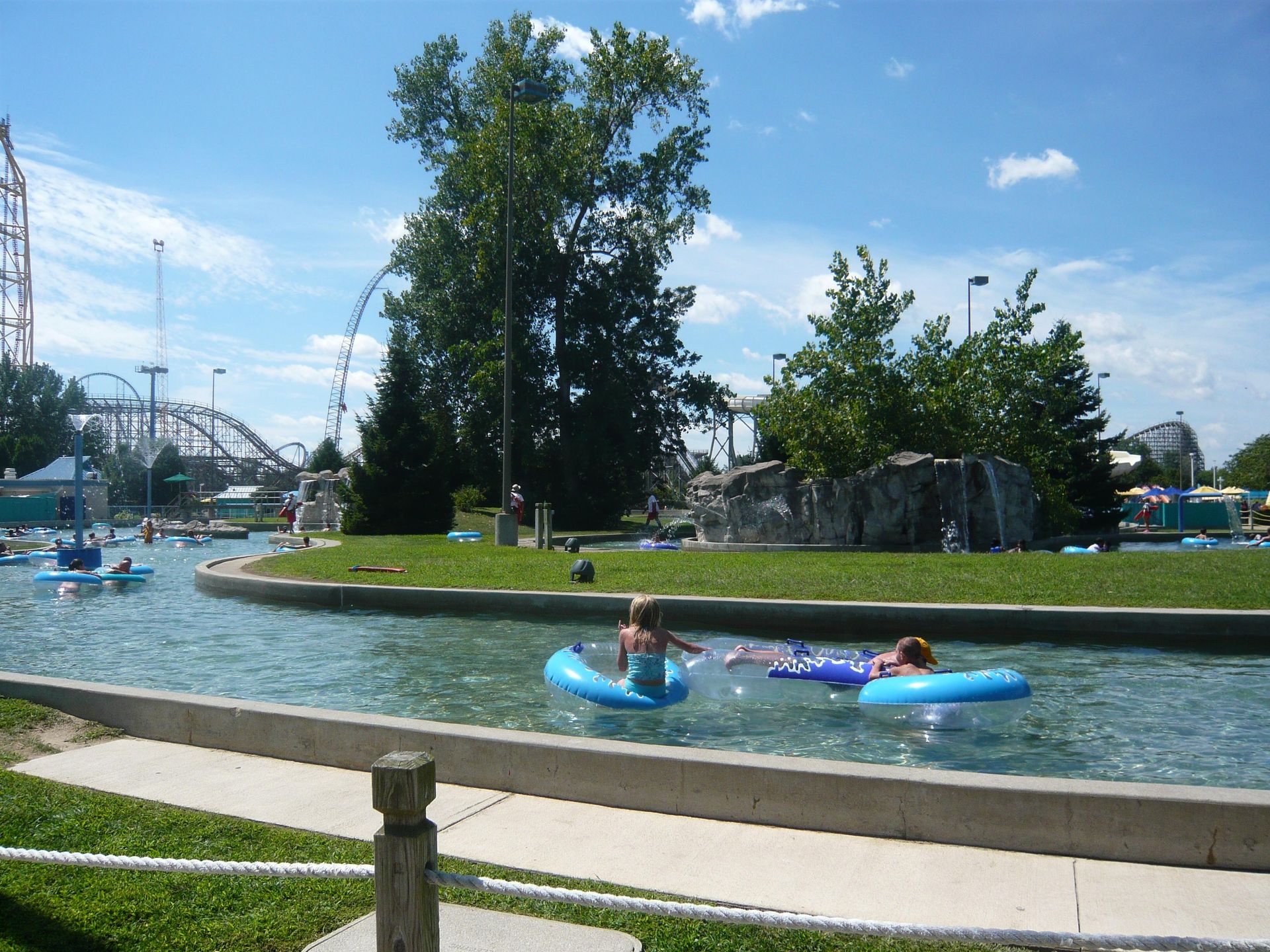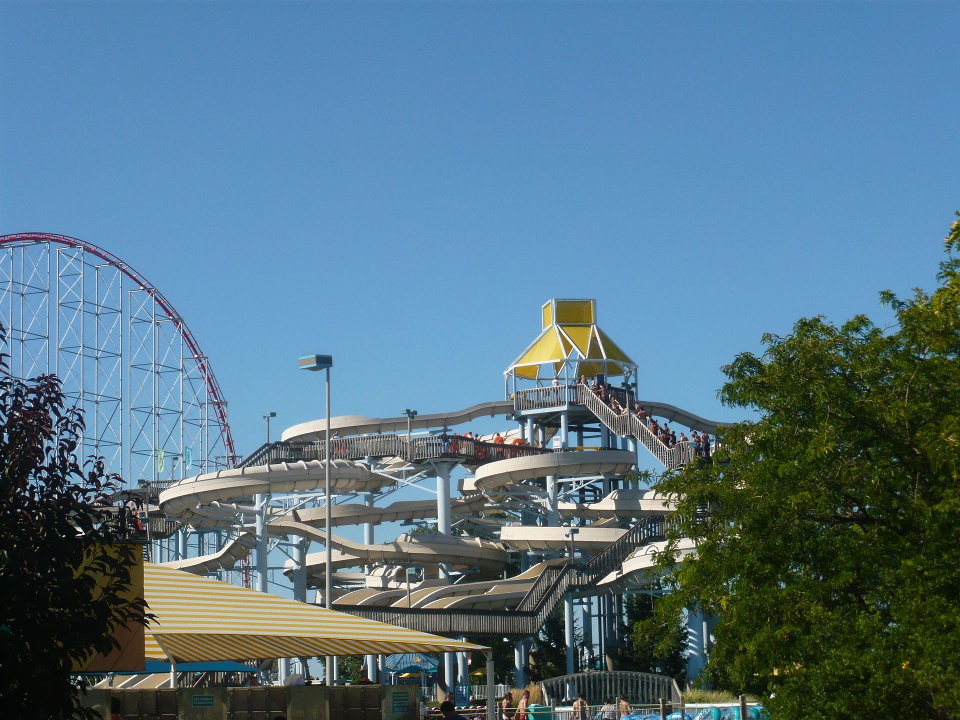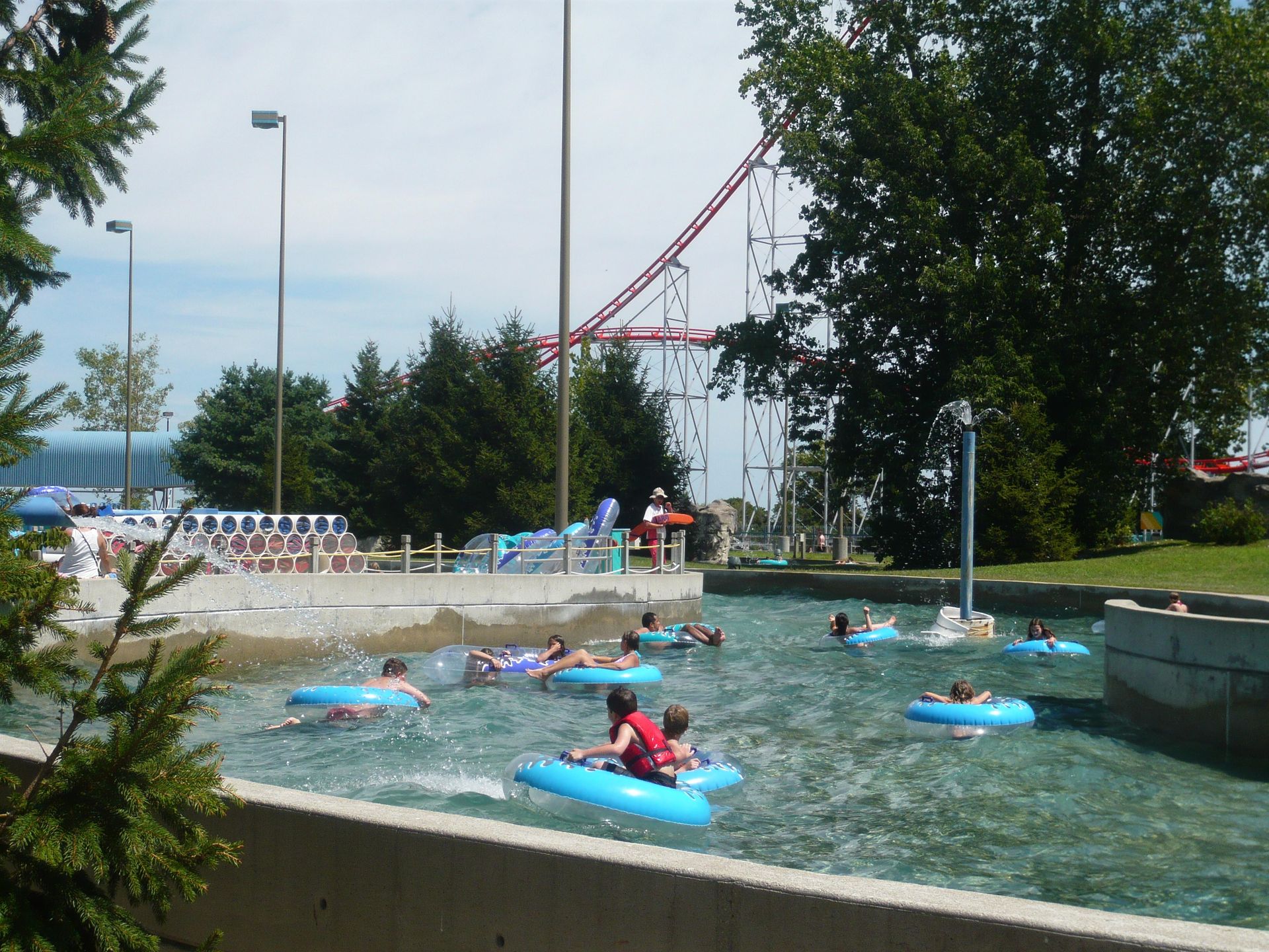 Ausserdem gibt es noch unzählige Reifenrutschen - darunter auch eine imposante Dreifach-Black-Hole-Anlage namens Eerie Falls - und das abgebildete Wellenbad. Wir haben nicht alles gemacht, aber dennoch einige schöne und entspannte Stunden hier zugebracht. Danach sind wir noch kurz an den Strand gegangen, um wenigstens einmal noch im Eriesee zu baden. Leider war der abgetrennte Bereich, in den man hinein darf, am hintersten Ende kaum knietief - trotzdem sind wir immerhin einmal untergetaucht und können nun bestätigen: Er ist mit Süsswasser gefüllt.