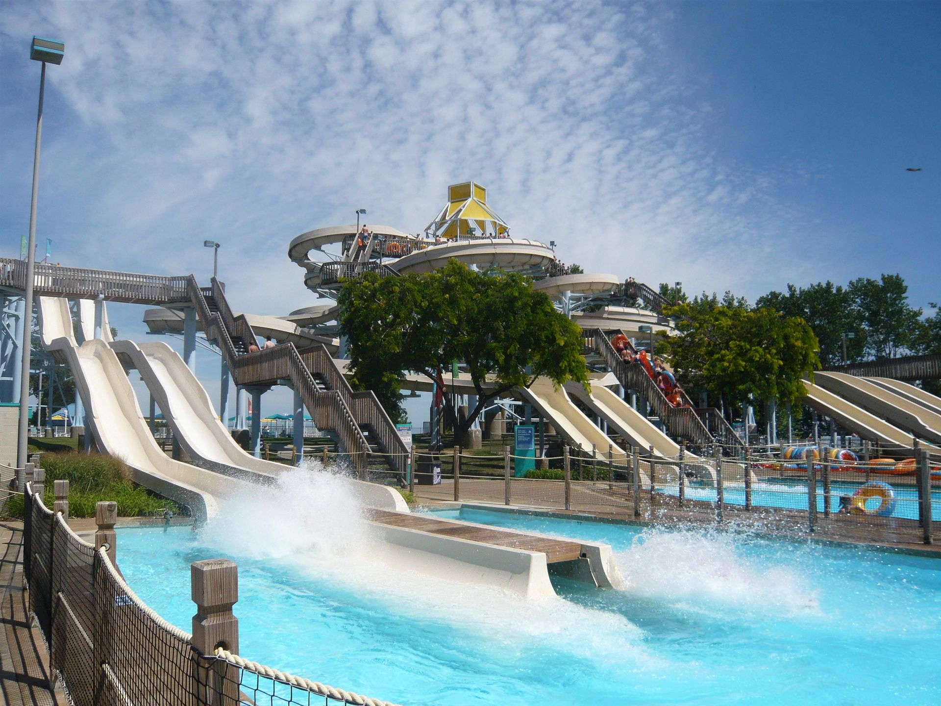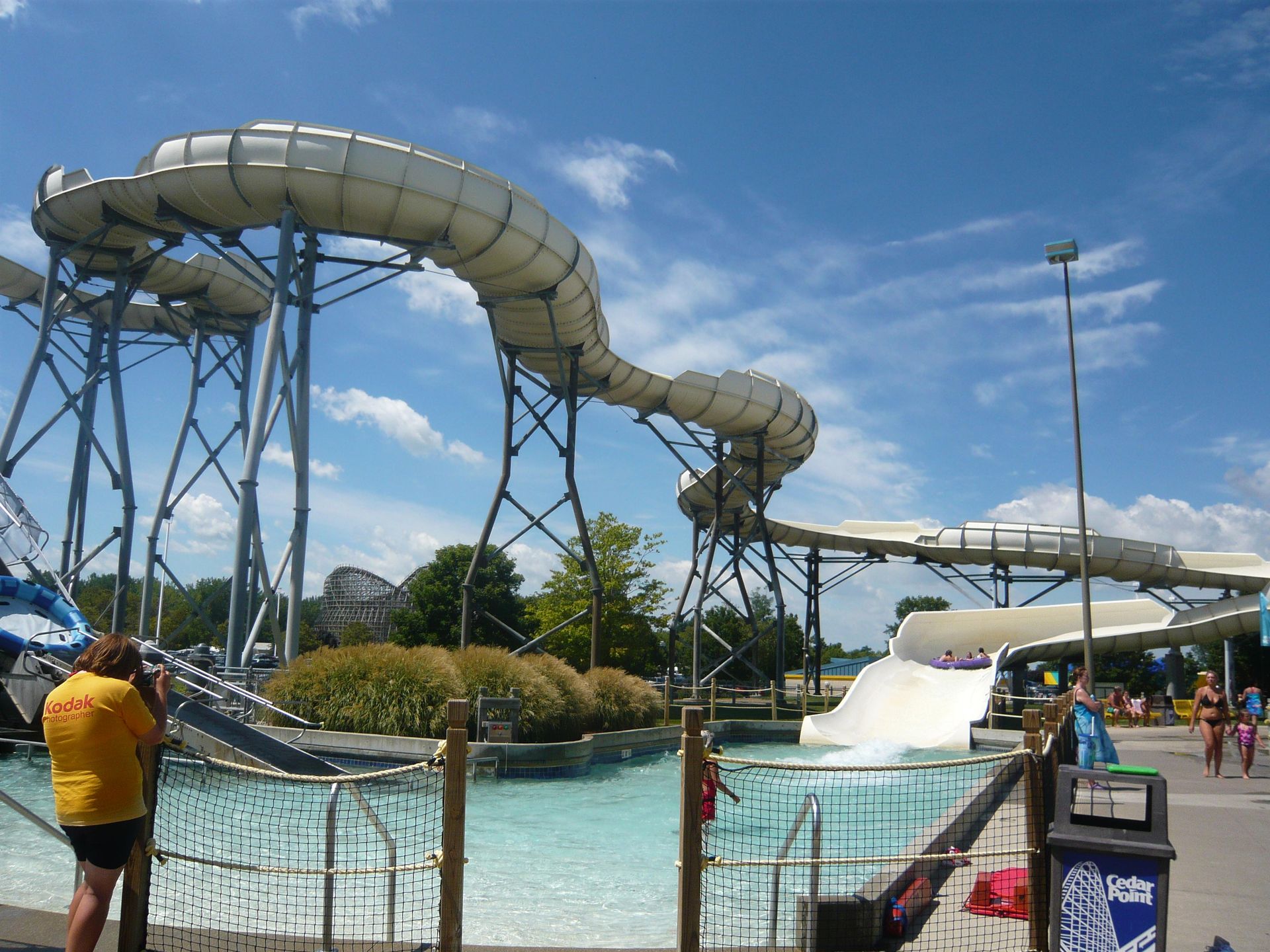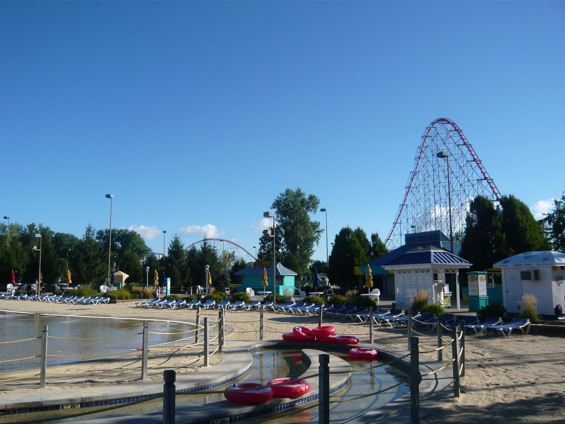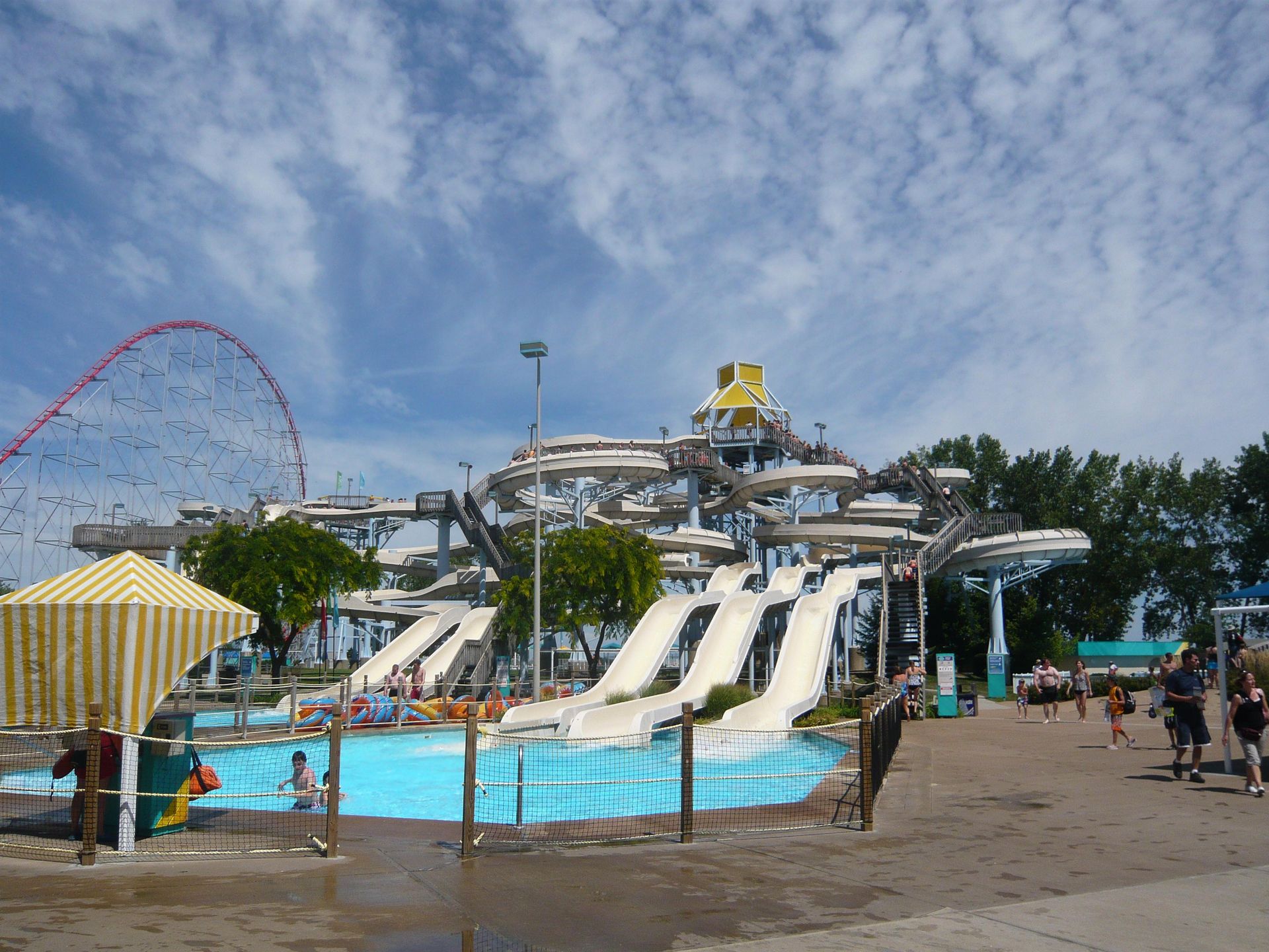 Ausserdem gibt es noch unzählige Reifenrutschen - darunter auch eine imposante Dreifach-Black-Hole-Anlage namens Eerie Falls - und das abgebildete Wellenbad. Wir haben nicht alles gemacht, aber dennoch einige schöne und entspannte Stunden hier zugebracht. Danach sind wir noch kurz an den Strand gegangen, um wenigstens einmal noch im Eriesee zu baden. Leider war der abgetrennte Bereich, in den man hinein darf, am hintersten Ende kaum knietief - trotzdem sind wir immerhin einmal untergetaucht und können nun bestätigen: Er ist mit Süsswasser gefüllt.