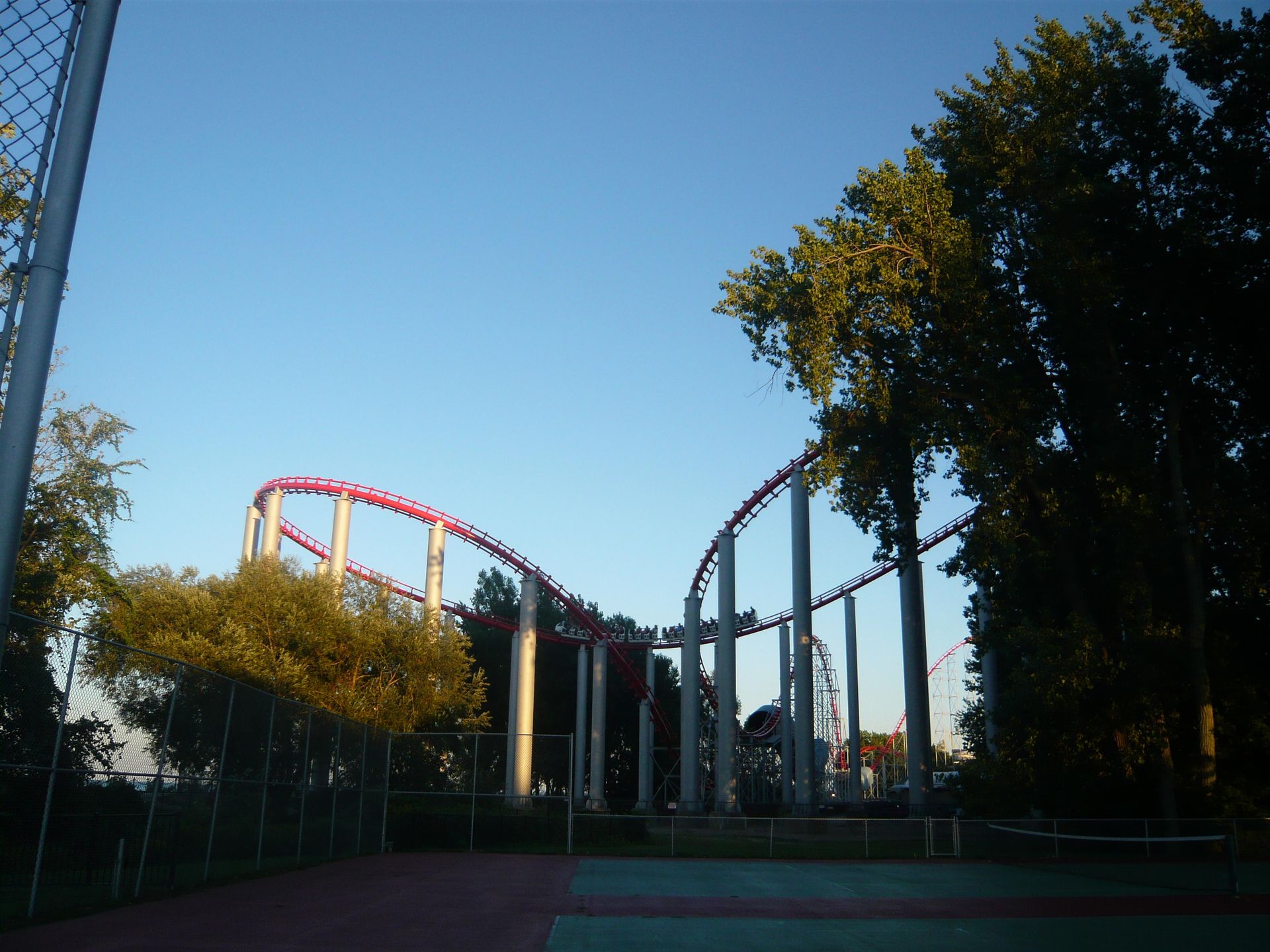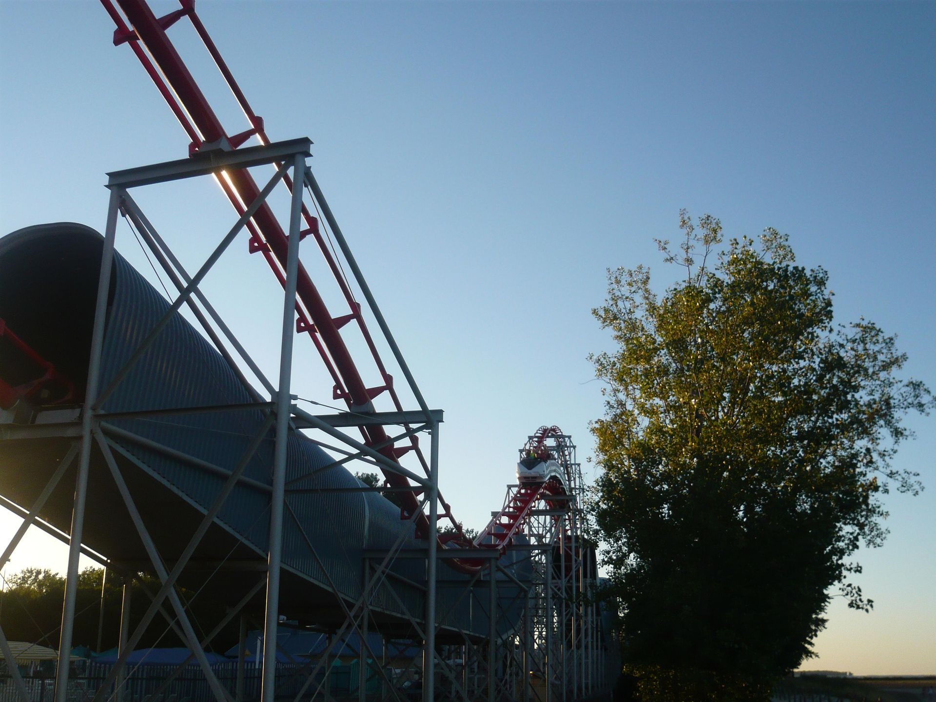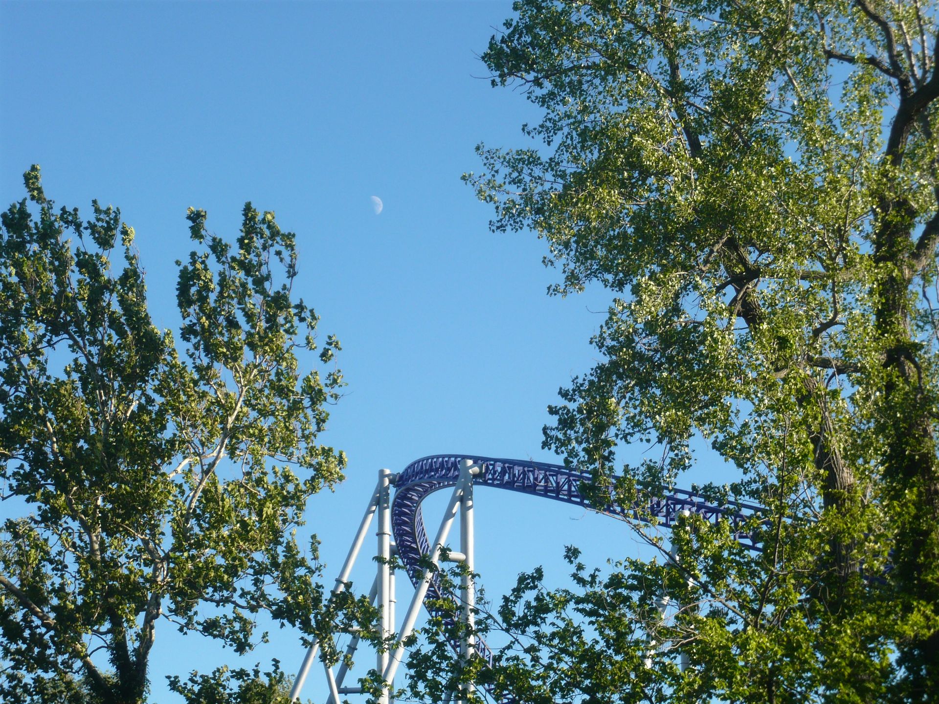 Ist es denn zu fassen, dass ich von der Bahn kein anständig beleuchtetes Bild habe? Maverick ist durch seine Lage im Park eine Bahn, die man am besten morgens von der Ausgangsplattform aus fotografiert. Um die Zeit waren wir jedoch mit Coastern beschäftigt und die Kamera noch im Spind.