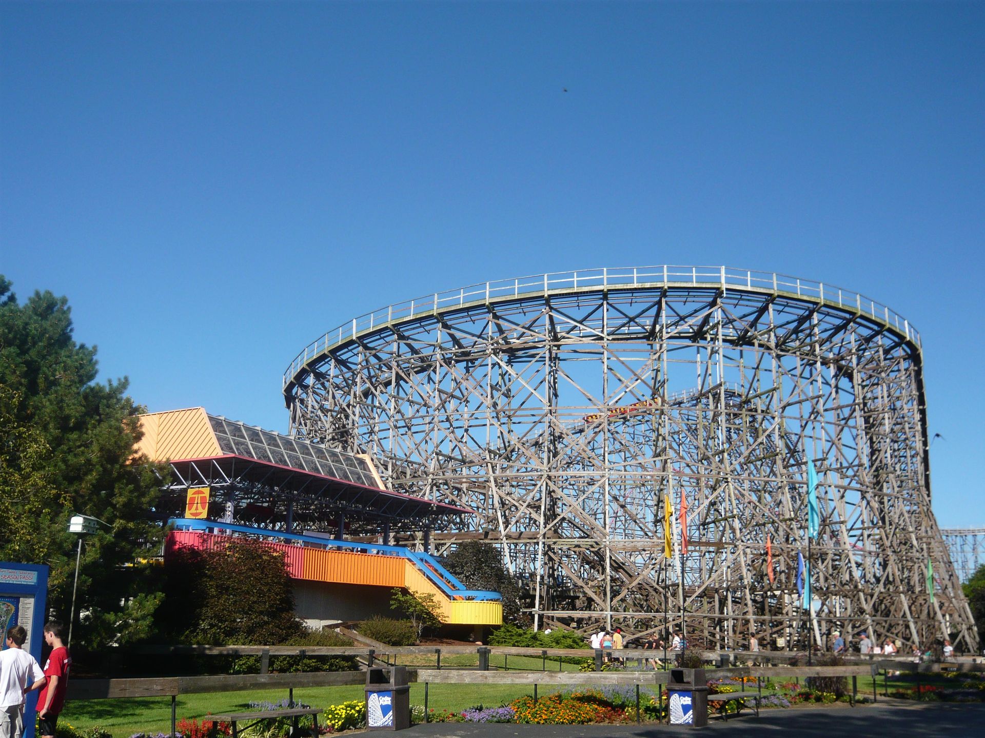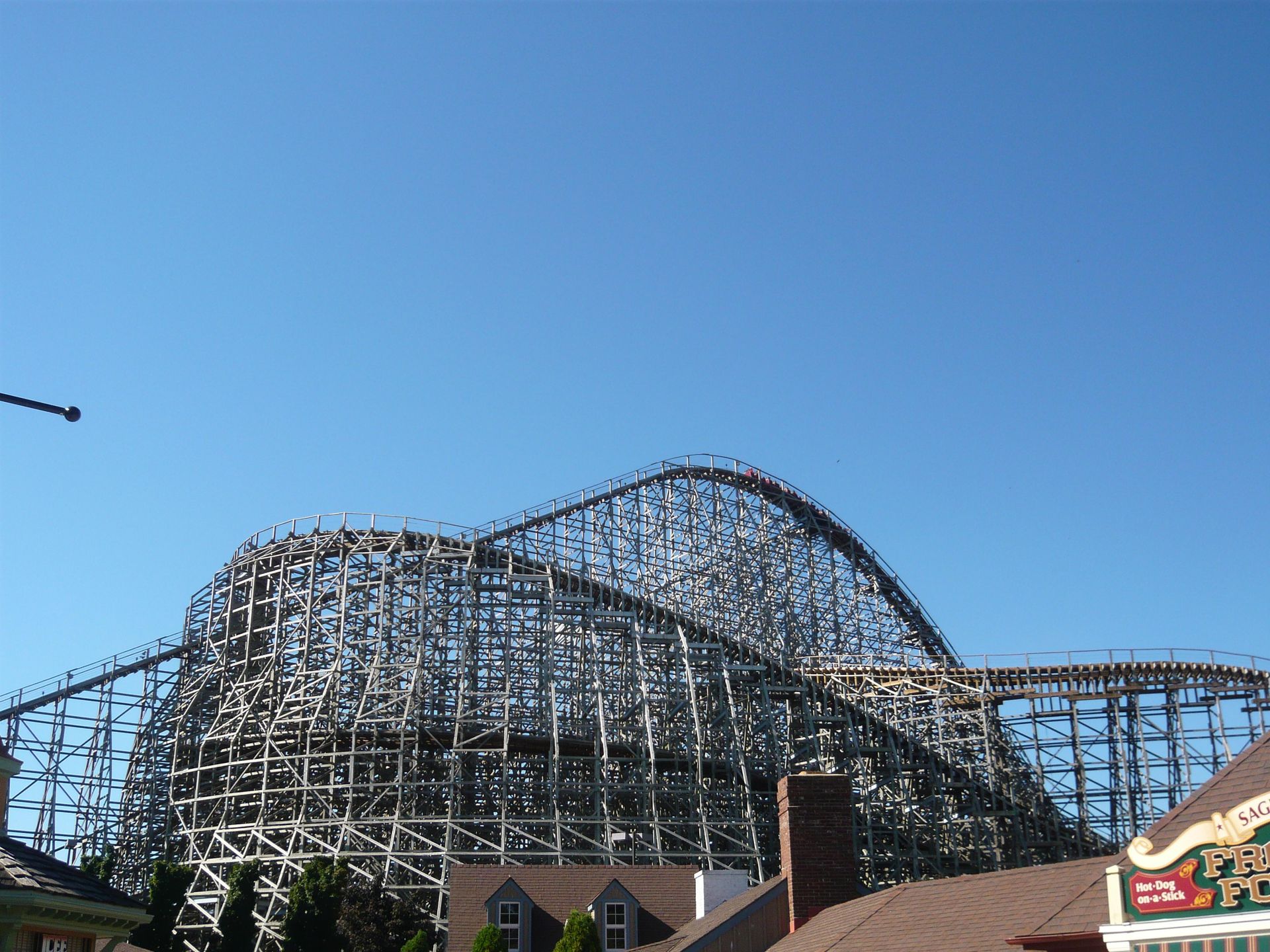 Als nächstes stand eine Fahrt mit dem nahe gelegenen Blue Streak auf dem Programm. Cedar Points Antwort auf die Frage, ob es hier auch eine GUTE Holzachterbahn gibt.