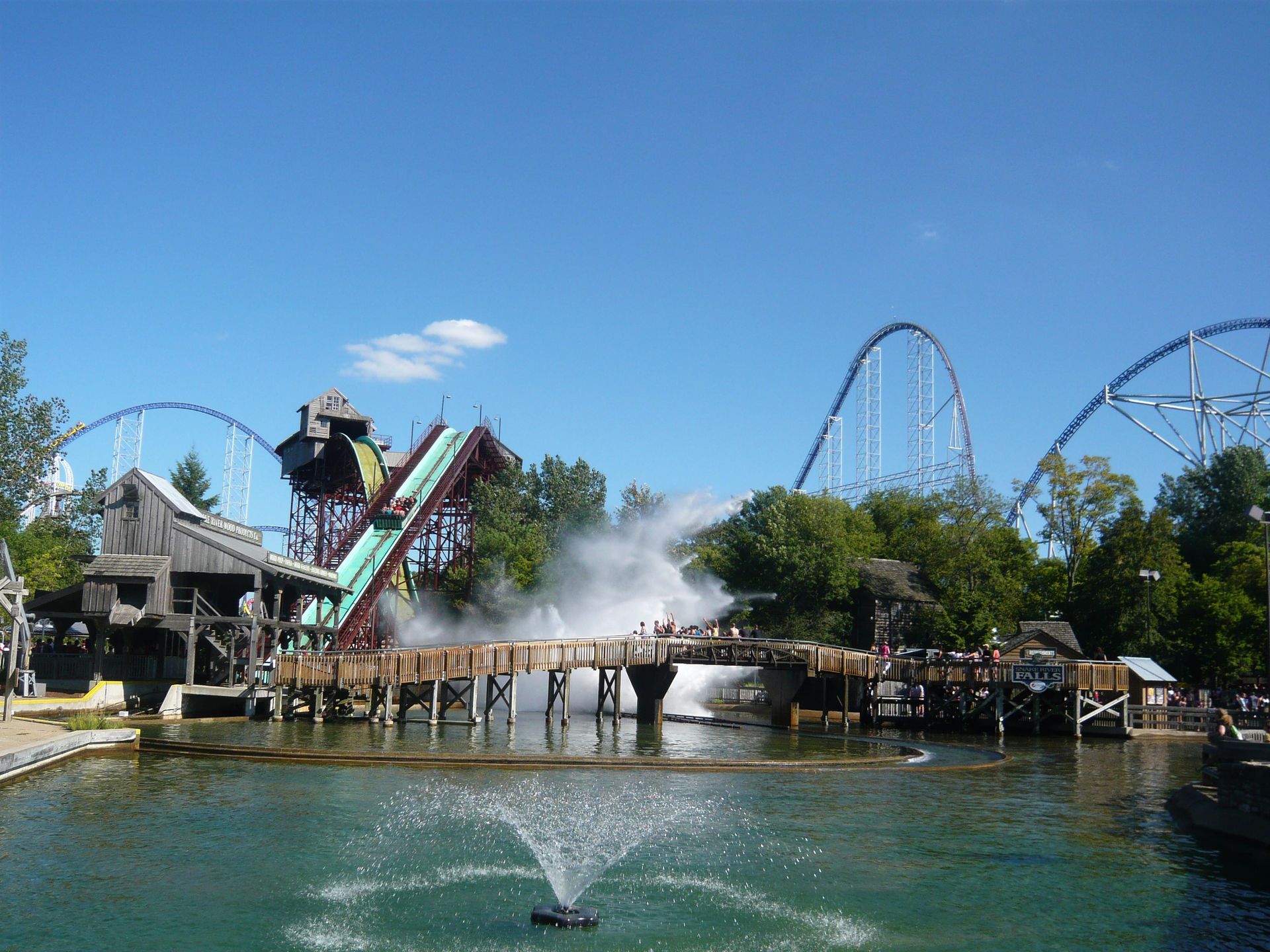 PLATSCH! Die nahe gelegene Neuheit dieses Jahres, Shoot-the-Rapids, hatte immer wieder Aussetzer und eine unendlich lange Warteschlange. Was sonst, bei der langen Strecke und lediglich zehn Zehnerbooten?