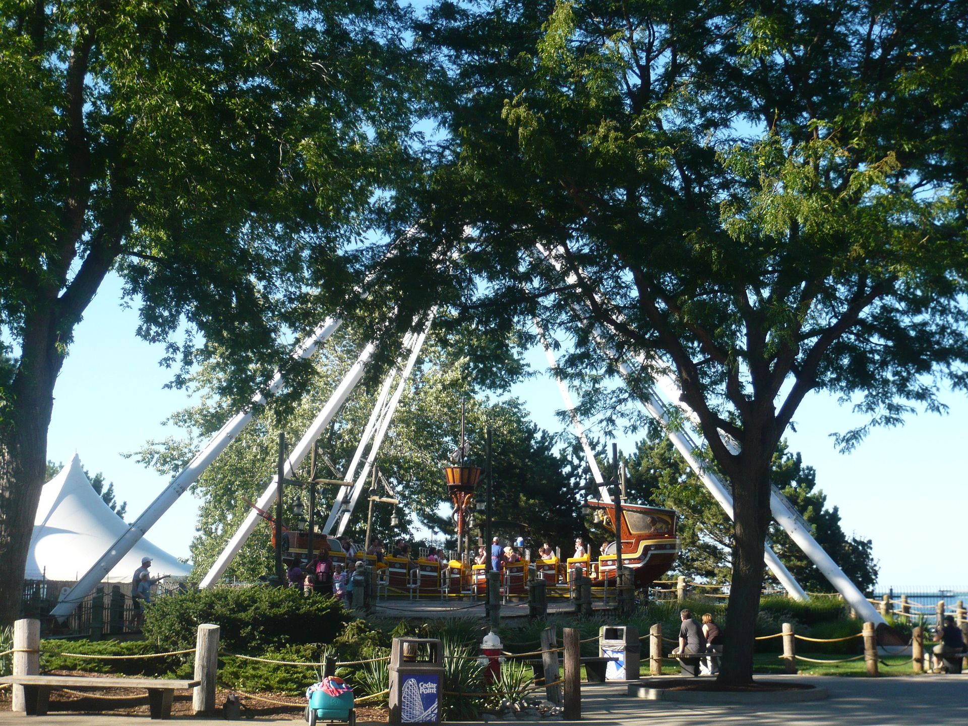 Danach war es bereits am Einnachten. Es folgten noch eine Fahrt auf der durch Shoot-the-Rapids etwas verkürzten Paddlewheel Excursions-Strecke, ein Spaziergang ausserhalb des Parks, wovon auch ein paar der obigen Fotos stammen; ein Parkplatzwechsel auf das vordere Lot, um bei Parkschliessung schneller wegfahren zu können, eine Fahrt auf der schnieken Wildcat sowie einige Wiederholungsfahrten auf Raptor, Blue Streak, Iron Dragon und Millennium Force. Dann waren wir komplett gerädert - Cedar Point schlaucht an so einem vollen Tag ganz schön. So verliessen wir gegen 21.30 Uhr den Park.