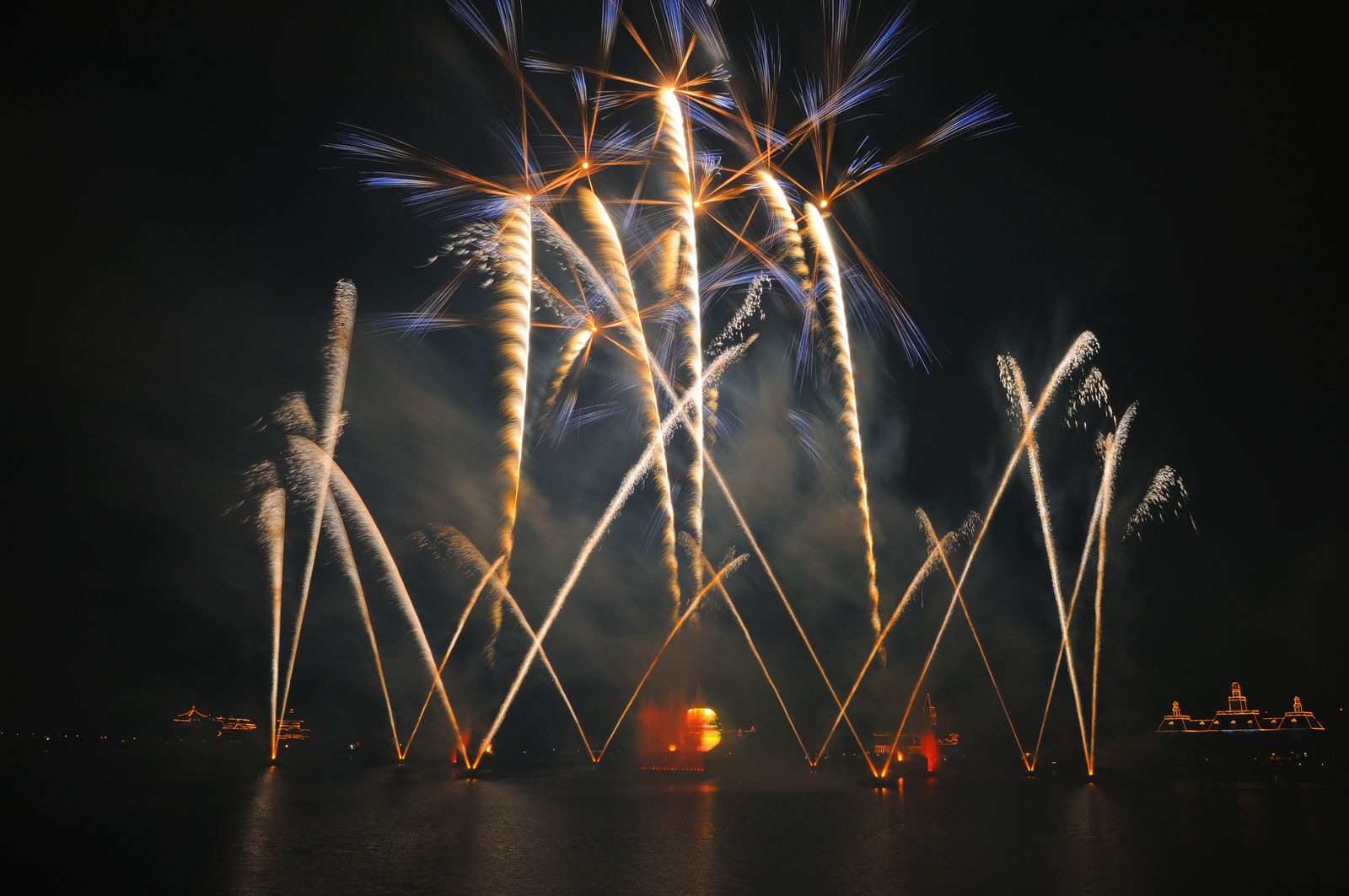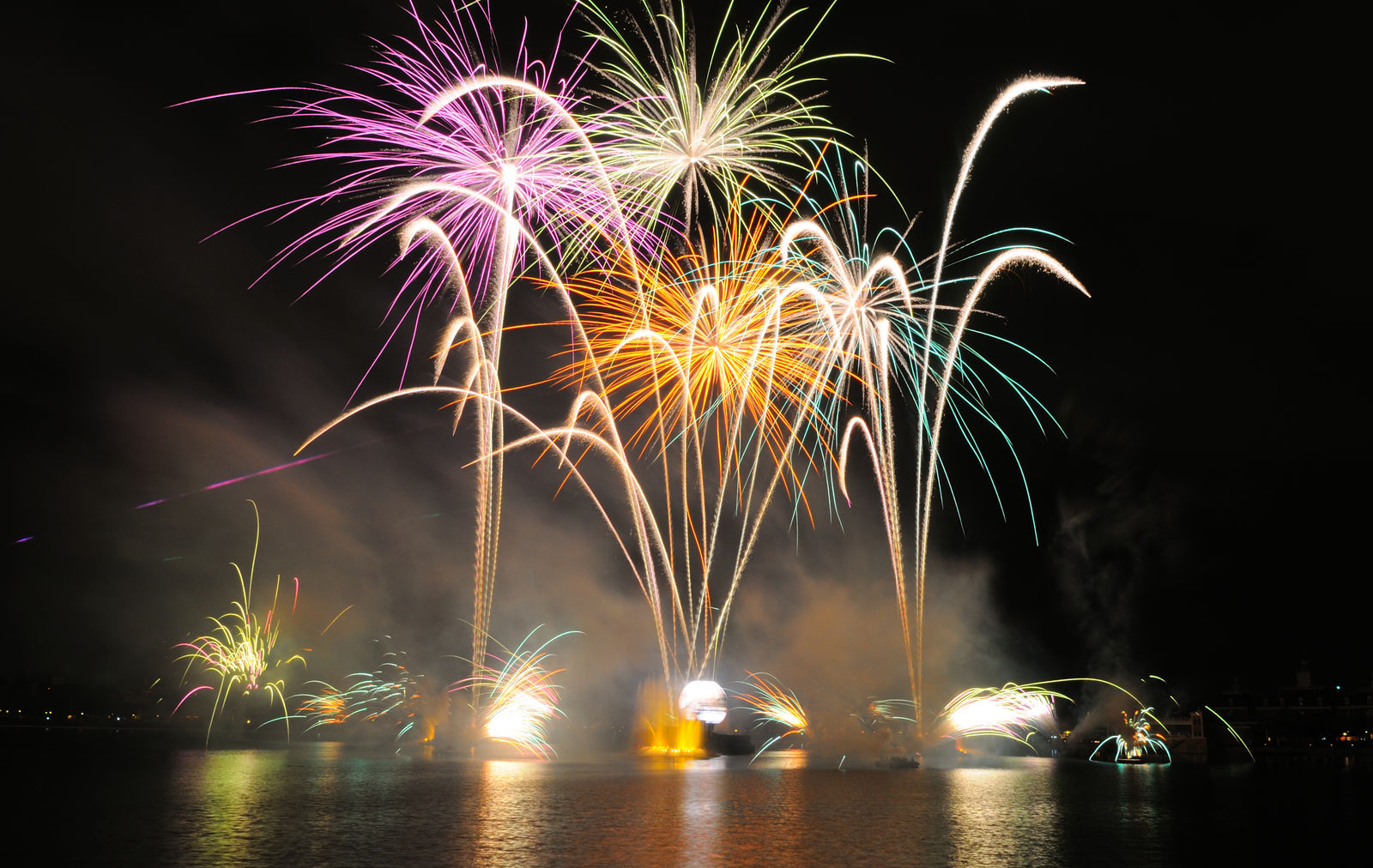 Das Neue bei diesen Fotos ist, dass ich sie mit einem externen Auslöser manuell belichtet und dabei zwei, teilweise sogar drei "Bilder" kombiniert habe. Auf diese Weise habe ich im Motiv weniger Himmel und mehr Feuerwerk. Durch den bewusst knappen Ausschnitt, ist bei den Wishes-Fotos auch das Schloss motivdominierend und dank geschlossener Blende auch schön scharf. Wobei ich beim nächsten Versuch noch mehr abblenden werde um in den Schlusssequenzen das Überstrahlen zu reduzieren.