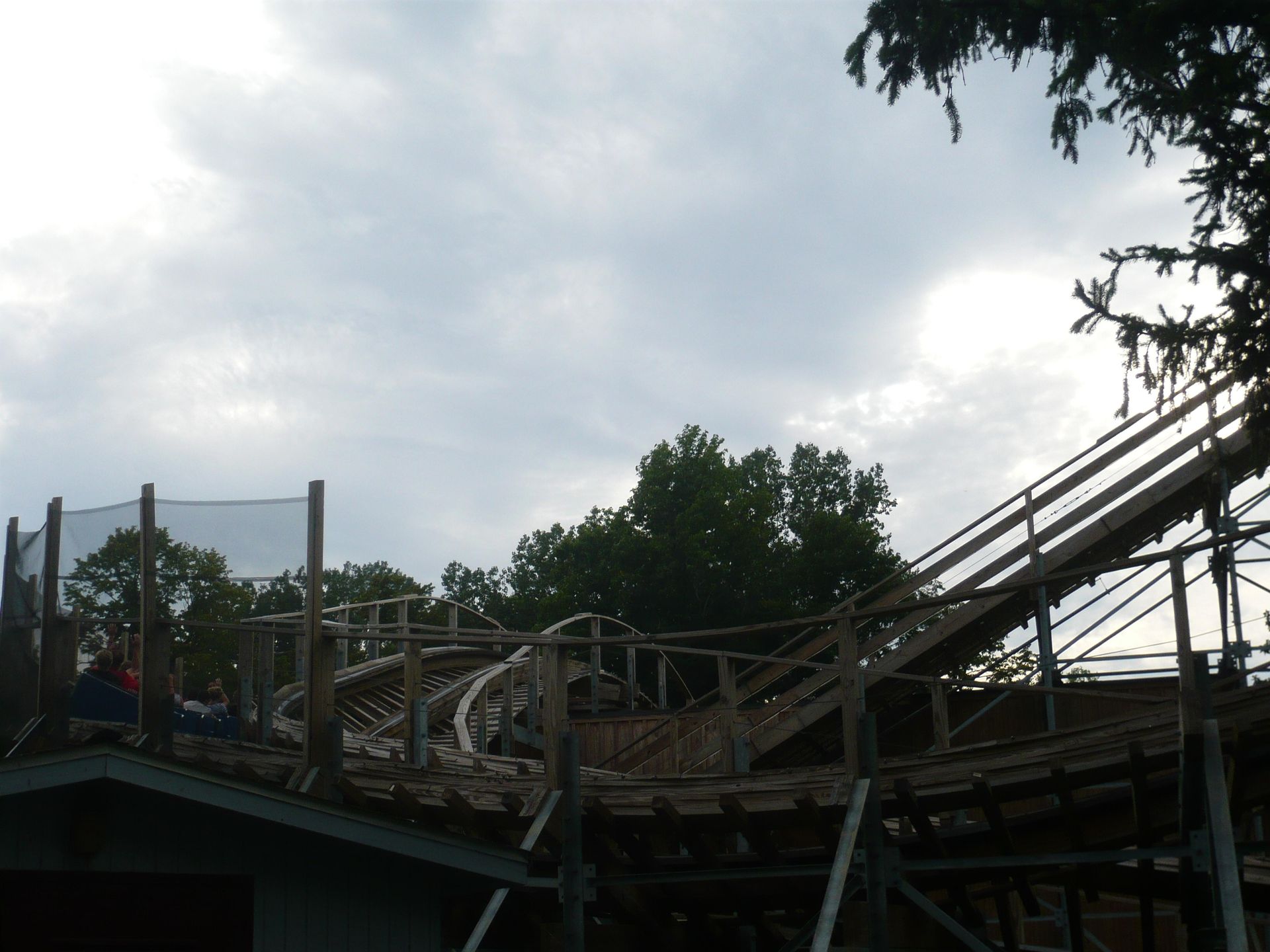 Allerdings sollte man auch etwas Zeit mitbringen: Die Bahn läuft auch bei langer Schlange konsequent nur im Einzugbetrieb. Durch die so entstehende halbe Stunde Wartezeit reichte es bei dieser Visite leider nur für zwei Fahrten, bevor dann das wirklich heftige Gewitter einsetzte. Im Radio wurde vorausgesagt, dass es die ganze Nacht andauern würde, und leider war dem auch so. Also retteten wir uns pitschnass ins Auto und fuhren weiter zum reservierten Motel.