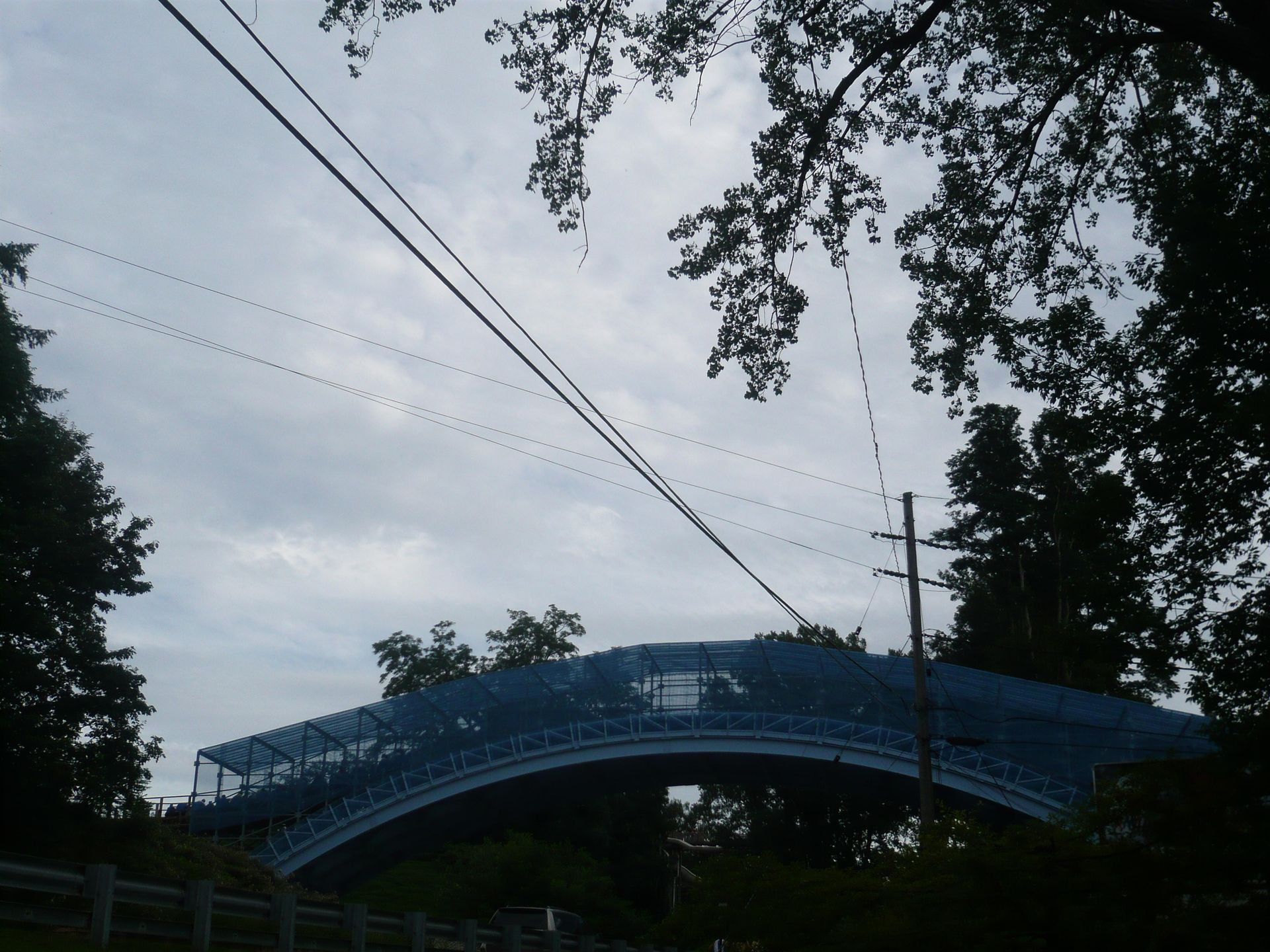 Bevor wir den Park überhaupt betreten haben, fuhren wir auf der Zufahrtsstrasse noch etwas weiter auf die Presque Isle hinunter, um die Bahn von dort zu fotografieren - womit ich meine beiden vor Neugier platzenden Kollegen ziemlich strapazierte, die wollten unbedingt rein in den Park und Bahnen fahren.