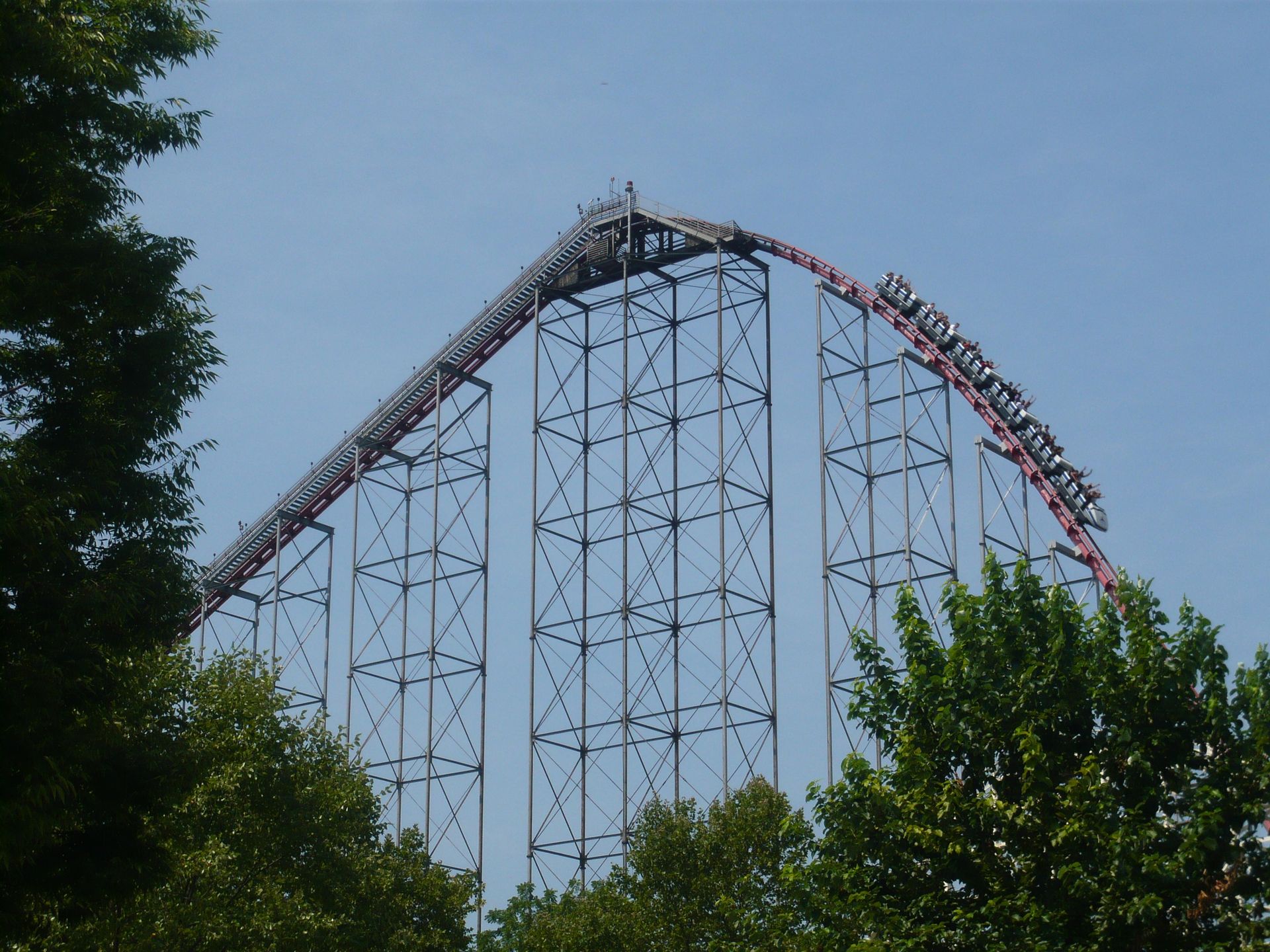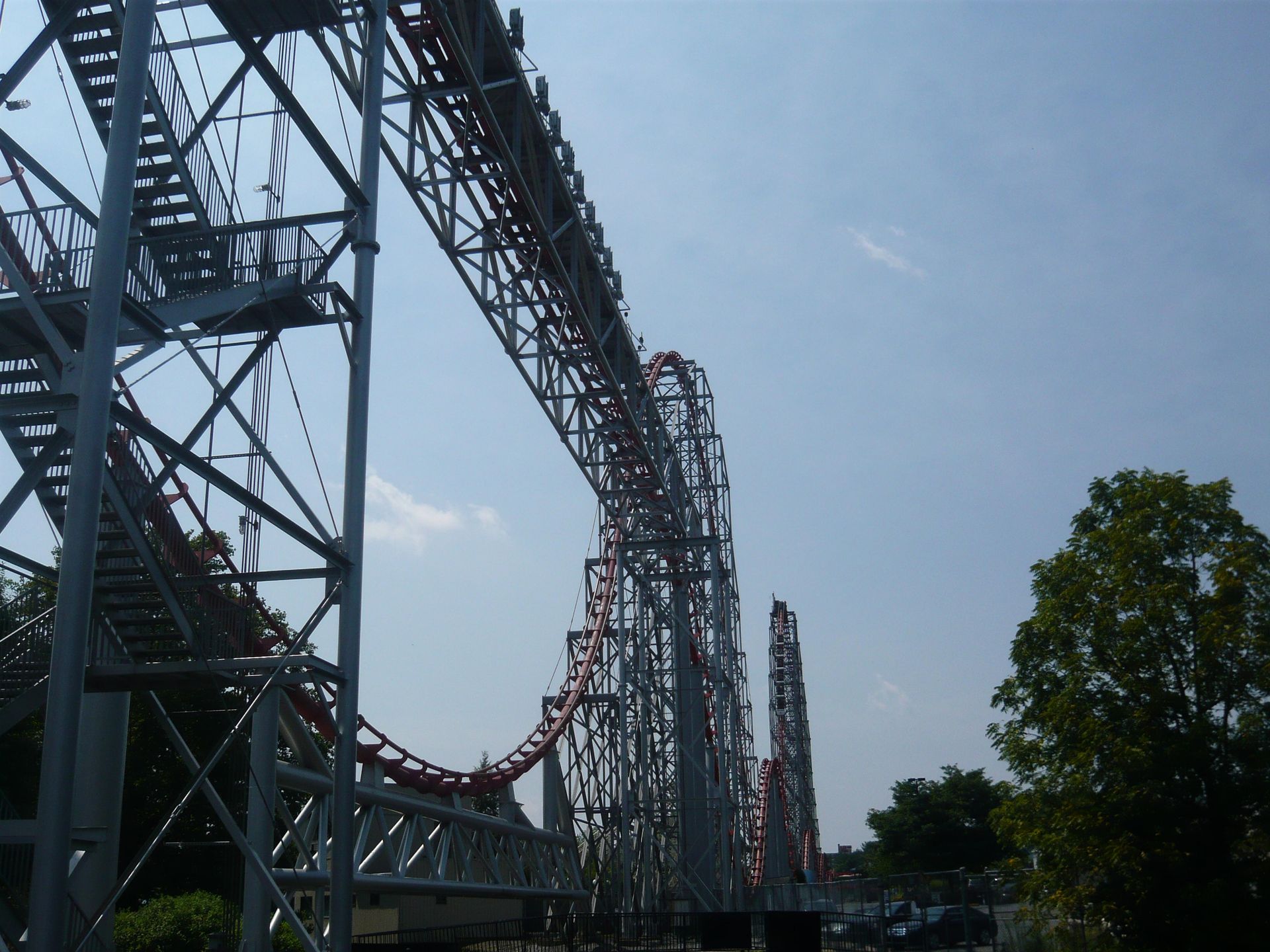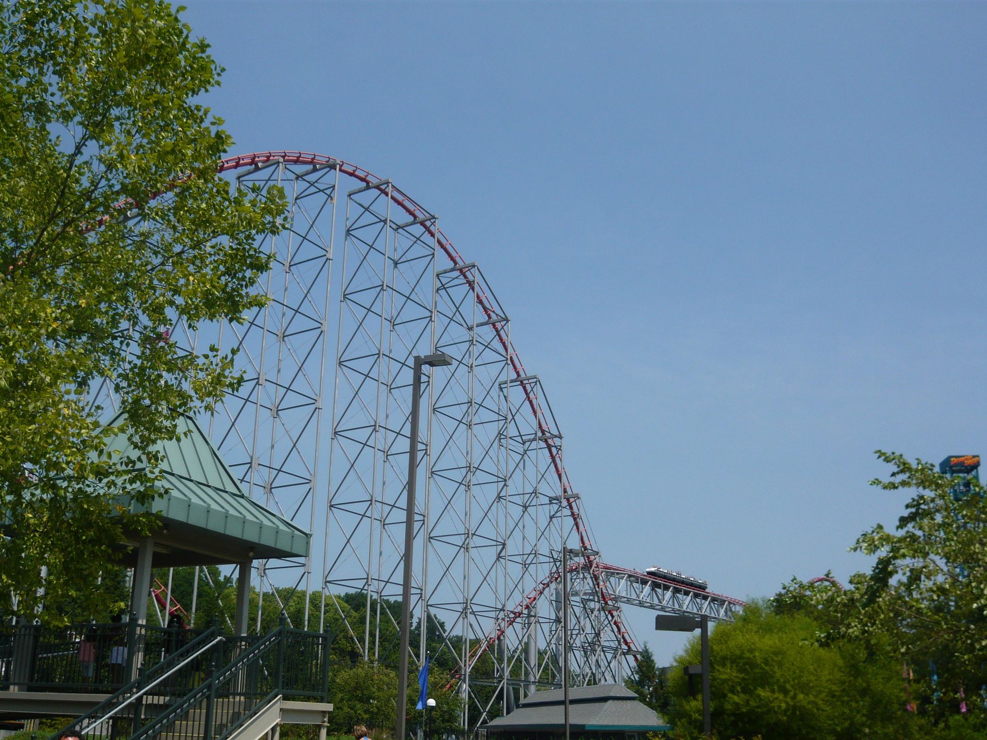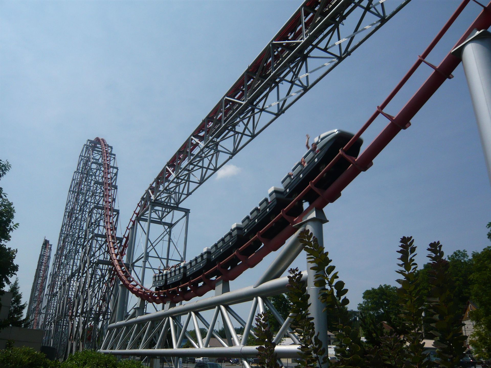 Hier sollte ich nun das nachholen können, was mir am Anfang meiner Reise im Six Flags Great America versagt war: die Festhaltebremse auf dem hinteren Turm! Ein absolut irres Gefühl, aber sowas von derbe hart an der Grenze!