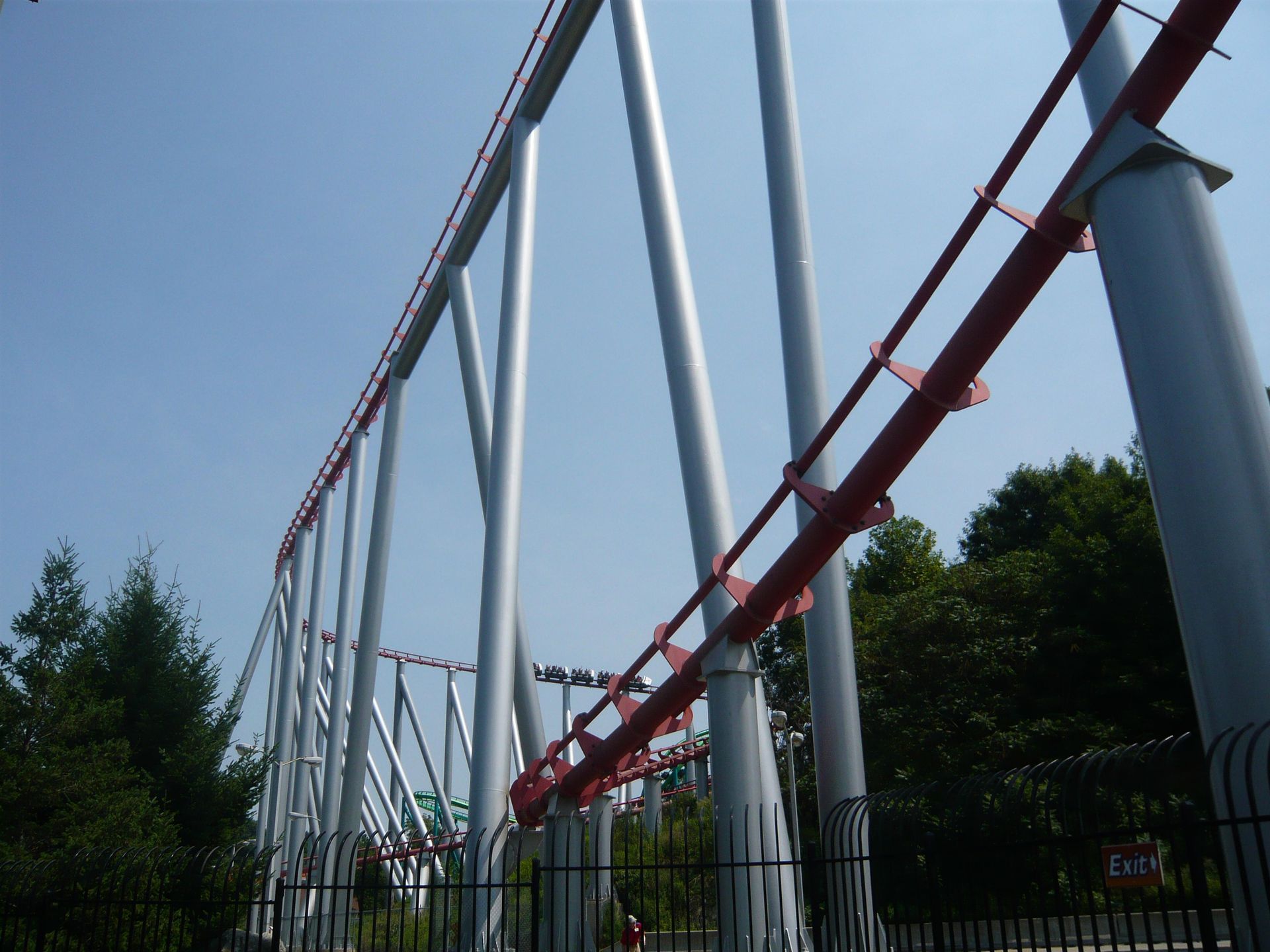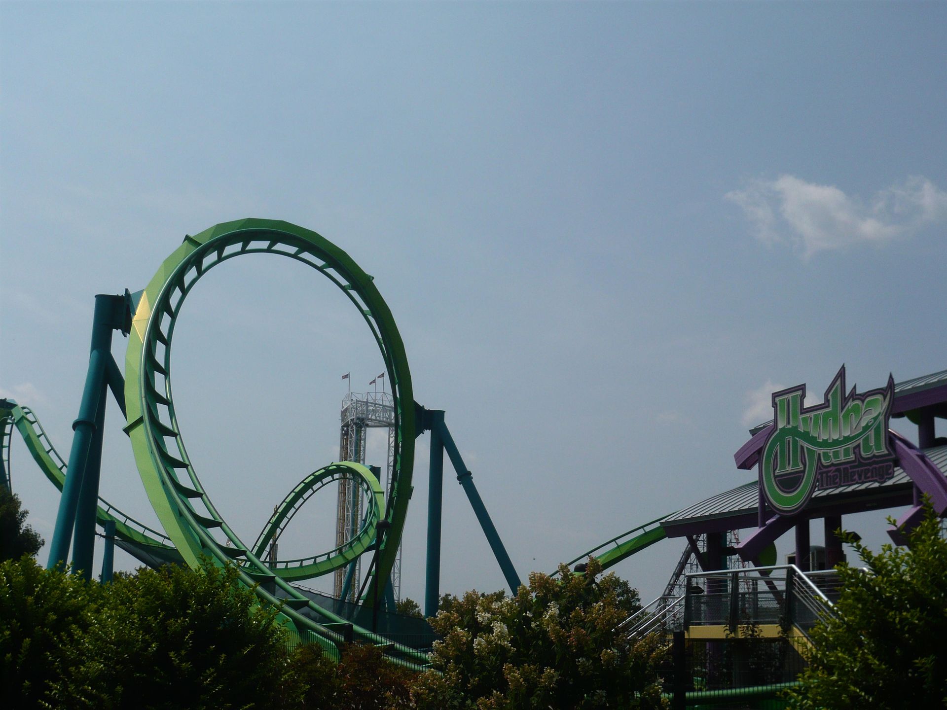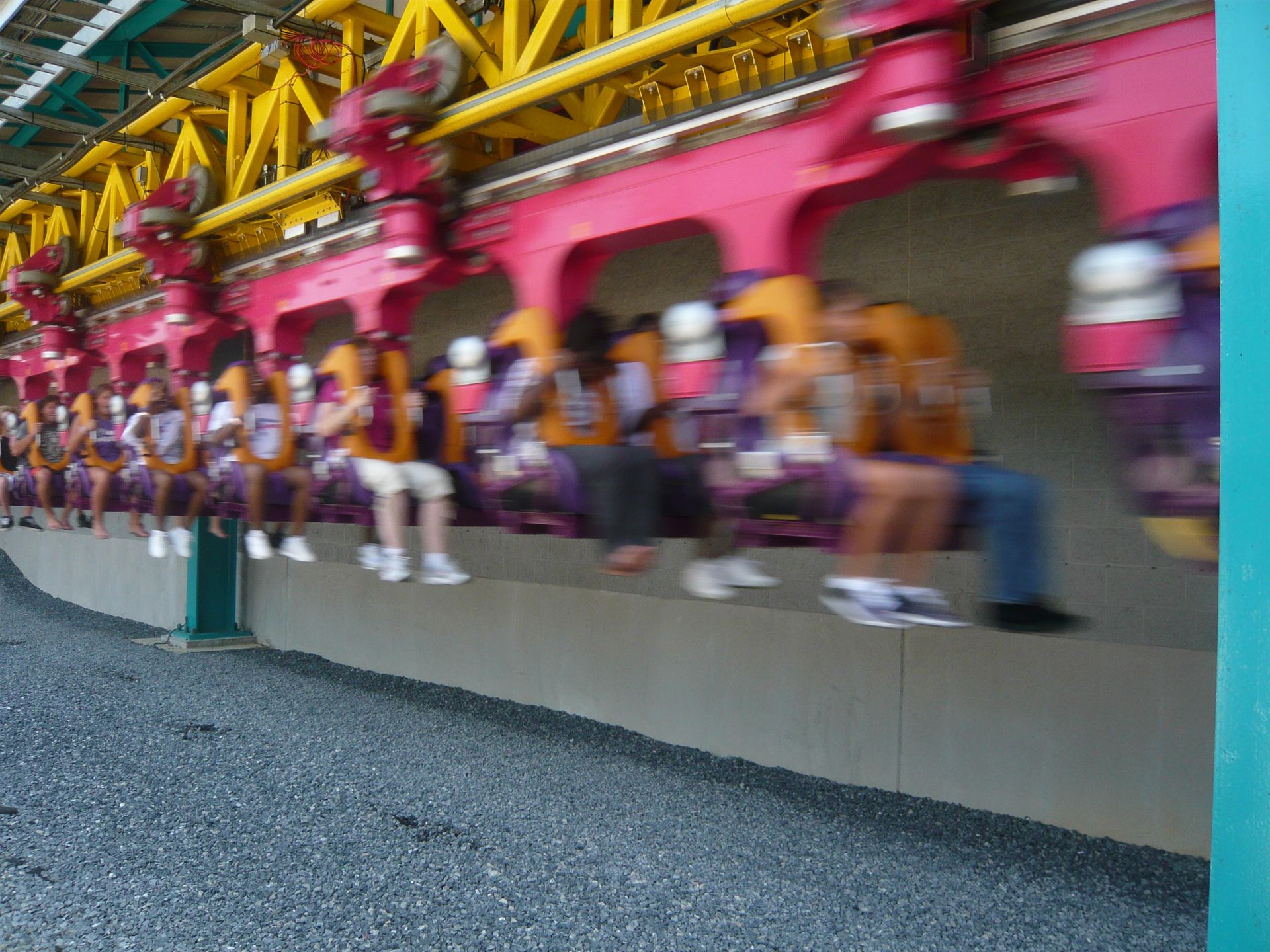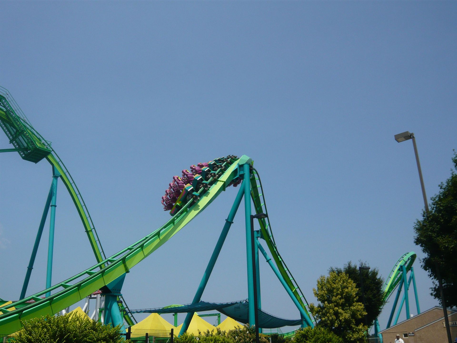 Hier sollte ich nun das nachholen können, was mir am Anfang meiner Reise im Six Flags Great America versagt war: die Festhaltebremse auf dem hinteren Turm! Ein absolut irres Gefühl, aber sowas von derbe hart an der Grenze!
