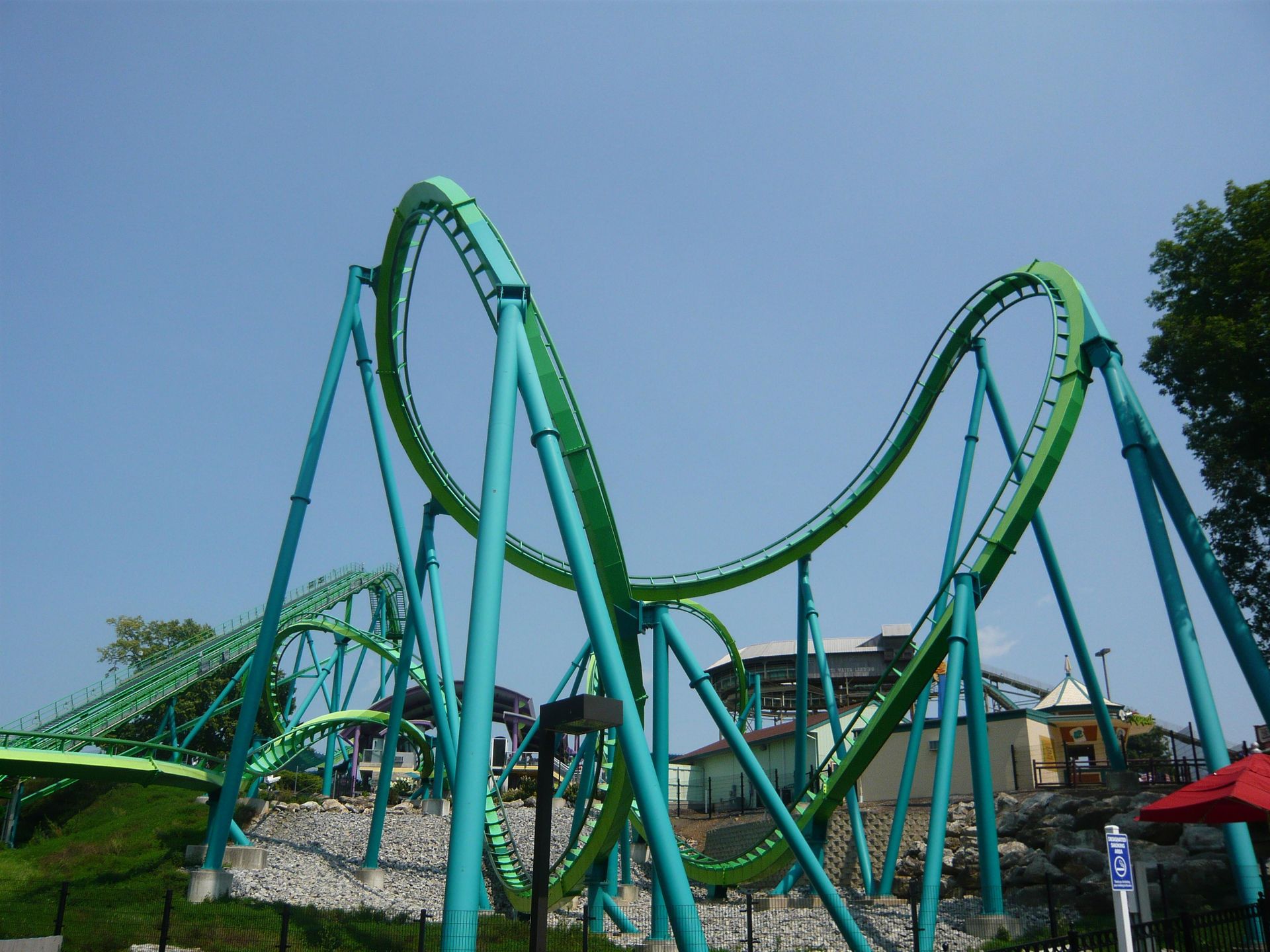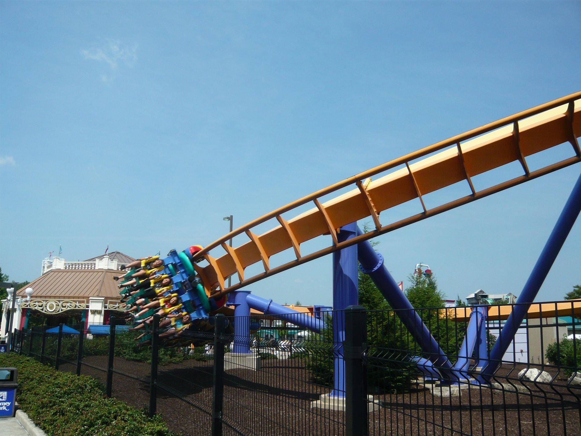 Auch hier kann ich nicht so recht mit dem gängigen Tenor übereinstimmen. Ich fand die Fahrt ehrlich gesagt ziiiemlich mau. Das Layout dieses noch aus den 20er-Jahren stammenden Klassikers wäre eigentlich sehr vielversprechend (Out & Back mit ausgeprägter Twister-Kehrsektion) und mit einigen schönen Airtimestellen versehen, aber die Bahn war bei meinem Besuch dermassen zu Tode getrimmt und langsam, dass da nichts mehr zu retten war. Wenn ich es recht im Kopf habe, waren bei unseren Fahrten drei starke Trimbremsen in Betrieb: am