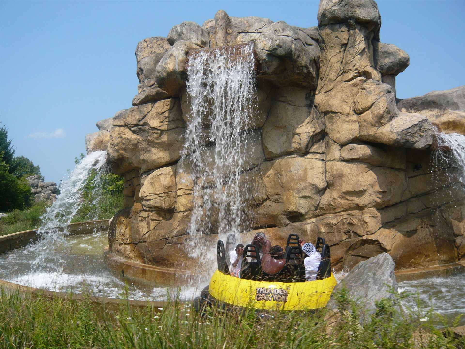 Und glaubt mir: Auf den Fotos hier sind längst nicht alle Wasserfälle von Thunder Canyon zu sehen! Die Boote werden regelrecht geflutet, die Bahn würde ich NIE in Schuhen fahren wollen!