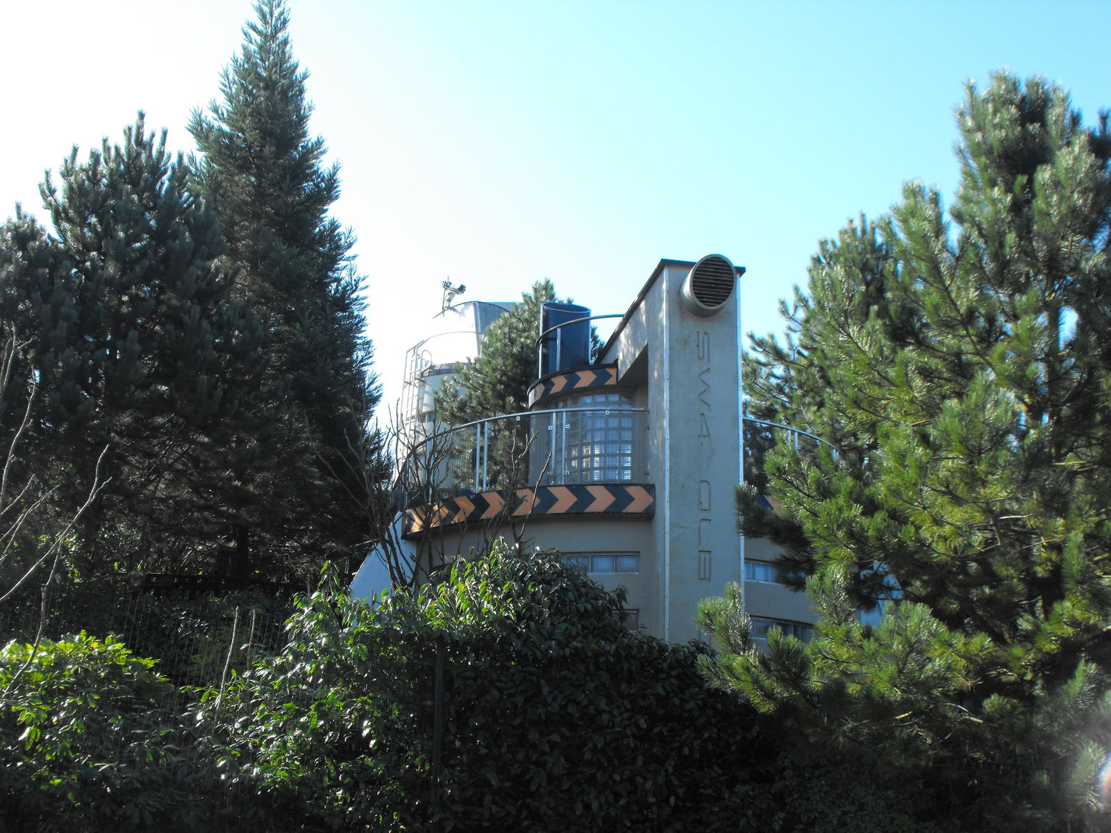 Während Nemesis ein sehr ausgeprägtes und natürliches Theming aufweist, dominiert bei der benachbarten Attraktion der nackte Beton. Und dabei soll der Name der Attraktion doch Schwerelosigkeit vermitteln. Bei Air handelt sich um einen kleinen, aber sehr, sehr feinen