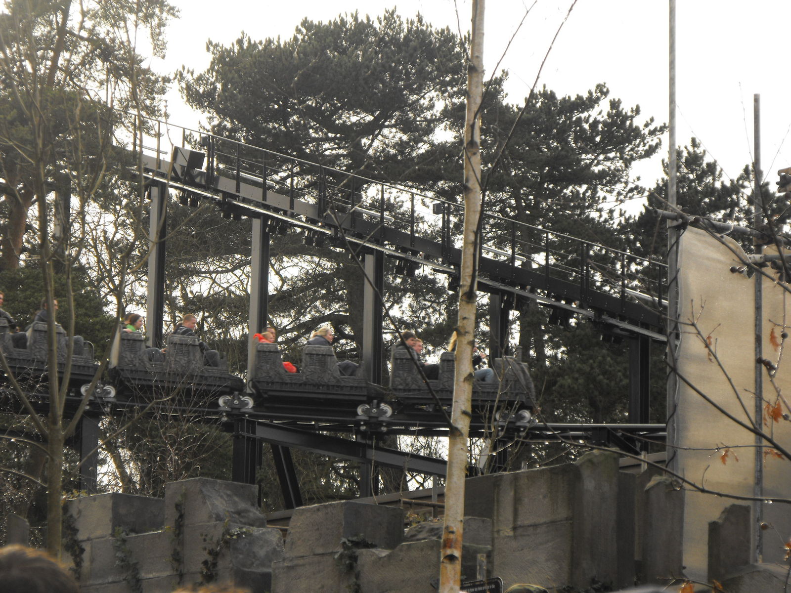 Die Strecke ist von außen, weder vom Hauptweg noch von der Warteschlange einsehbar. So bleibt es bis zum Ende spannend, was einen denn wirklich erwartet. Und erstmals wird der Themenbereich seinem Namen halbwegs Ehre, denn es geht mitten hinein in einen Wald.