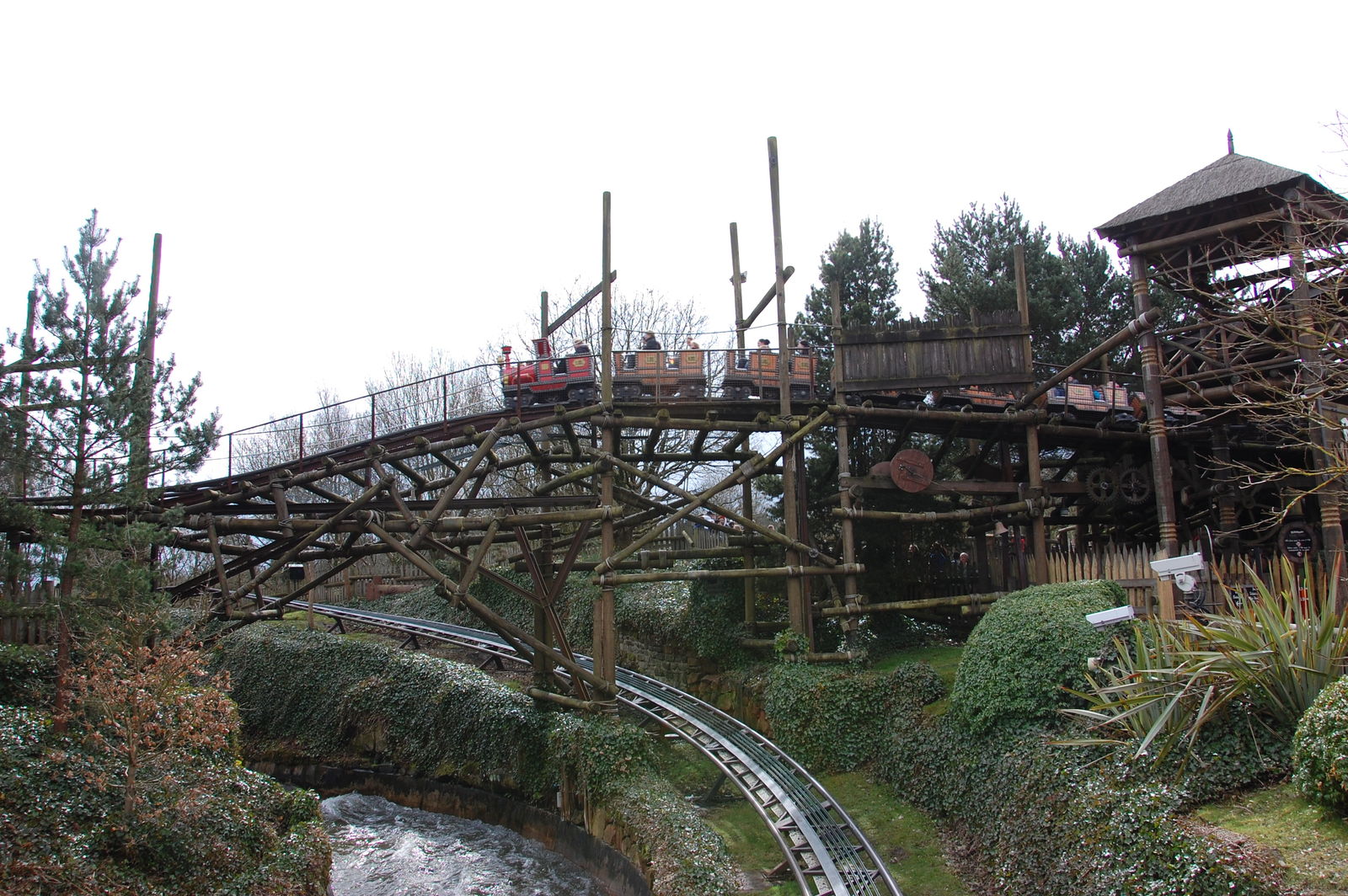 Ich habe leider kein Foto gemacht, aber es interessiert mich ja doch ziemlich: was ist bzw. war in den kleinen Häusern die überall im Wald verteilt, kurz vorm einbrechen stehen? Die Atmosphäre die von diesen Hütten ausging, war jedenfalls gruseliger als die nun folgende Attraktion und damit das letzte, angebliche Highlight im Park.