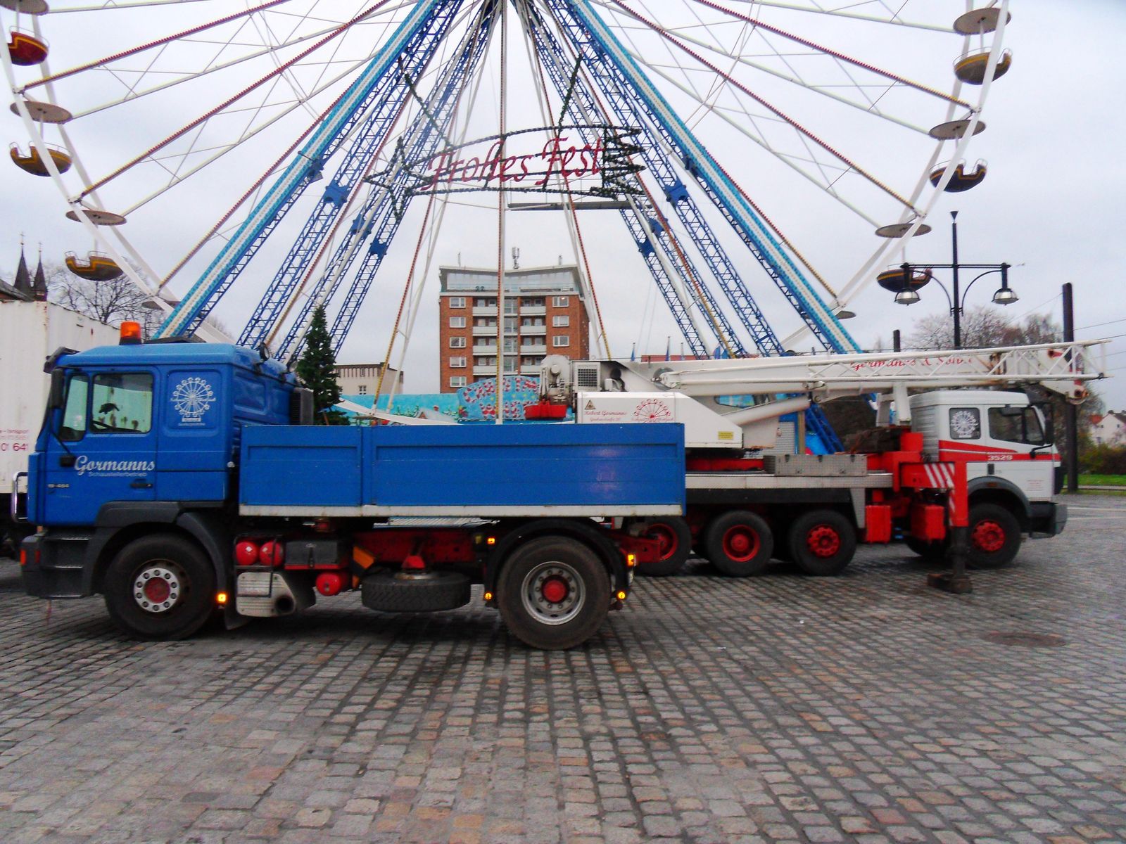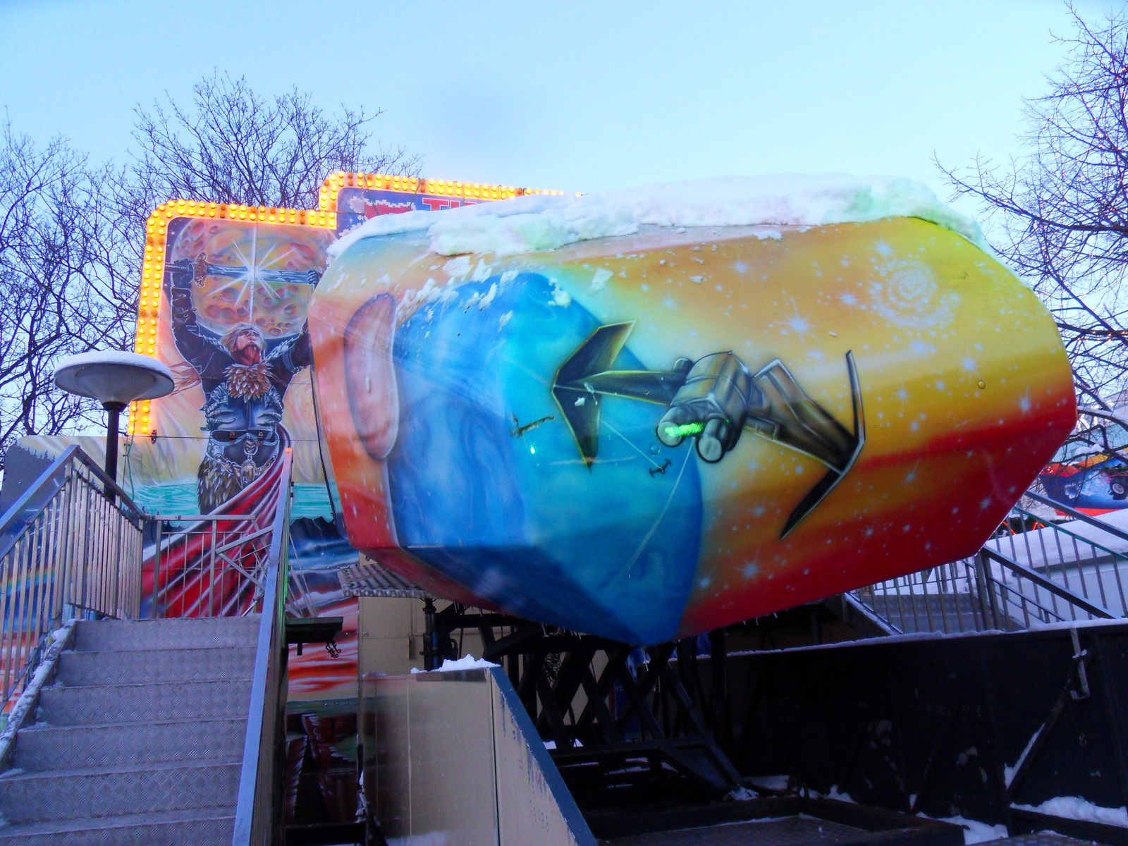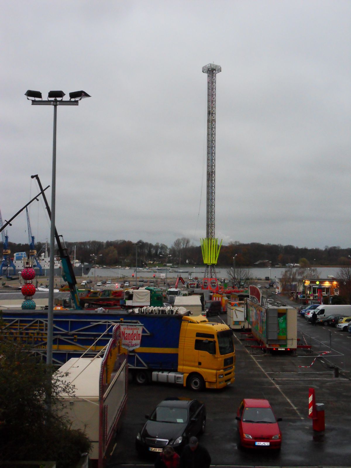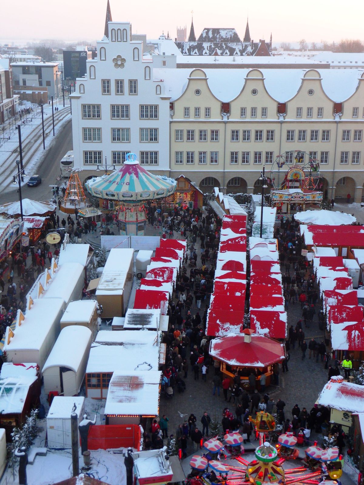 Mit Weihnachtsmarkt verbinden die meisten wohl eher Geschenkeläden, Kitschverkäufe und kleine Kinderkarussells. In Rostock werden im Dezember etwas größere Geschütze aufgefahren. Neben dem obligatorischen Riesenrad wurde eine ganze Kirmes aufgebaut- inklusive Achterbahnen, Starflyer und Breaker. Kein Wunder, dass der Aufbau schon teilweise zwei Wochen vor Beginn des Weihnachtsmarktes am 25.11.2010 begann.