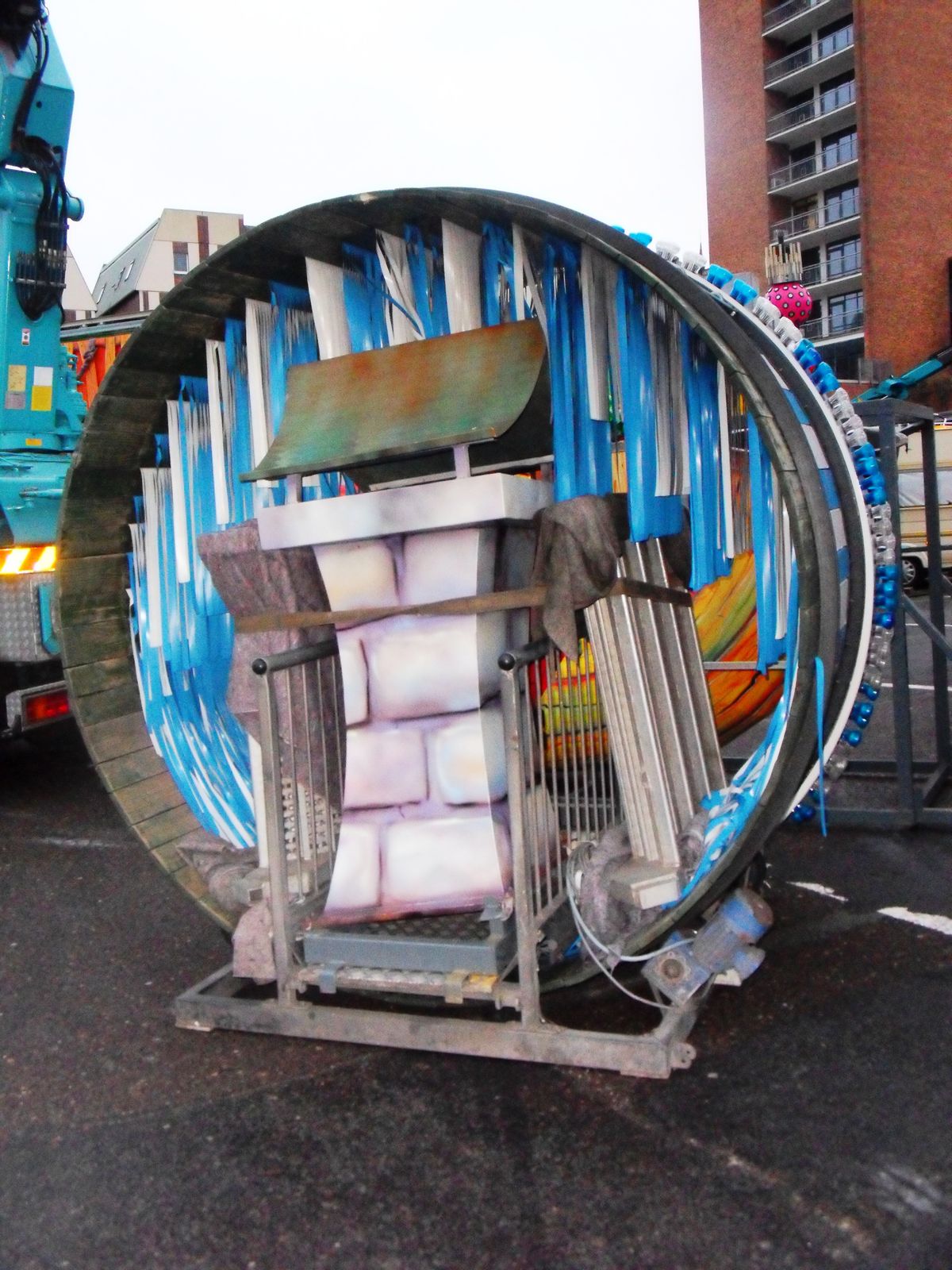 Rollende Tonne Nr. 1, im Hintergrund wird die Lücke mit einer Plane verdeckt