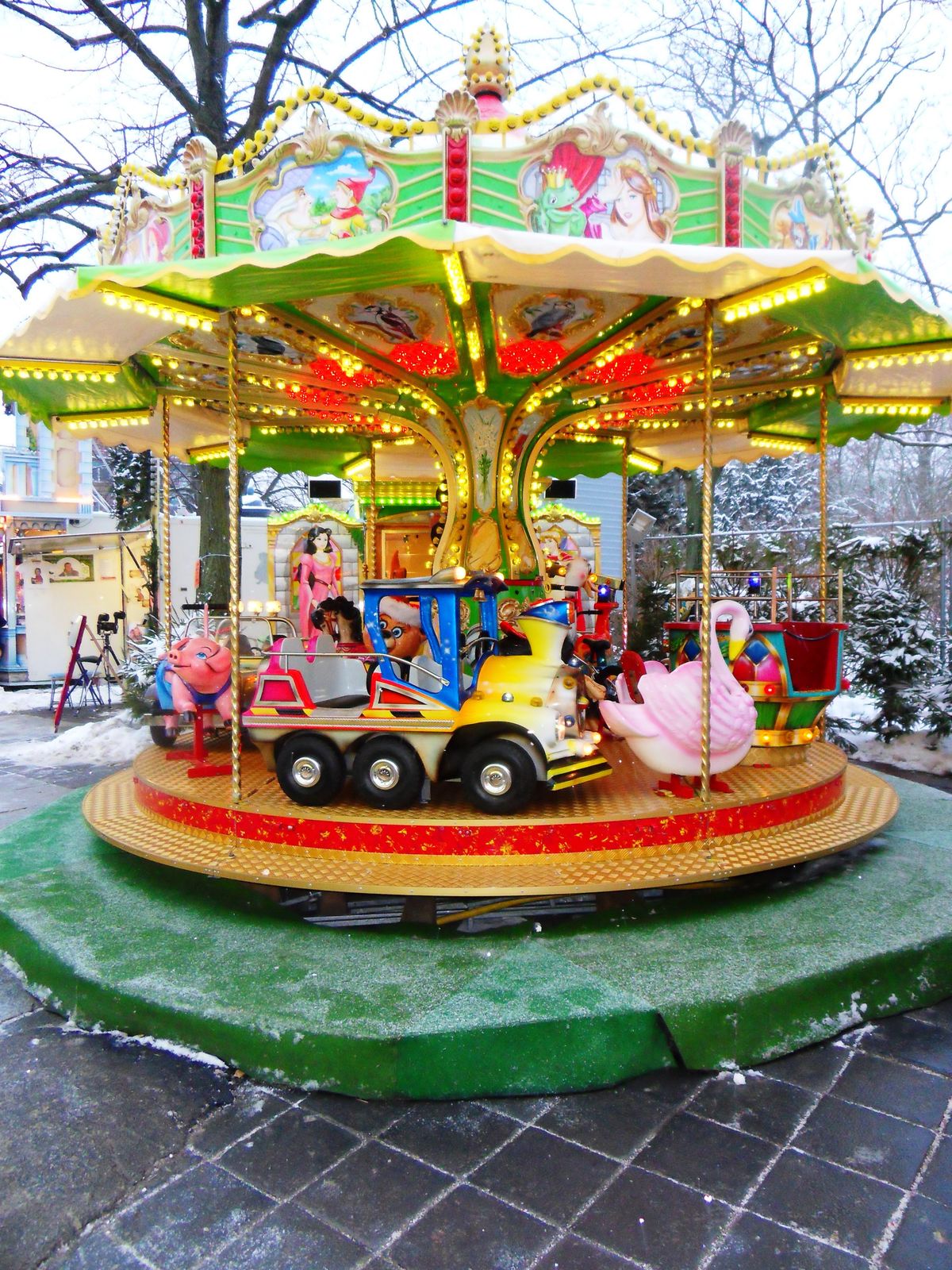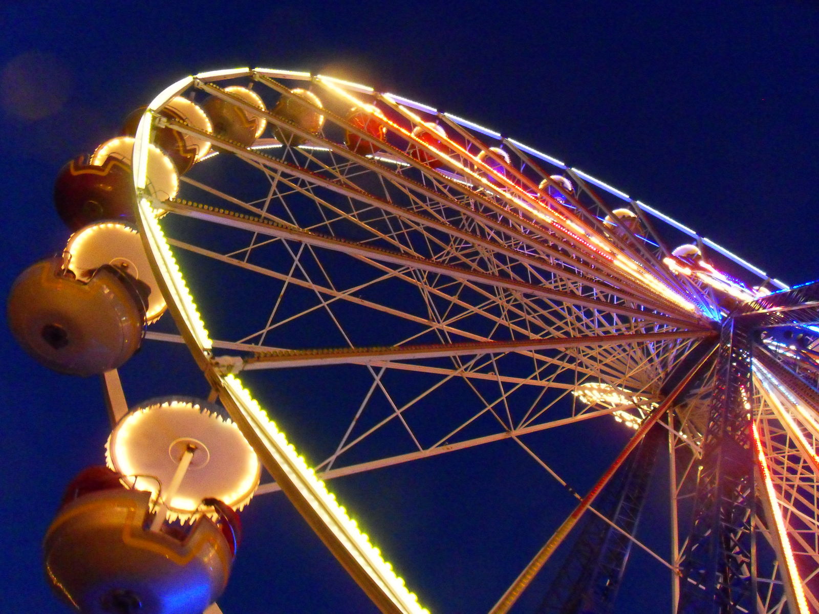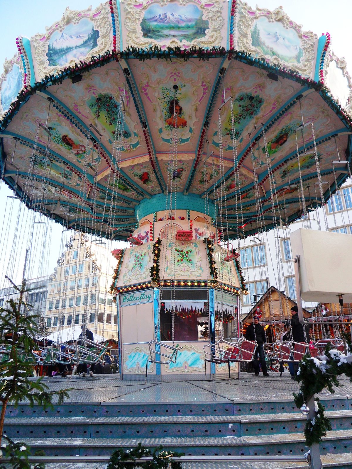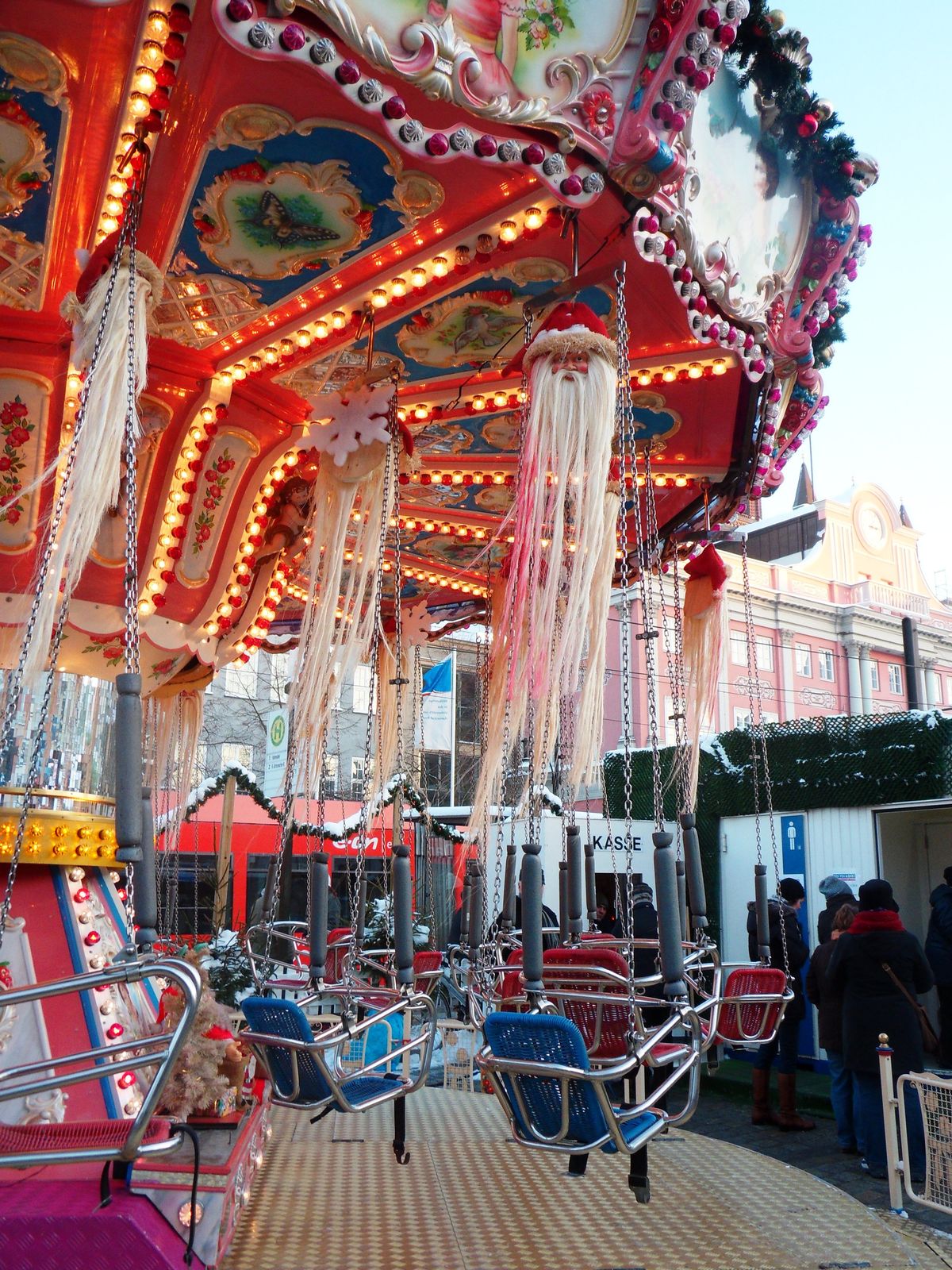 Das klassische Riesenrad darf eigentlich auf keinem Weihnachtsmarkt fehlen. So hat man doch von oben einen traumhaften Blick auf die weißgeschneite Stadt und kann dem Vorweihnachtstrubel für ein paar Minuten entfliehen. Das man sich nebenbei den A**** abfriert, weiß man immer erst hinterher. Gut, dass es gleich nebenan diverse Glühweinbuden gibt. Irgendwie ein fieser Trick von diesen Riesenradleuten…
