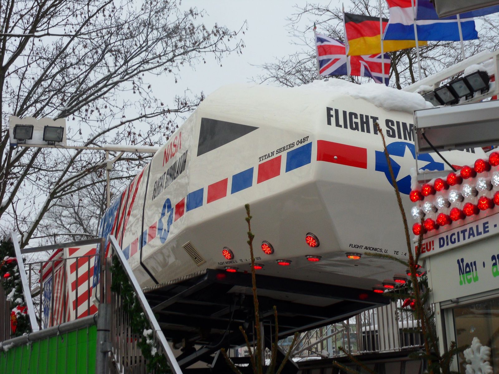 Völliger Schwachsinn, Flugsimulatoren gibt es aber trotzdem. Entweder, mit denen lässt sich doch ganz gut Geld verdienen, oder die Marktmeister hatten einfach noch ein paar Quadratmeter übrig: Rostock bot jedenfalls gleich zwei solcher Rüttelkabinen. Einen schönen bunten Simulator von Walköfer und einen super dekorierten, aber dieses Jahr wirklich miserabel platzierten Astrojet.
