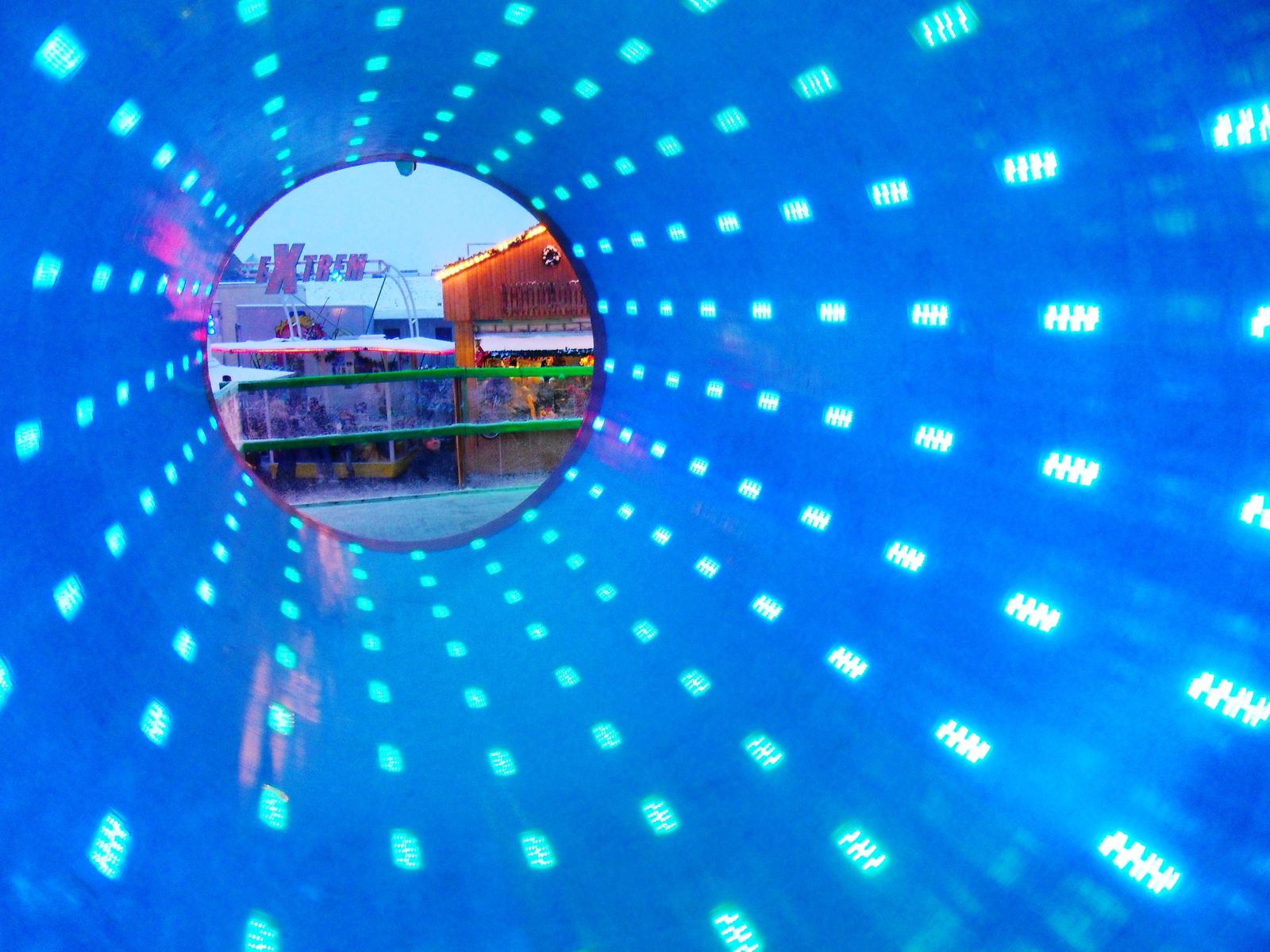 In der Nacht verwandelt sich der Zweisäulenskooter in eine wahre Disko