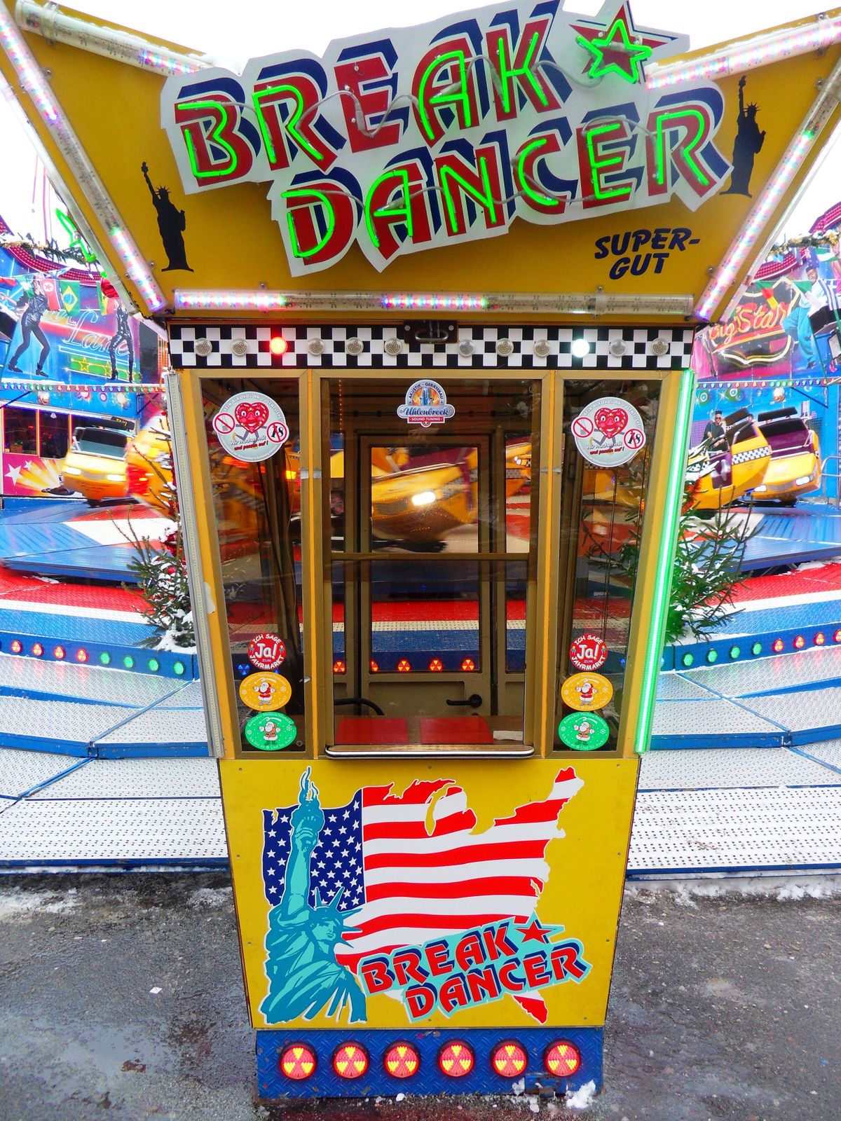 Zur Fahrweise kann ich nicht besonders viel berichten, weil ich keine Ahnung von Break Dancern habe. Auf jeden Fall waren fünf bis sechs richtig heftige Gondeldrehungen dabei, ob das vergleichsweise viel ist, weiß ich nicht.