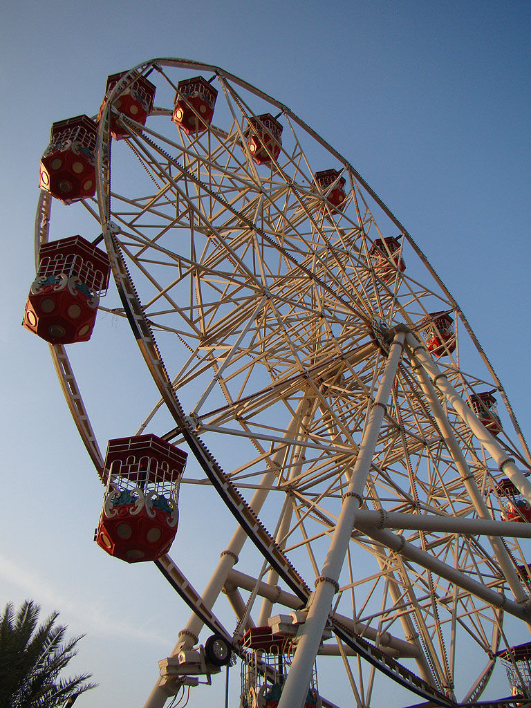 Zuerst muss man am Eingang Eintritt bezahlen und hat dann Zugang zu allen Shops, Essensständen und den Fahrgeschäften. Die Fahrgeschäfte selber müssen extra bezahlt werden mit Tokens. Diese bekommt man an diversen Ecken in der Kirmes. Ein Token kostet 5 Dirham und die grossen Fahrgeschäfte kosten alle 5 Token, sprich rund 5.20 Euro. Dieses Areal scheint mir vor allem von einheimischen besucht zu werden, daher wurde auch nicht so gerne gesehen, dass ich Fotos gemacht habe. Zum Glück war es praktisch menschenleer. Die Geisterbahn war innen leider nicht so der Bringer, dafür hat der