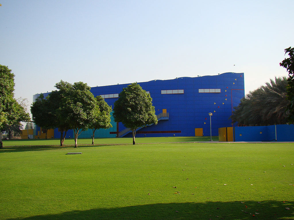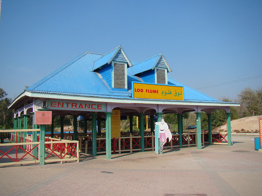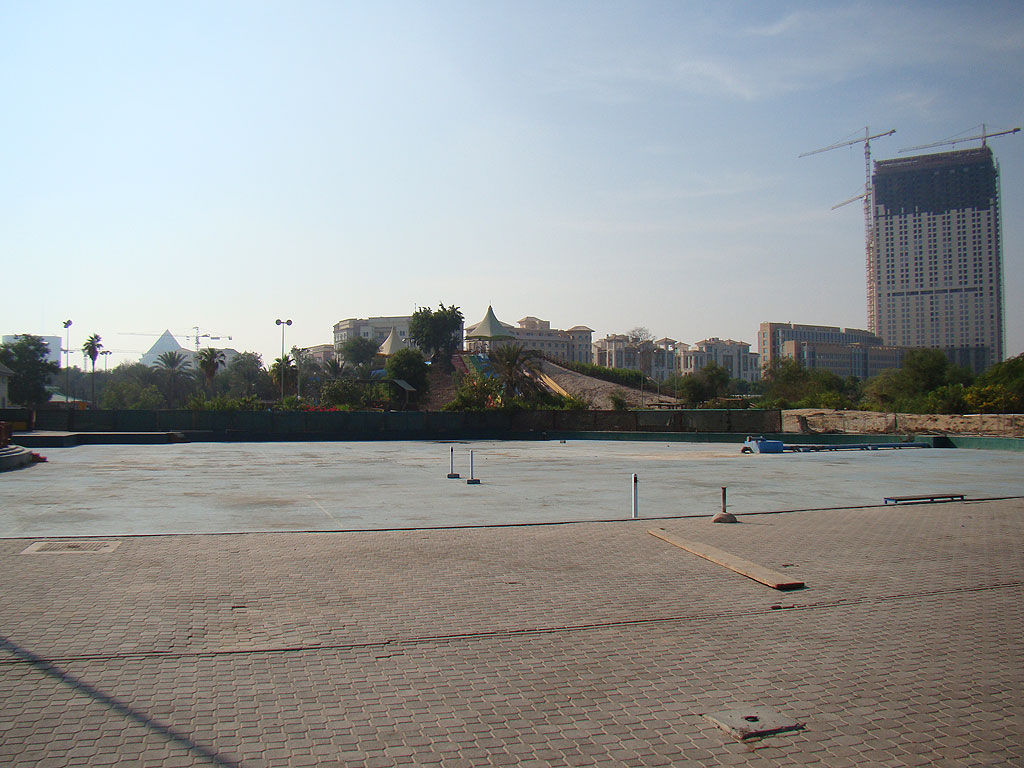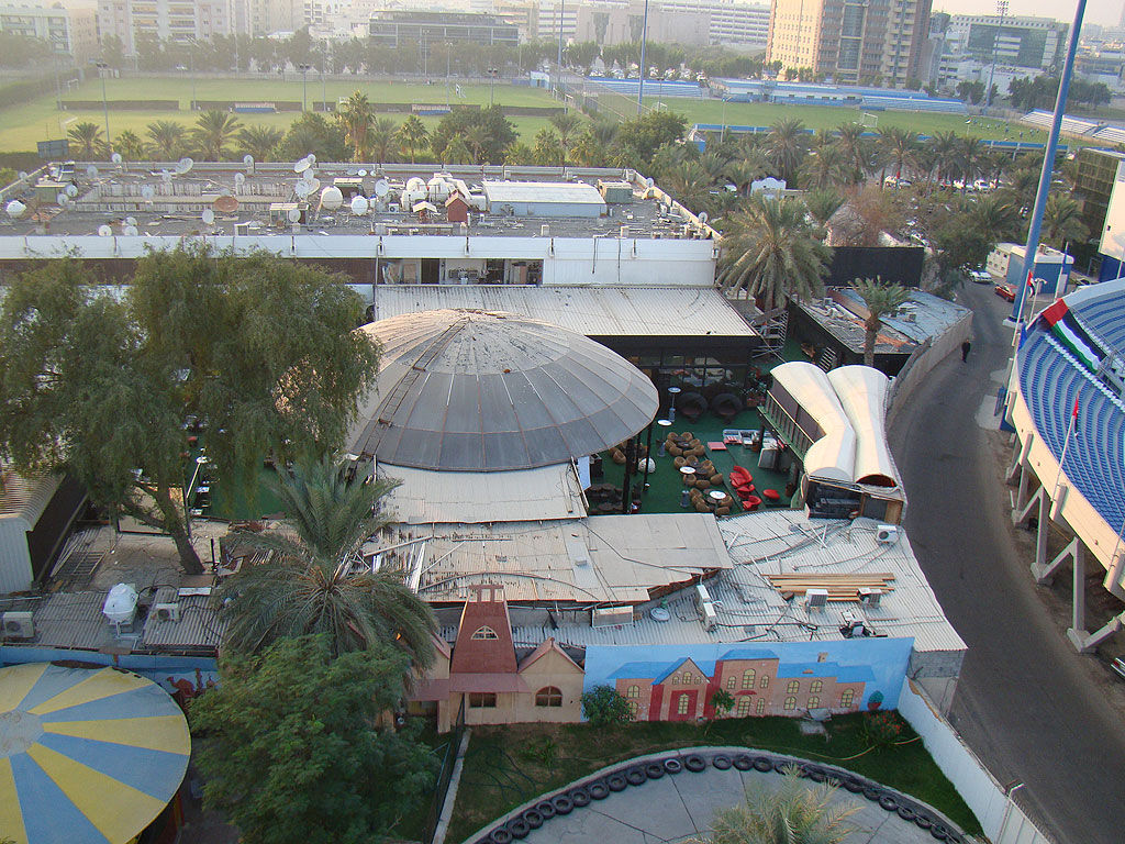 Wahrlich unscheinbar liegt das Al-Nasr Leisureland versteckt hinter grauen Mauern, so dass ich mir zuerst gar nicht sicher war, ob ich denn nun den richtigen Eingang gefunden habe, geschweige denn am richtigen Ort überhaupt bin. Doch das verblassene Schild oben auf dem Dach war eindeutig, hier muss es also sein.