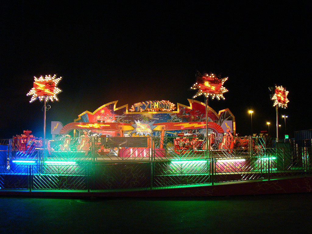 Spinning Coaster mit einem ganzen Zug, die Fahrt wie erwartet ziemlich mies. Zwei Runden werden gefahren. Ansonsten gibt es noch einige weitere Fahrgeschäfte wie ein kleiner Musikexpress etc.