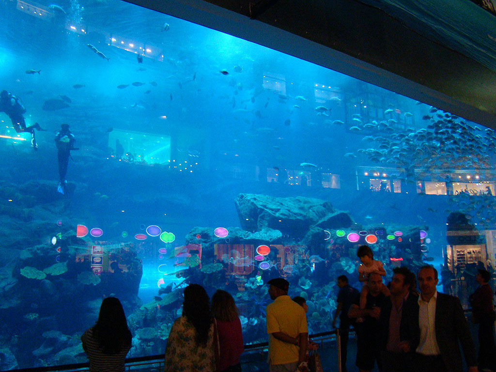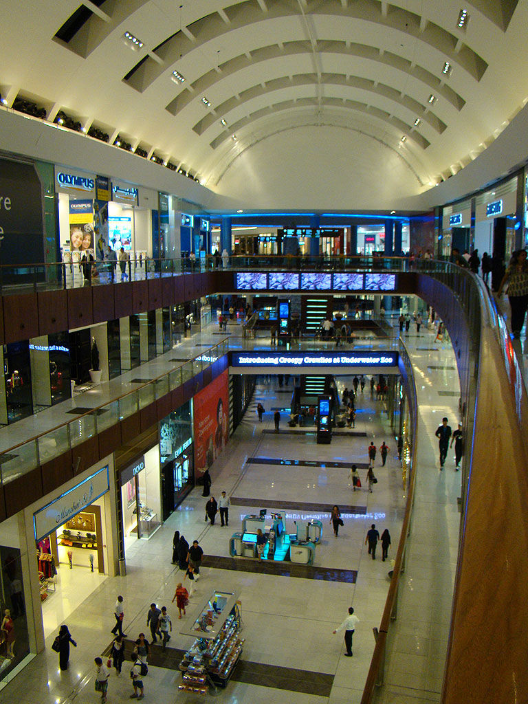 Die Dubai Mall liegt am Fusse des höchsten Gebäudes der Welt Burj Khalifa. Die Mall selber ist riesig, beinhaltet eine eigene Kunsteisbahn und ist wirklich ein Besuch wert.