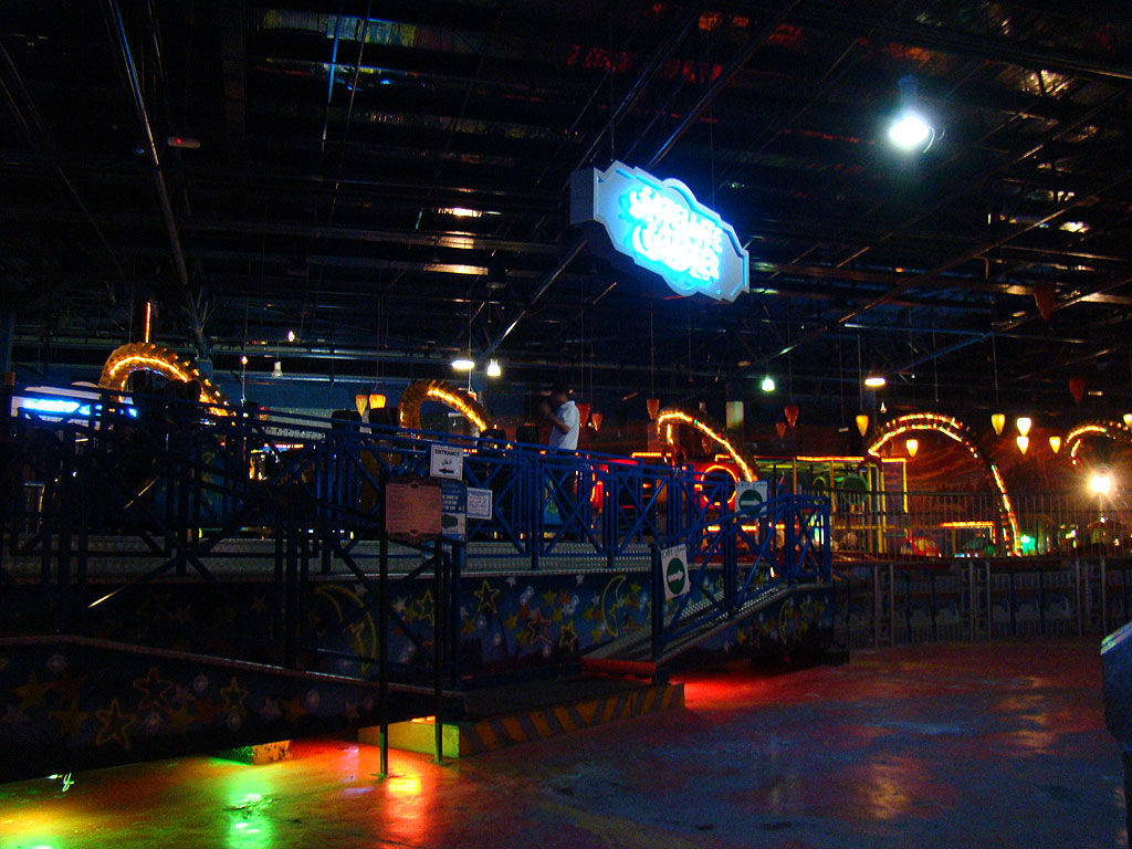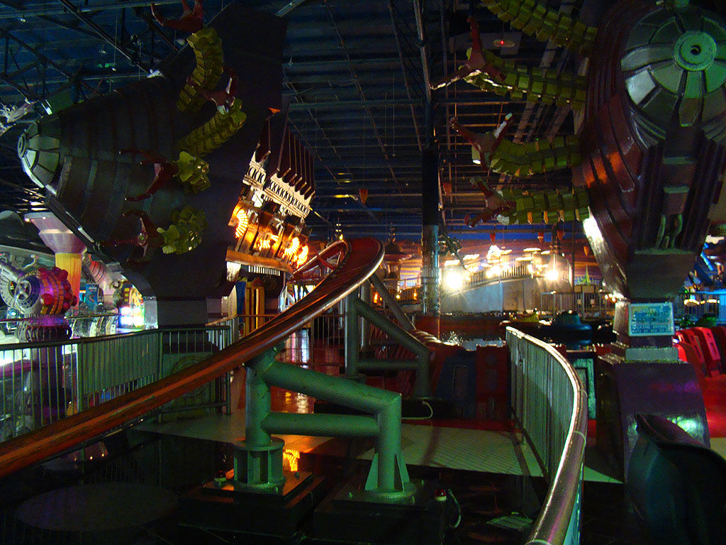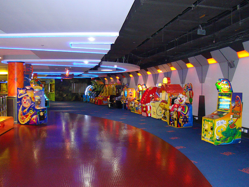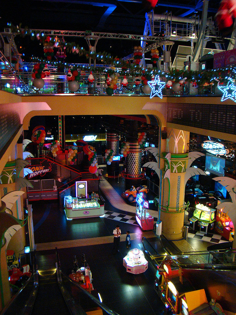 Dieser Funpark sieht zwar optisch gar nicht mal übel aus, war aber trotzdem menschenleer. Es gibt eine Kunsteisbahn, diverse Spielautomaten, Kinderspielecken, Räume zum Mieten für Partys, kleine 3D Kinos, Bewegungssimulatoren und einen