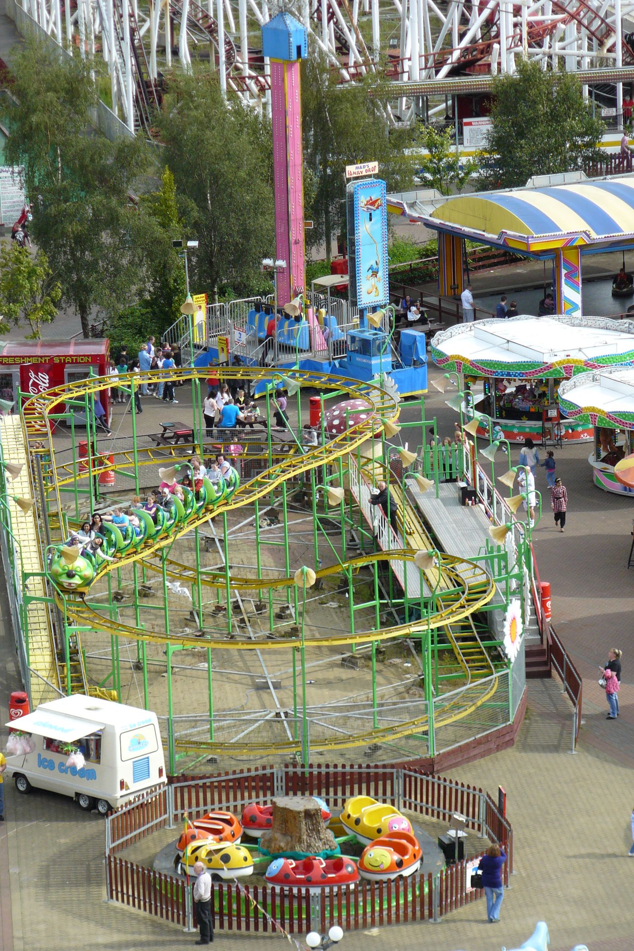 Im Zentrum des Parks gelegen finden sich neben dem Riesenrad und einem fliegenden Teppich drei weitere der Coaster, die es zu counten galt.